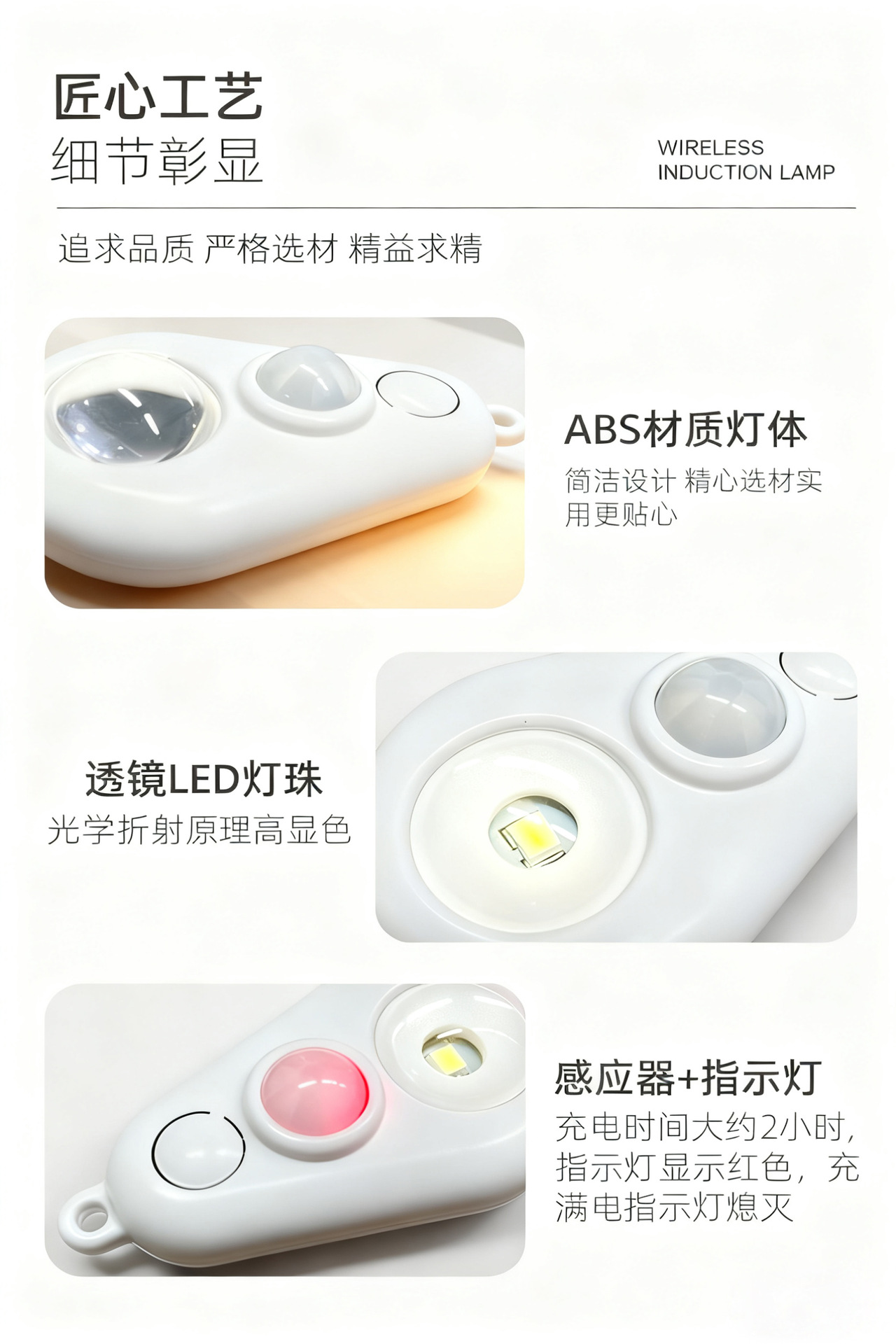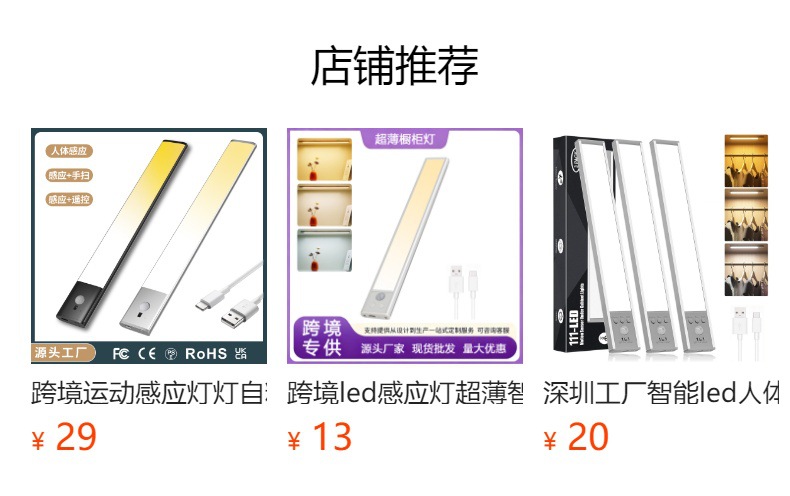 크로스보더 LED 인체감지등 가방등 충전식 야간등 핸드메이드 캐비닛 스포트라이트 자가접착 캐비닛등 센서등스토어 가기