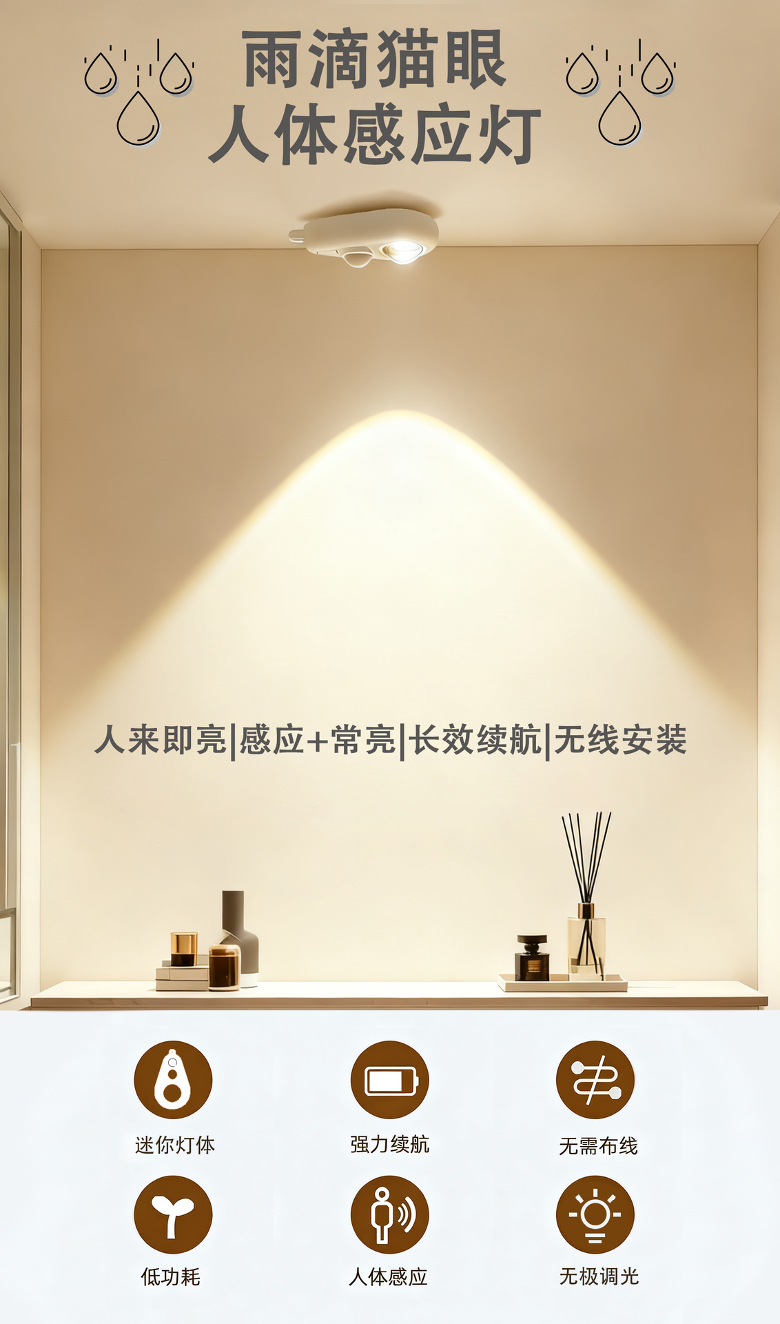 雨滴猫眼感应灯