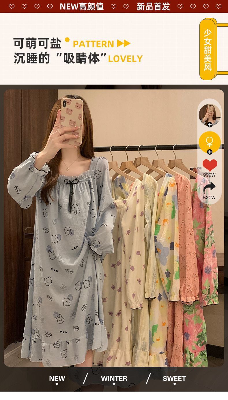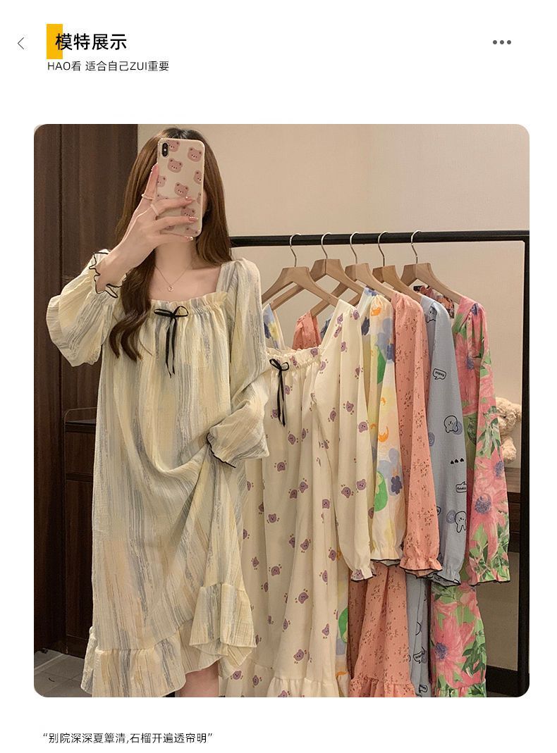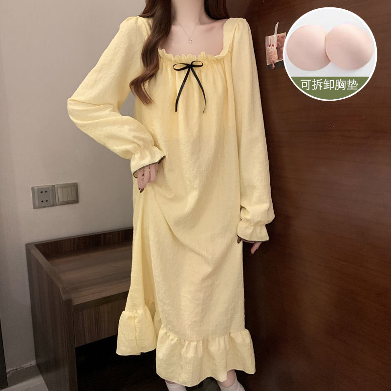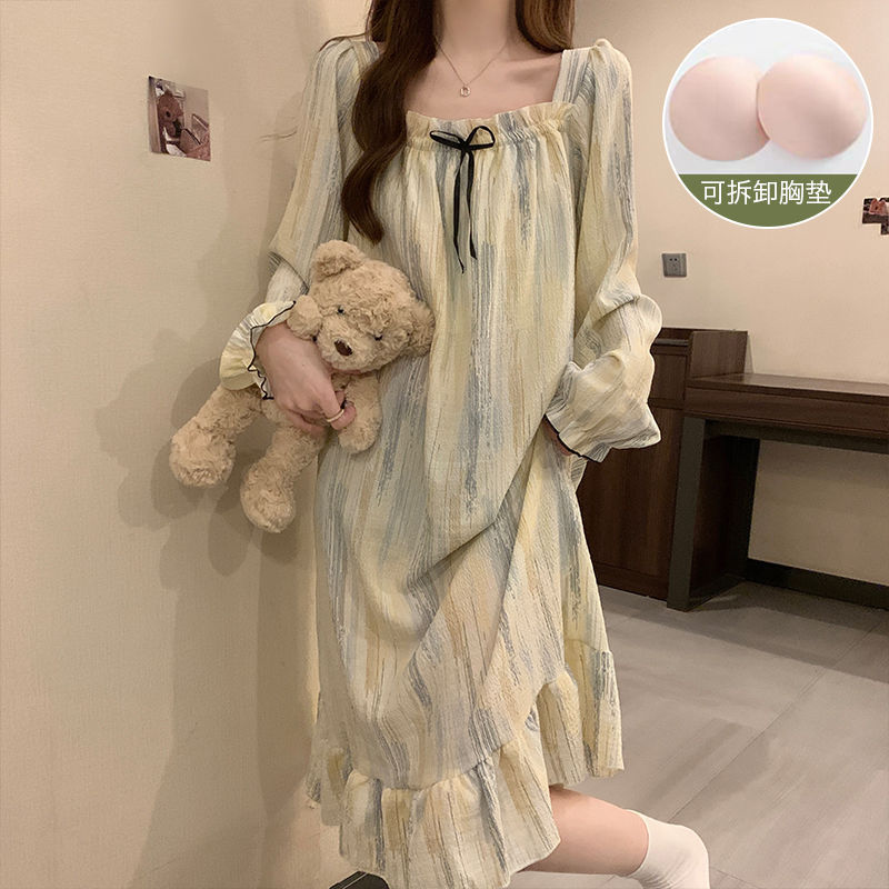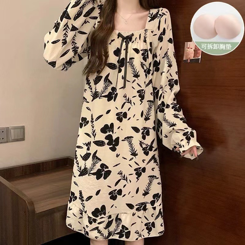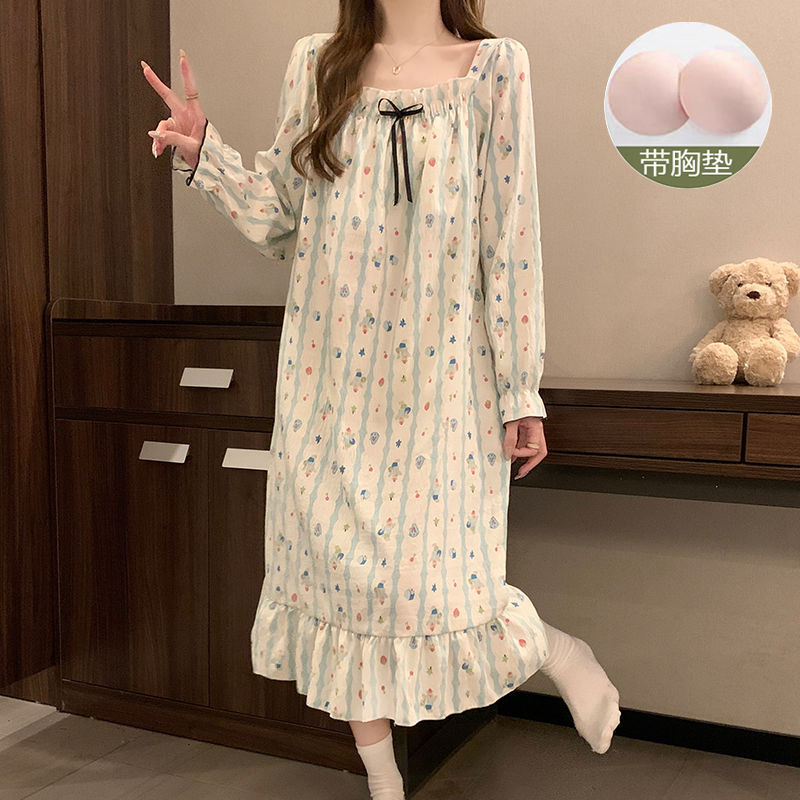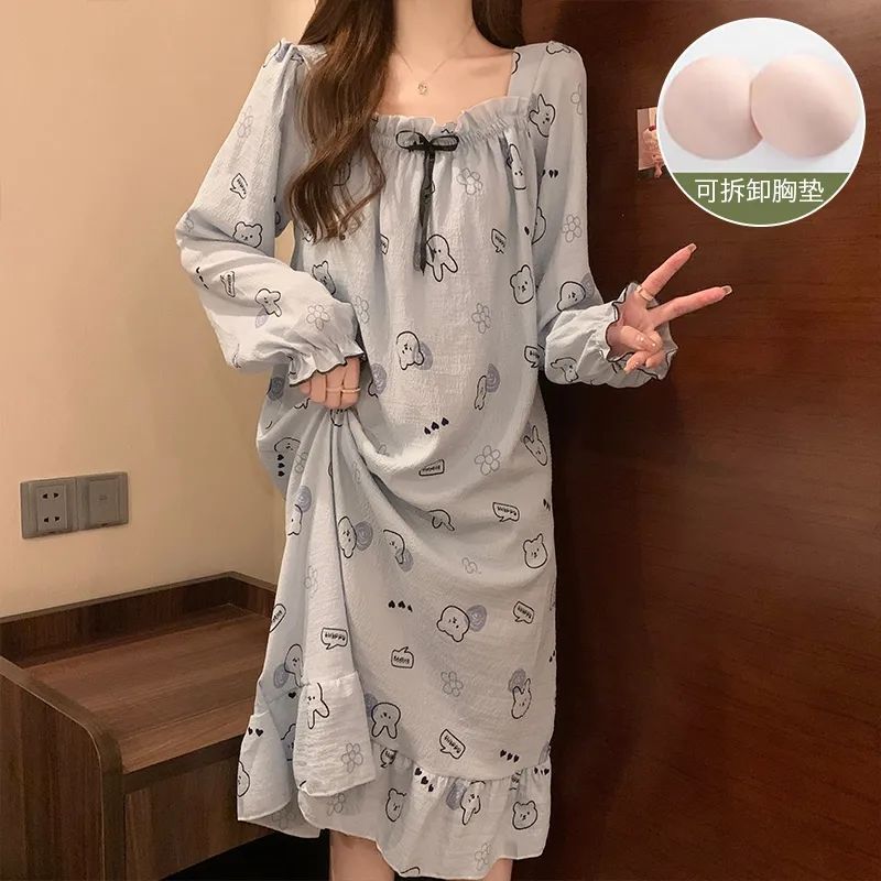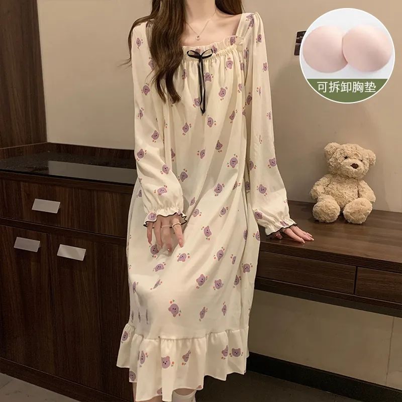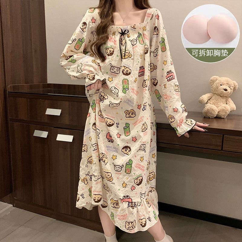 긴 소매 잠옷 여성의 봄과 가을 가슴 패드면 잠옷 여성의 여름 2024 새로운 캐주얼 의상 홈 옷스토어 가기