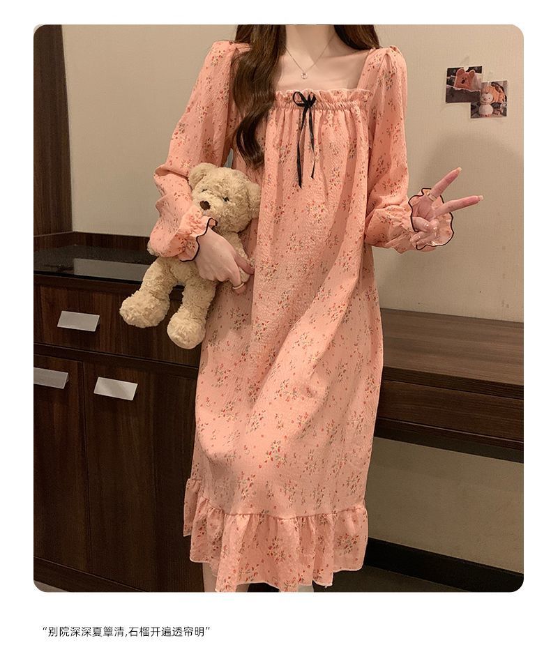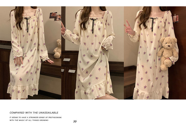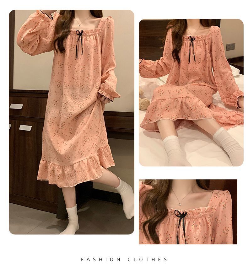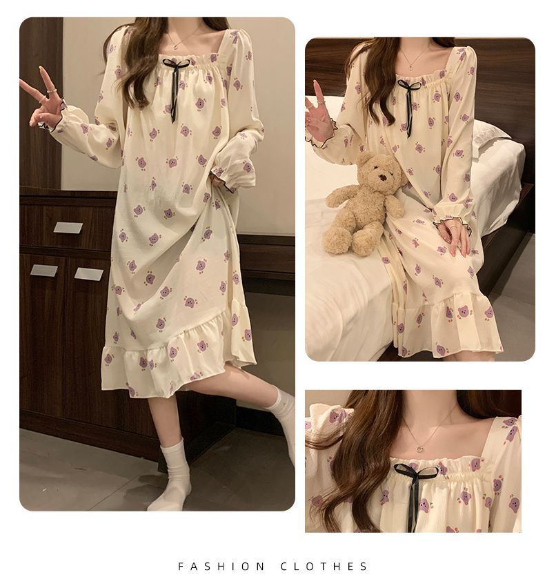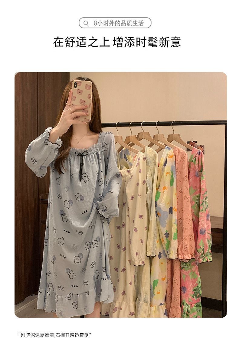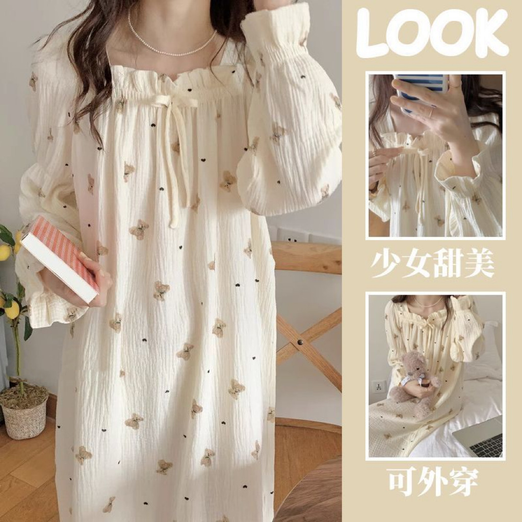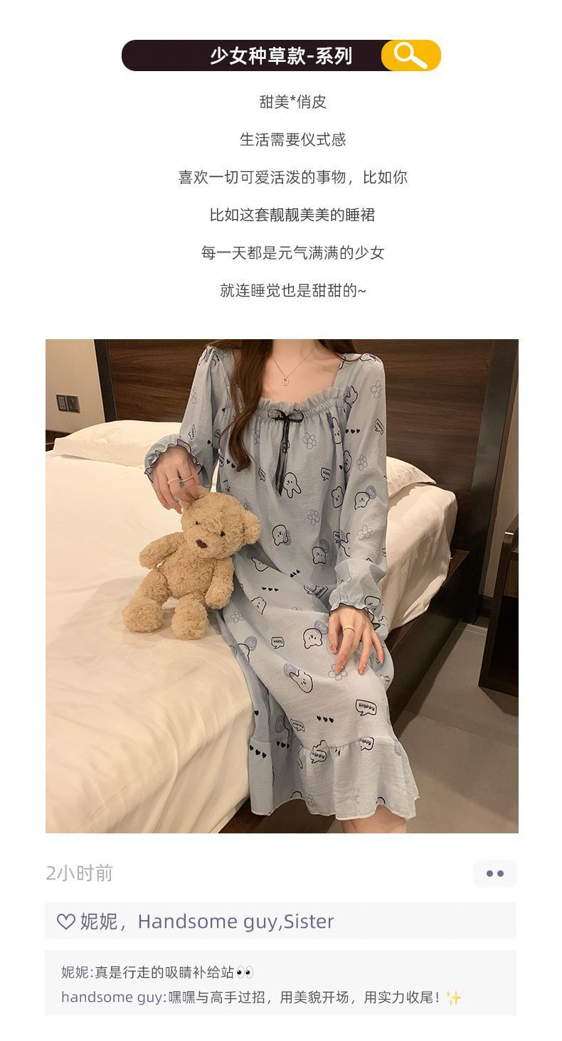긴 소매 잠옷 여성의 봄과 가을 가슴 패드면 잠옷 여성의 여름 2024 새로운 캐주얼 의상 홈 옷스토어 가기