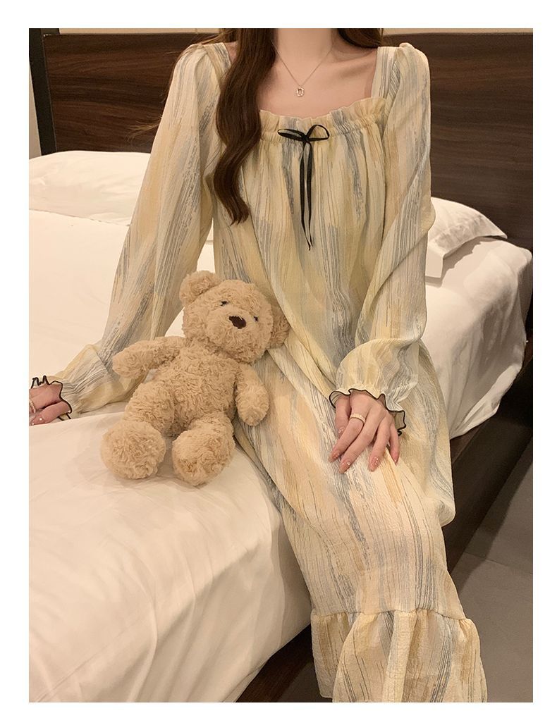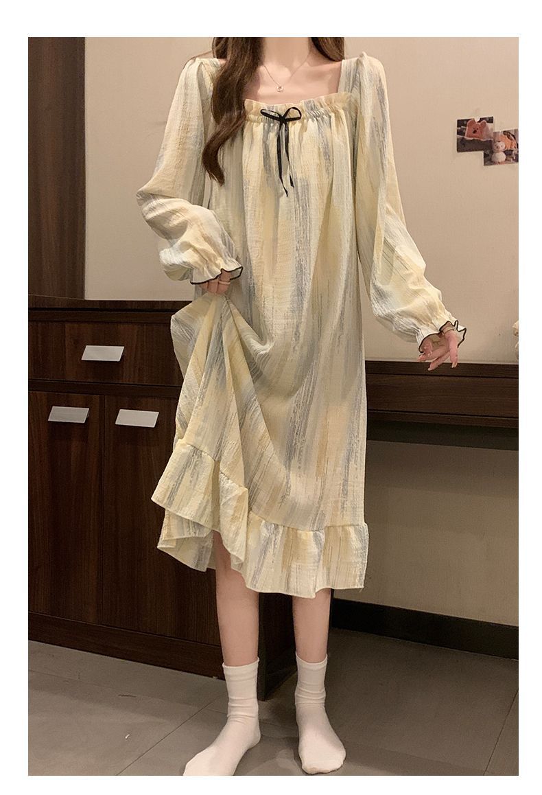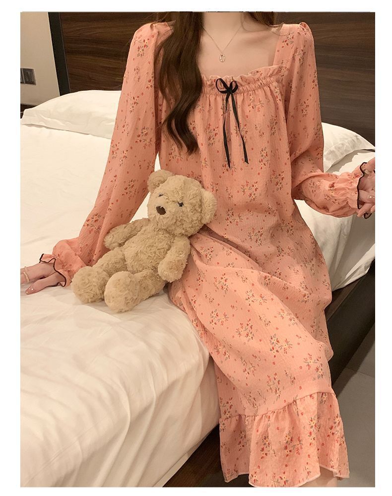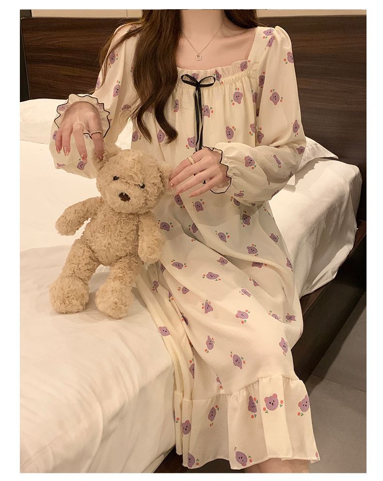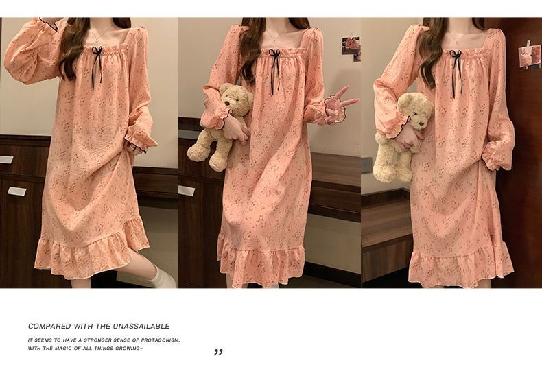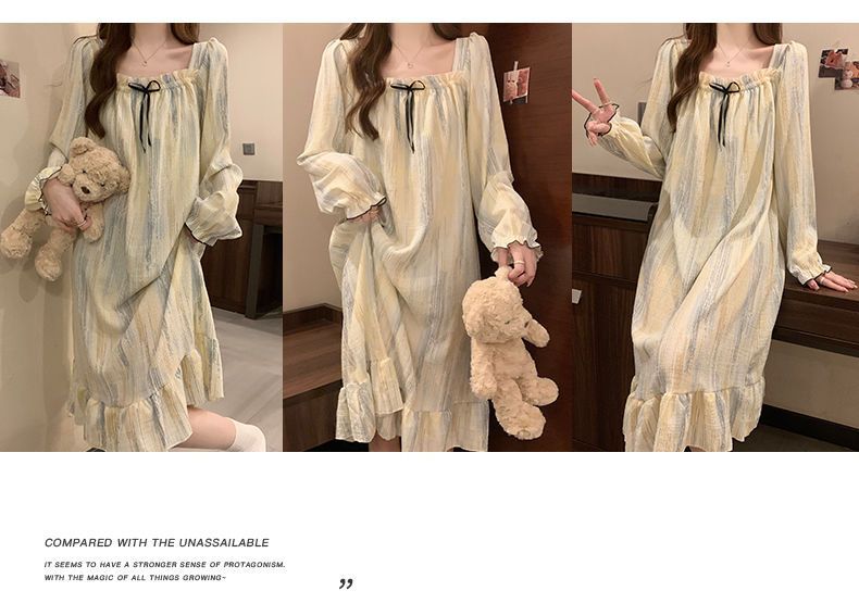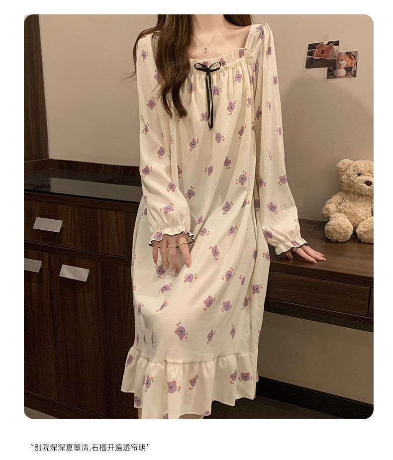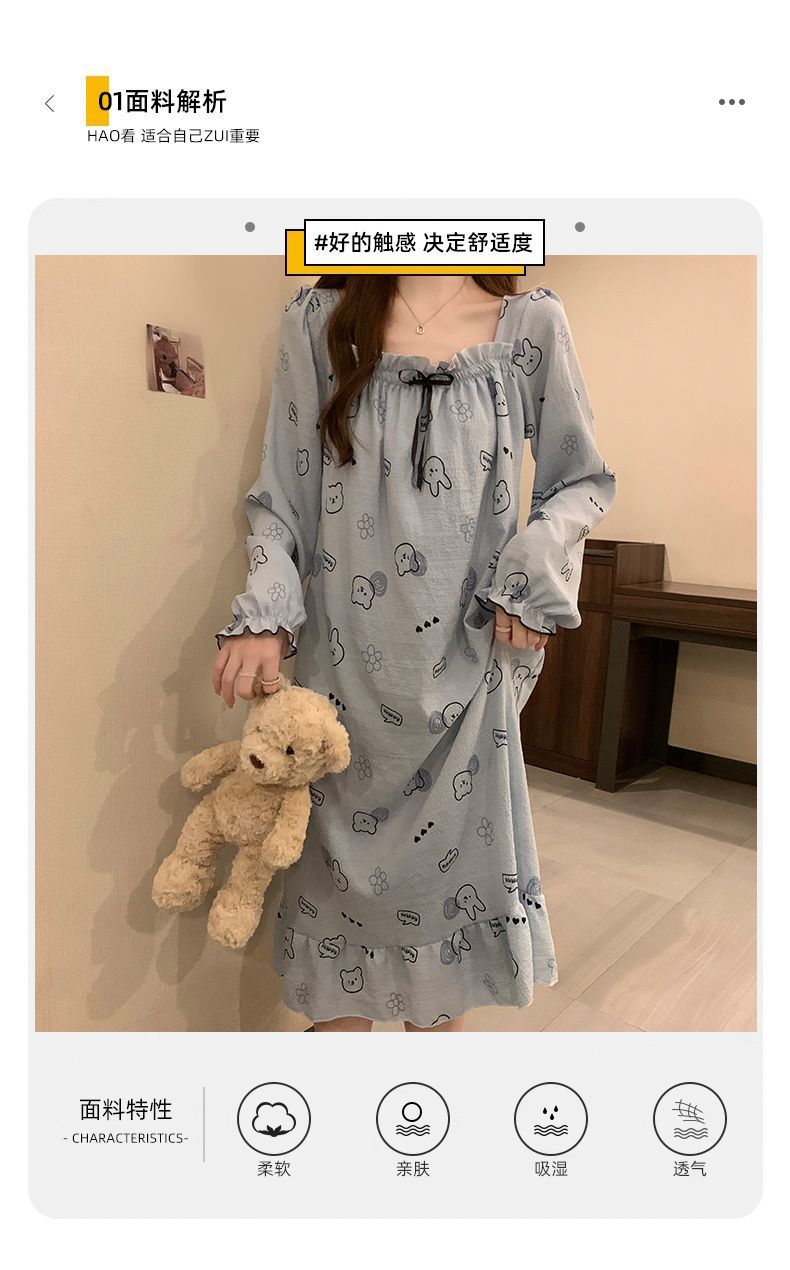 긴 소매 잠옷 여성의 봄과 가을 가슴 패드면 잠옷 여성의 여름 2024 새로운 캐주얼 의상 홈 옷스토어 가기