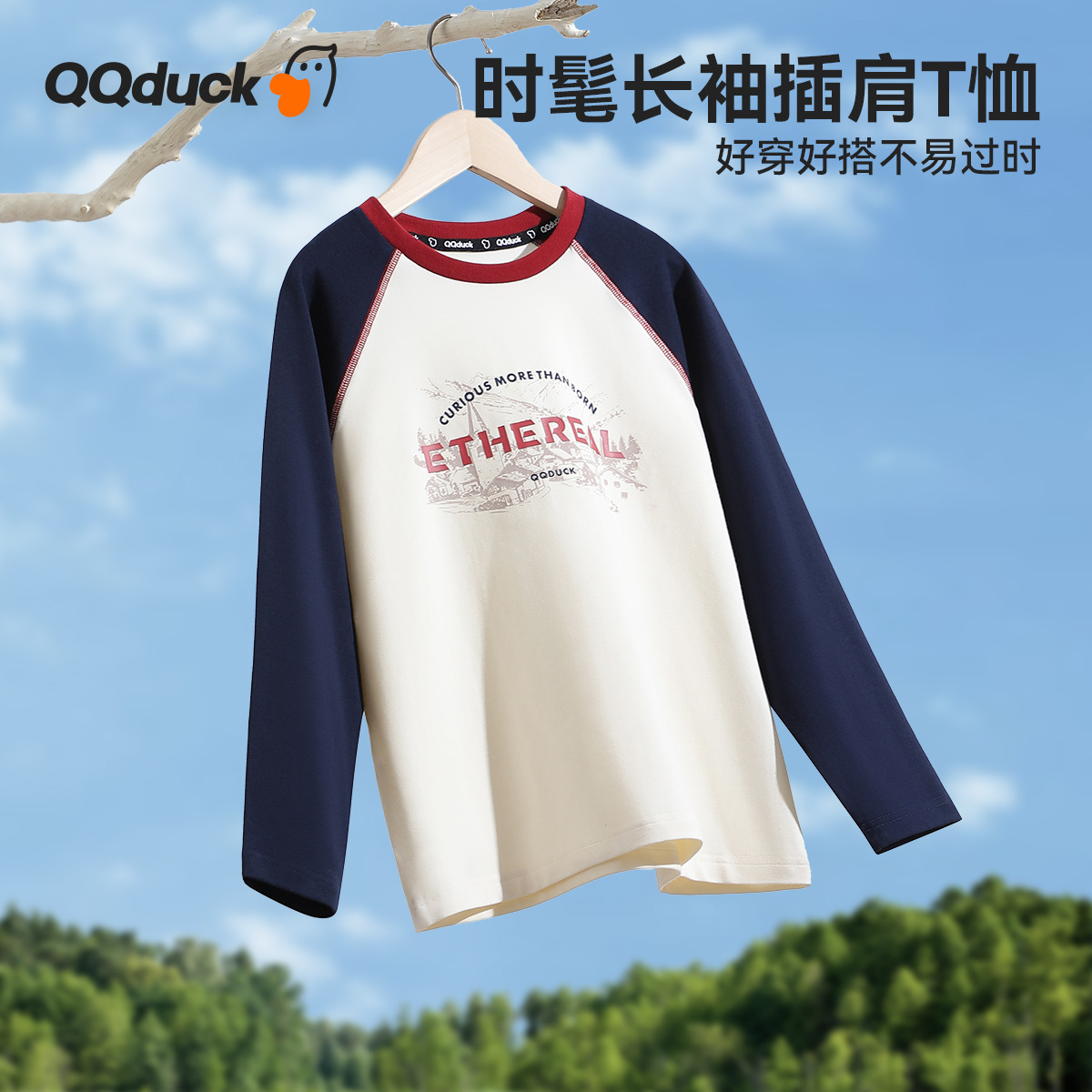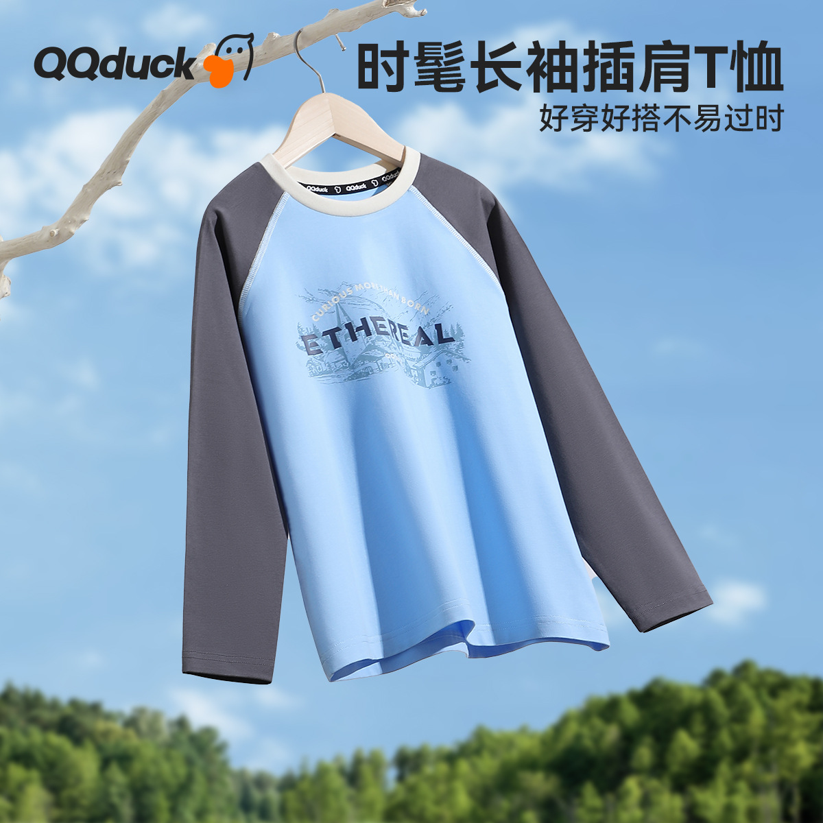 QQduck 코코 오리 봄 어린이 티셔츠 소년 소녀 긴팔 바닥 셔츠 중형 및 대형 아동상의 캐주얼 봄 의류스토어 가기