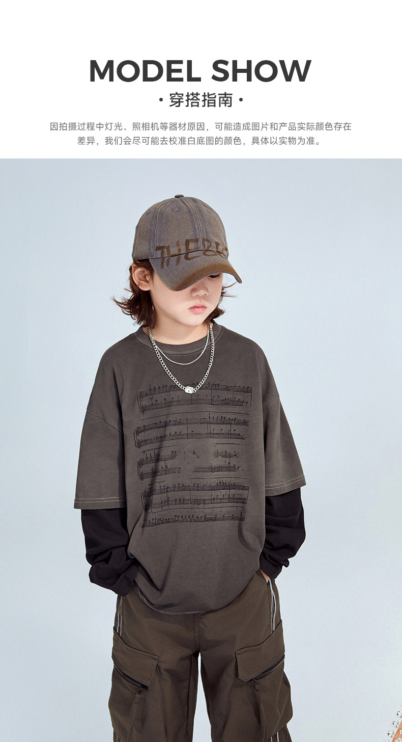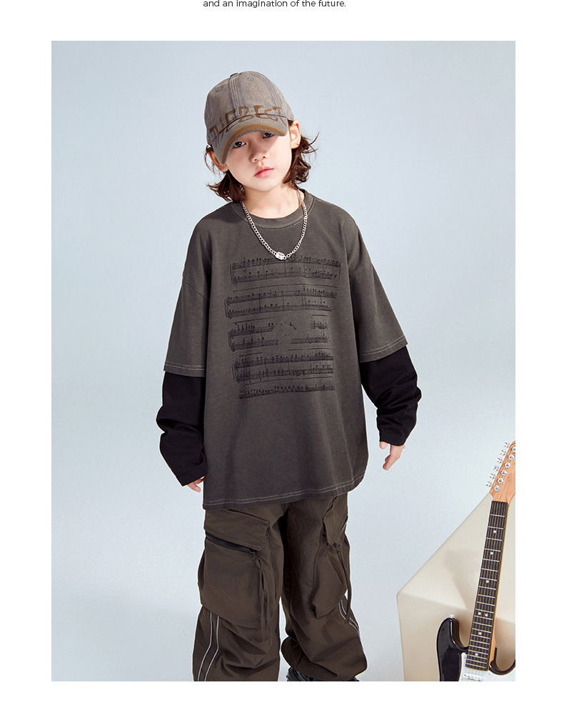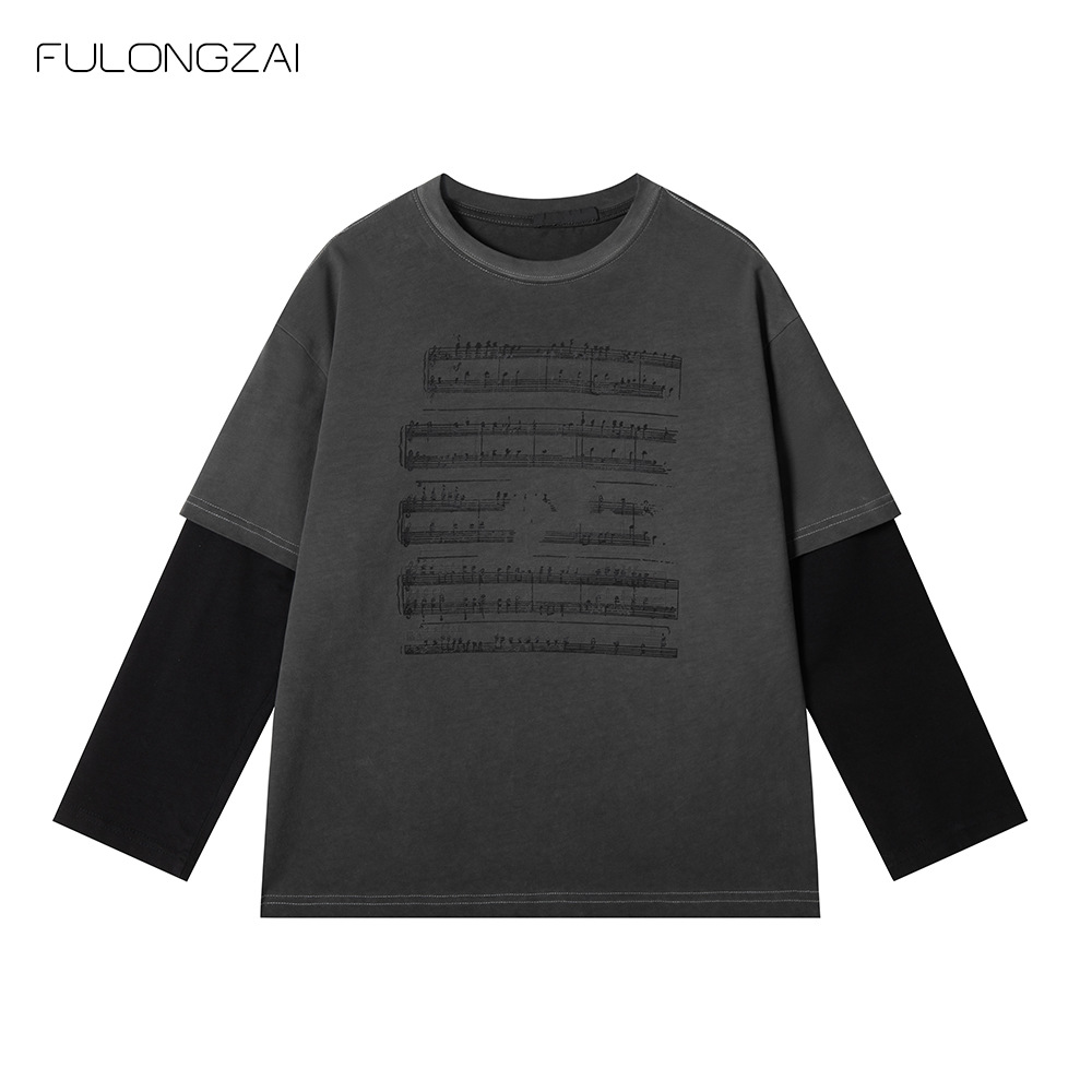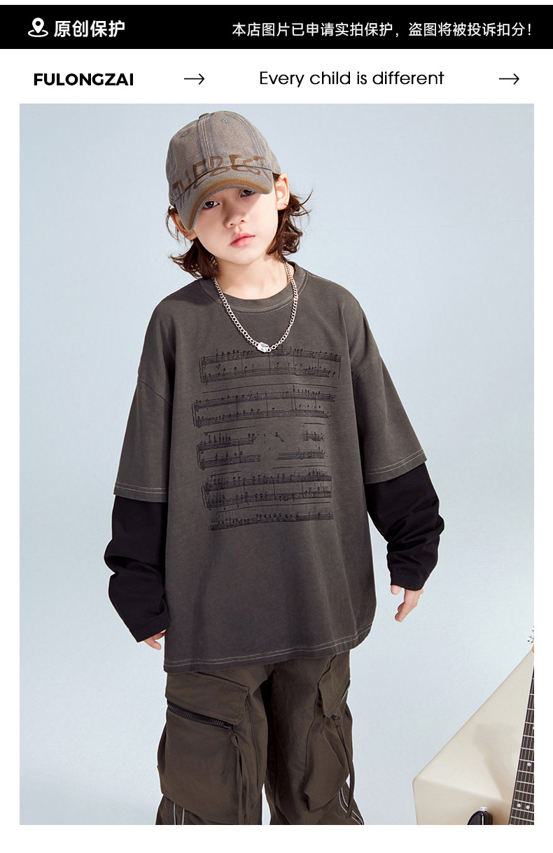 FULONGZAI 부모-자식 아동복 2025 봄 신작 남성, 여성, 중대형 아동 가짜 투피스 긴팔 티셔츠 유행스토어 가기