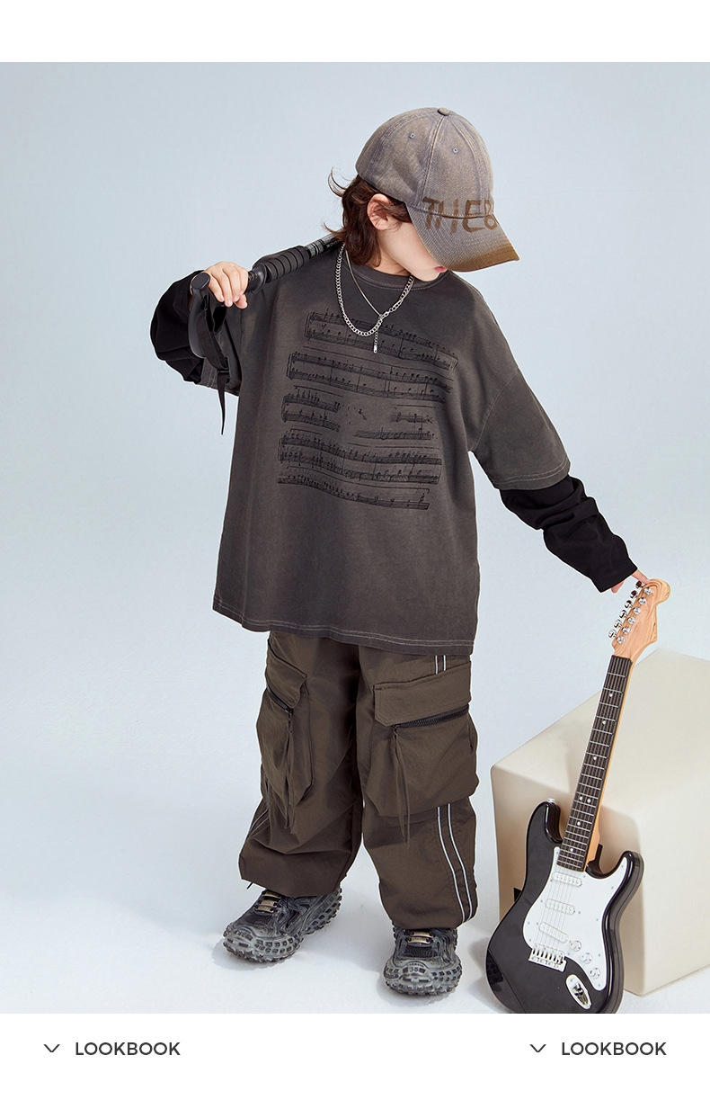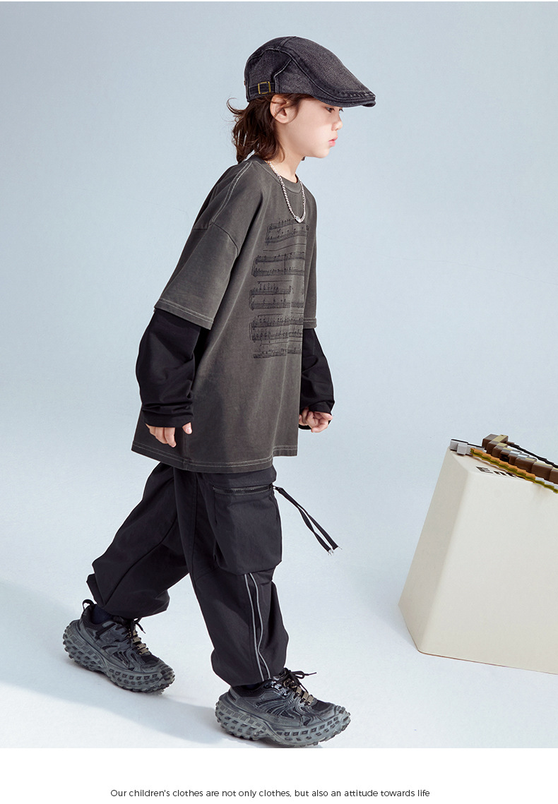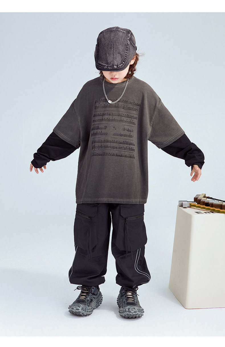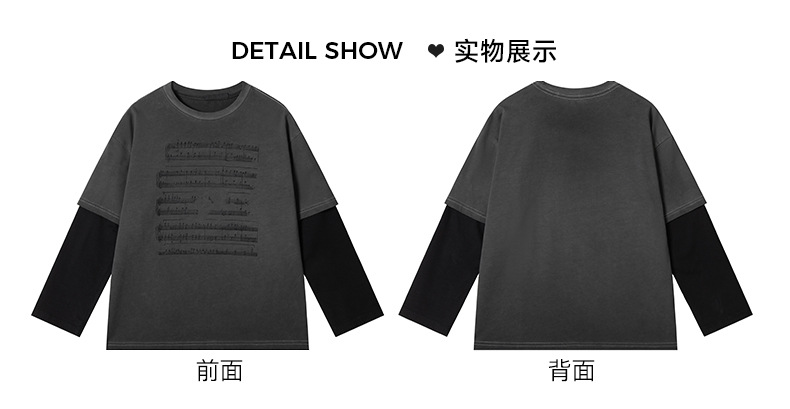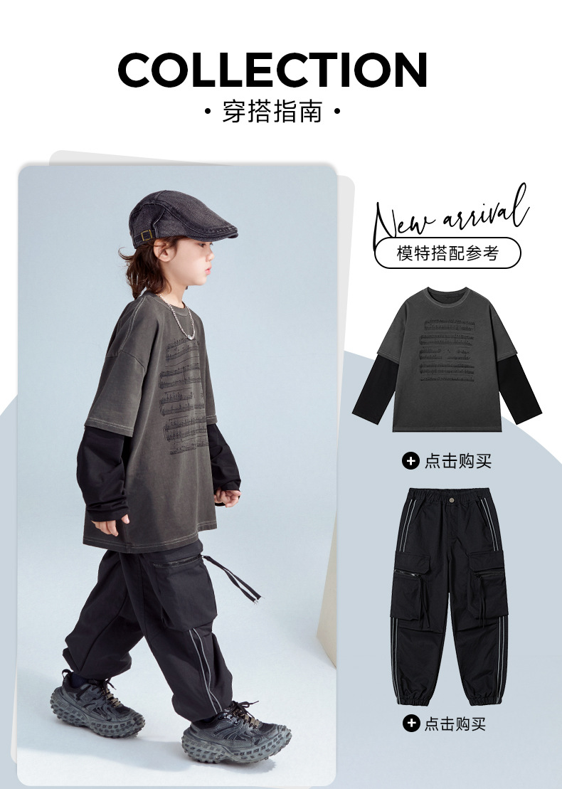 FULONGZAI 부모-자식 아동복 2025 봄 신작 남성, 여성, 중대형 아동 가짜 투피스 긴팔 티셔츠 유행스토어 가기