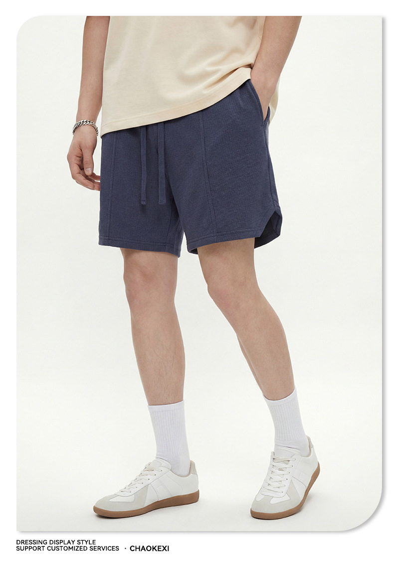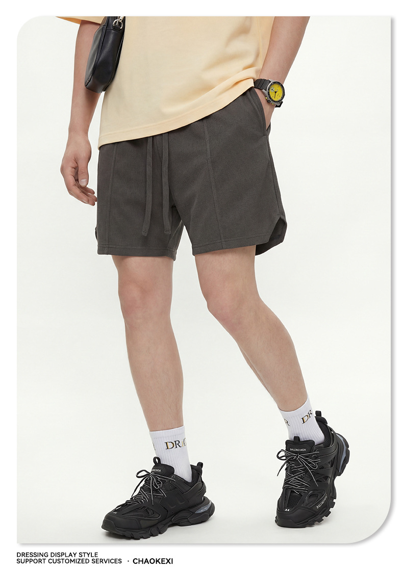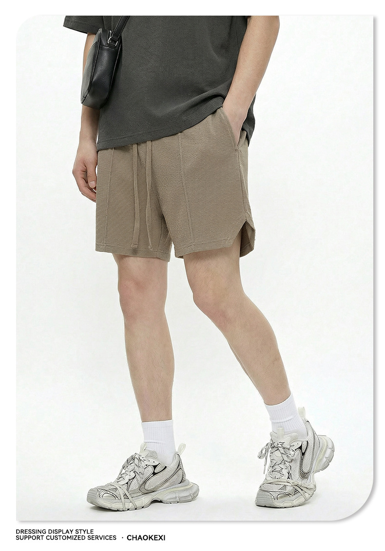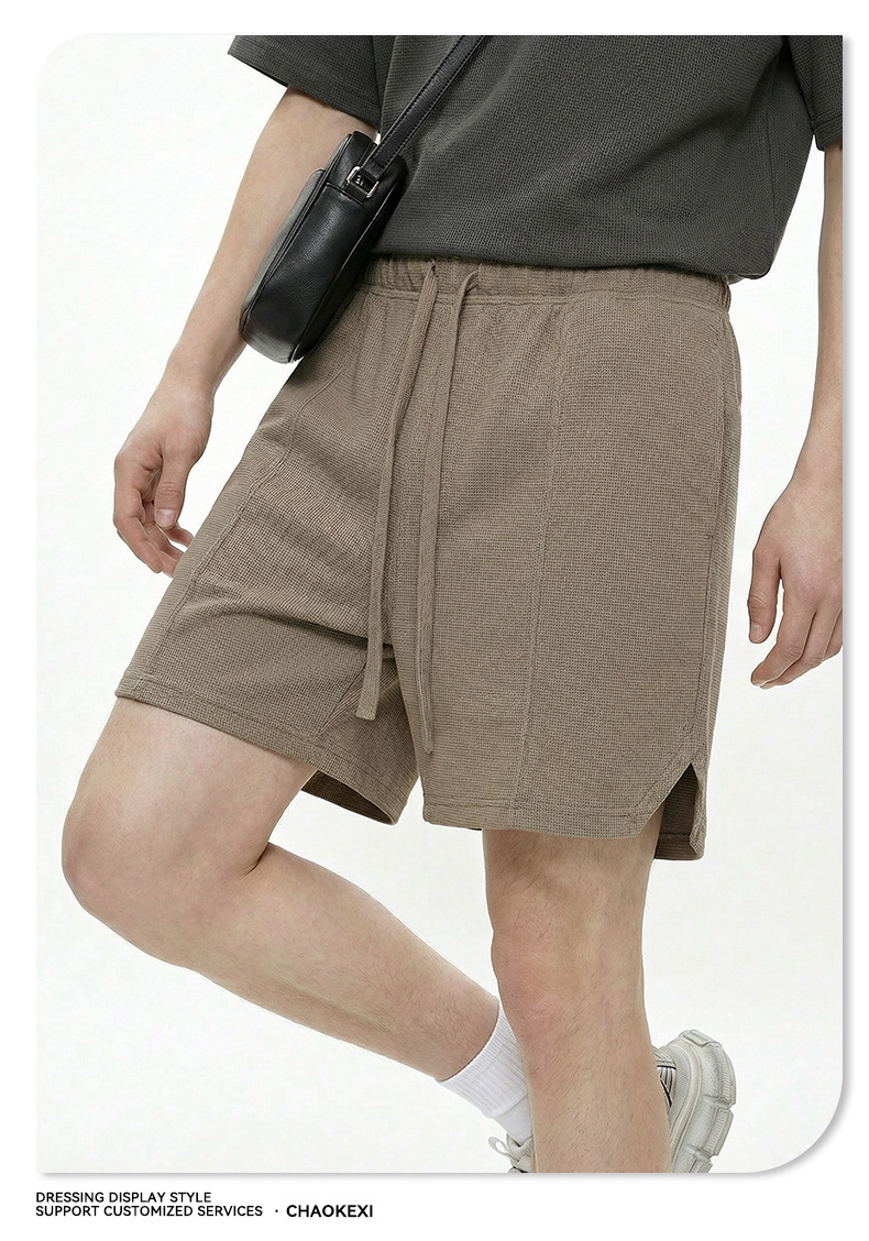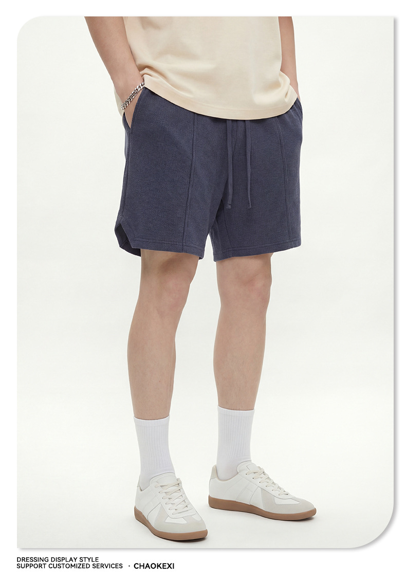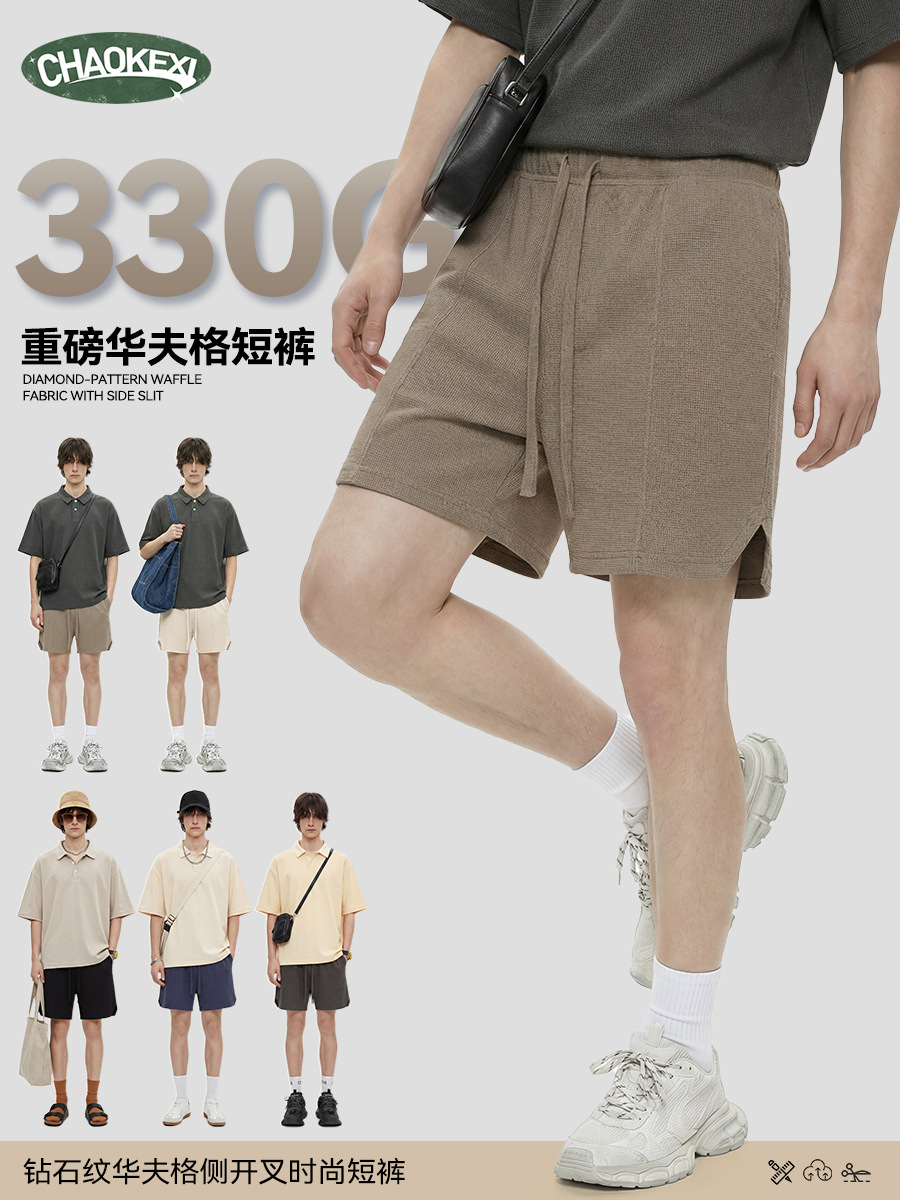 남성복 | 2024 신제품 260g 통기성 와플 패턴 루즈핏 반바지 남성용 유럽 및 미국 하이 스트리트 캐주얼 반바지스토어 가기