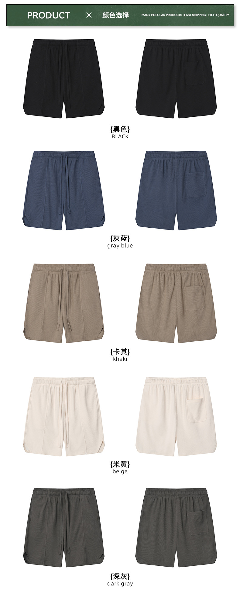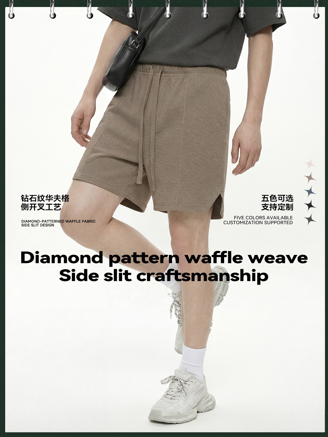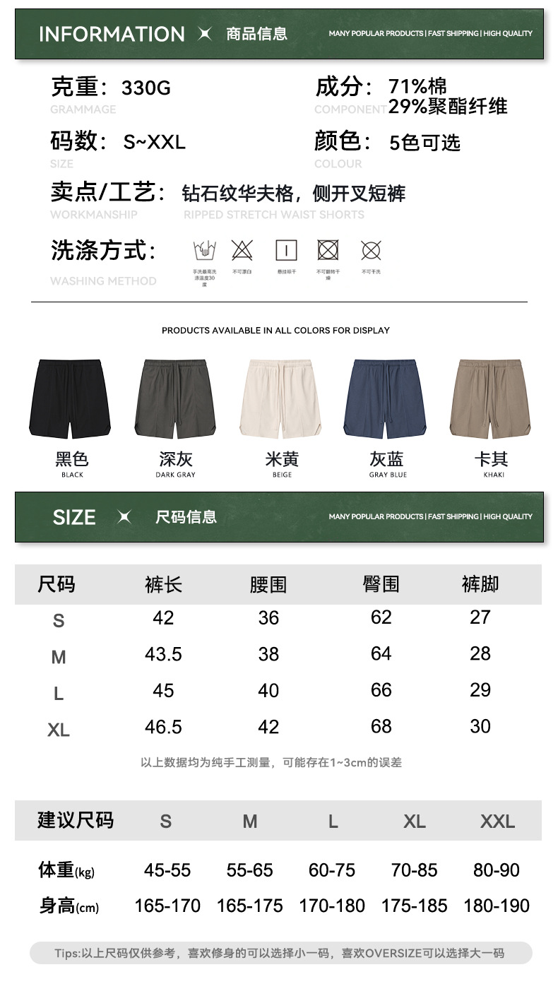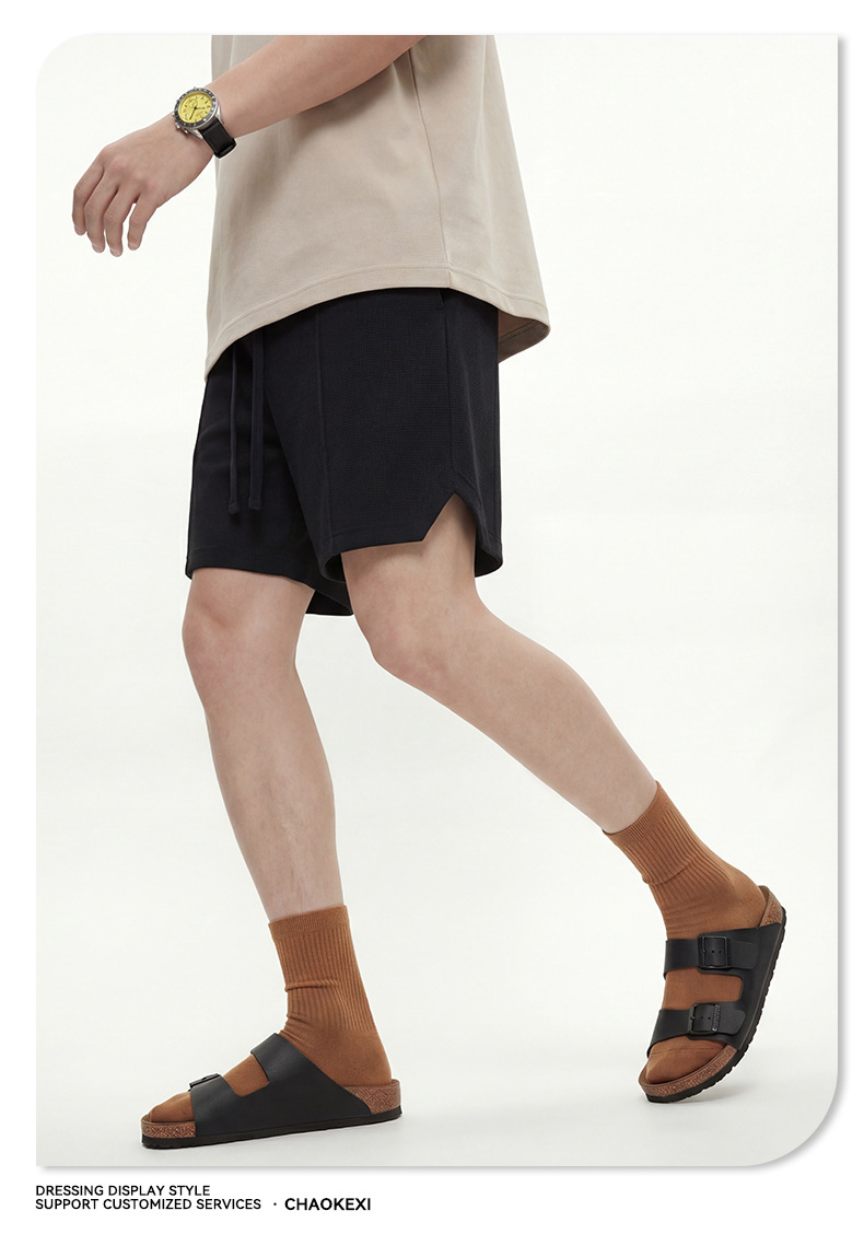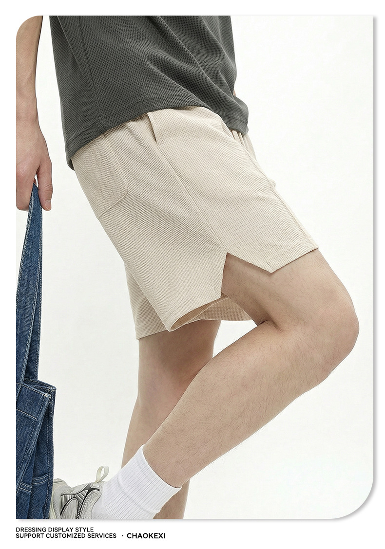 남성복 | 2024 신제품 260g 통기성 와플 패턴 루즈핏 반바지 남성용 유럽 및 미국 하이 스트리트 캐주얼 반바지스토어 가기