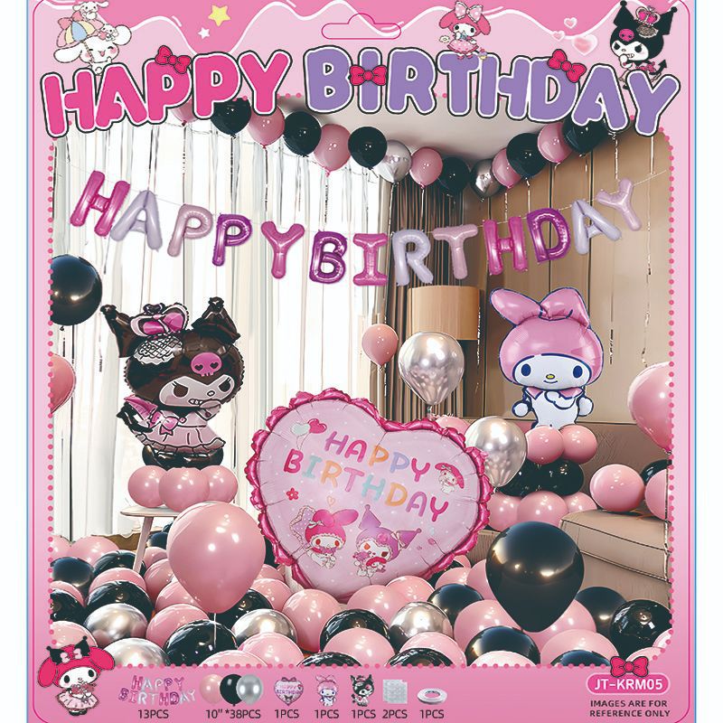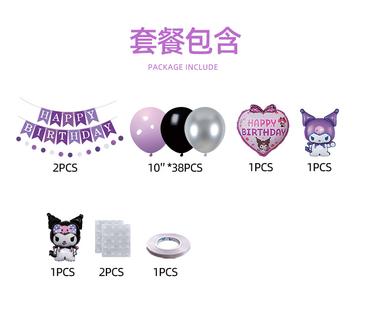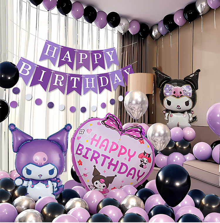 쿠로미 생일 풍선 소녀 장식 고급 분위기 파티 드레스 소품 배경 벽 패키지