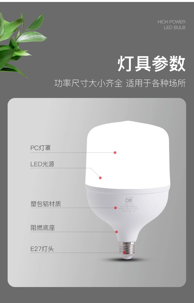 야밍 큰 흰색 전구 E27 스크류 가정용 에너지 절약 램프 침실 야외 방습 건설 현장 공장 전구스토어 가기