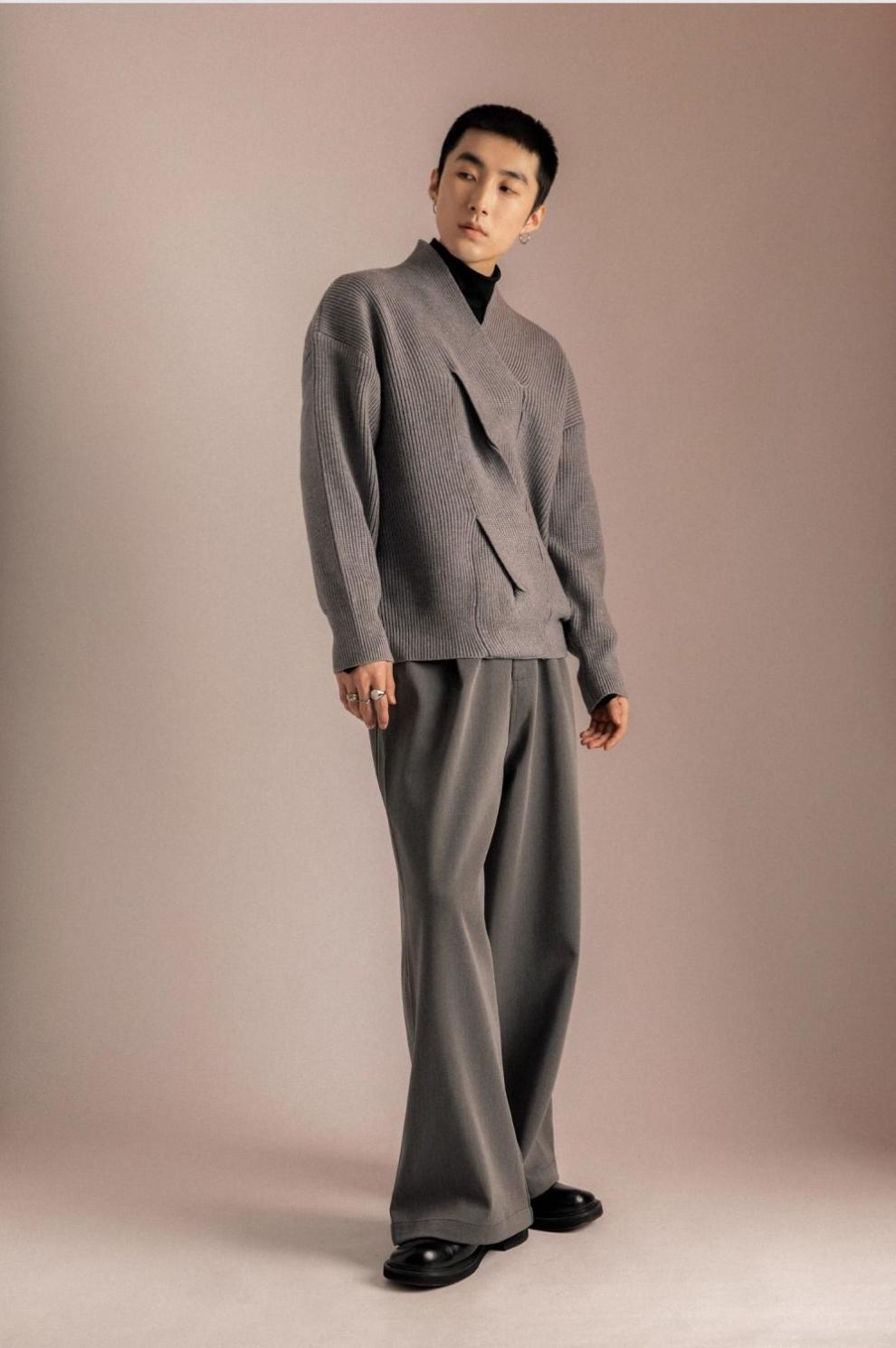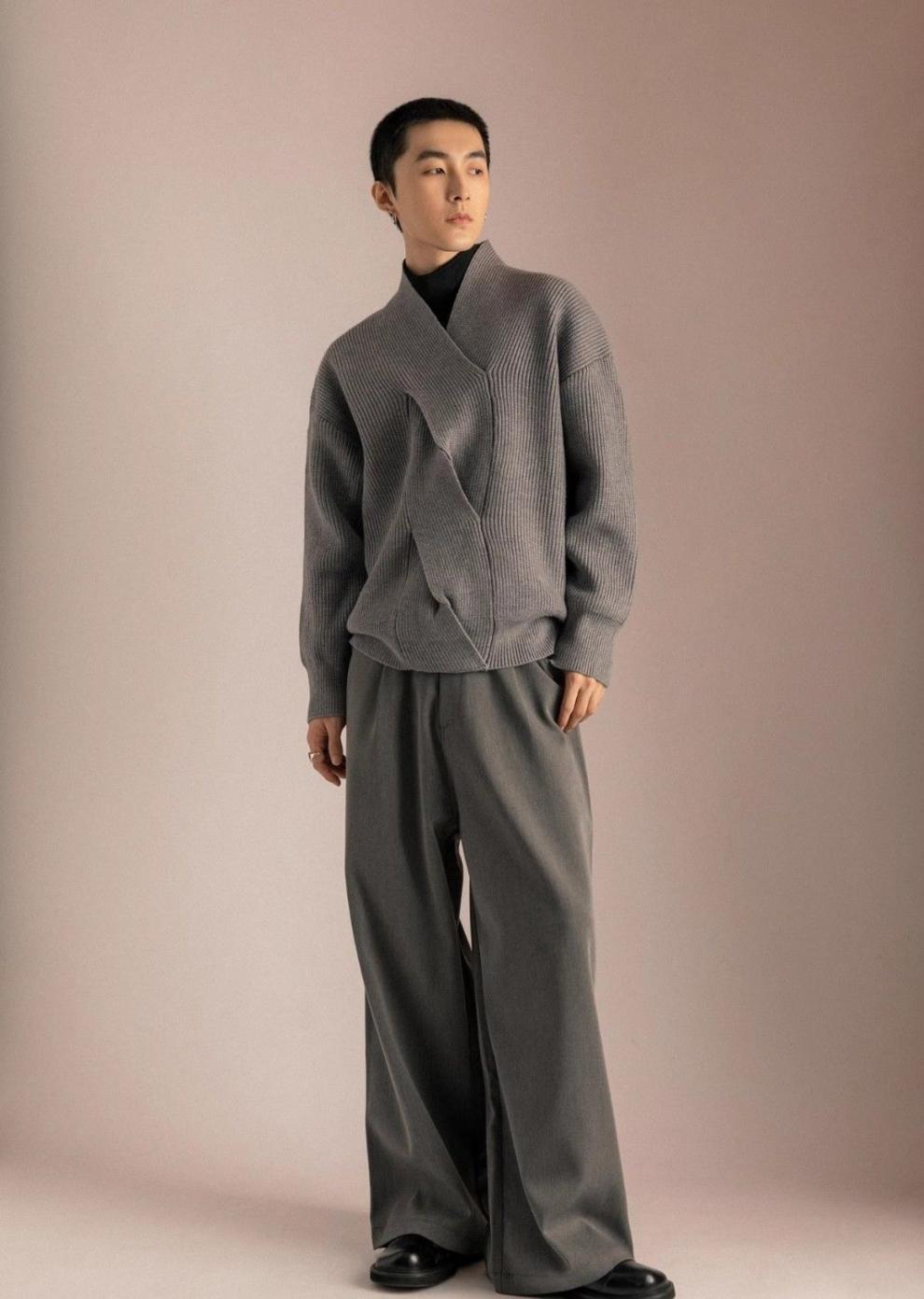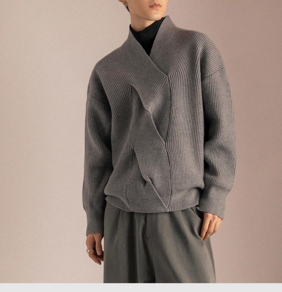 日系V领毛衣男2024小众设计感 慵懒高级超好看针织衫宽松潮