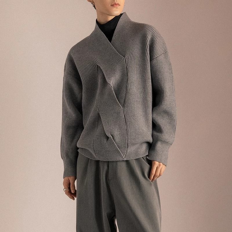 흰색 일본 V 넥 스웨터 남성 틈새 디자인 게으른 잘 생긴 스웨터 느슨한 패션