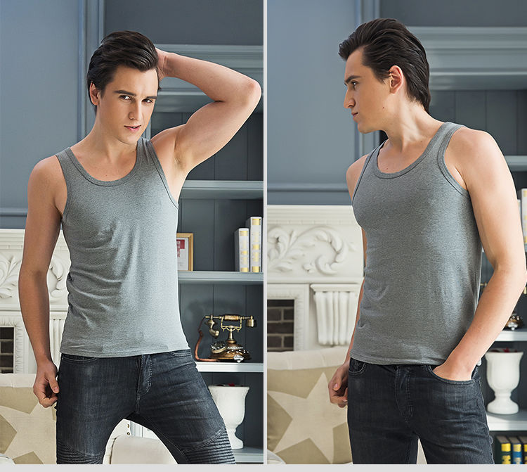 남성용 순면 바닥 민소매 조끼, 여름 허들 스포츠 및 레저, 대형, 단색, 이너웨어, 사계절 바닥 속옷스토어 가기