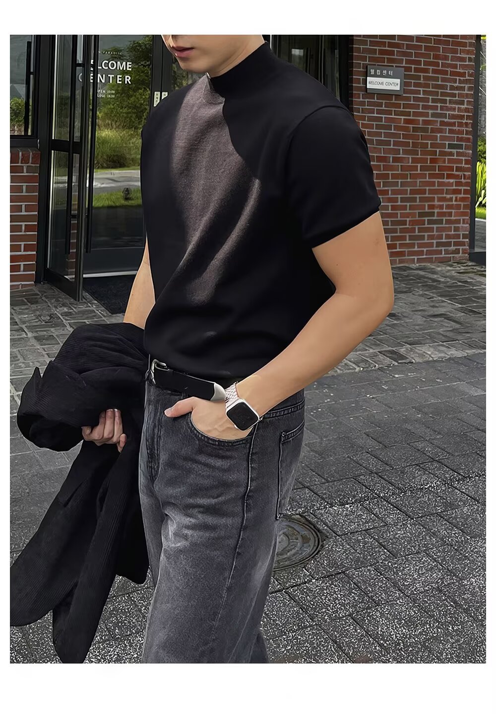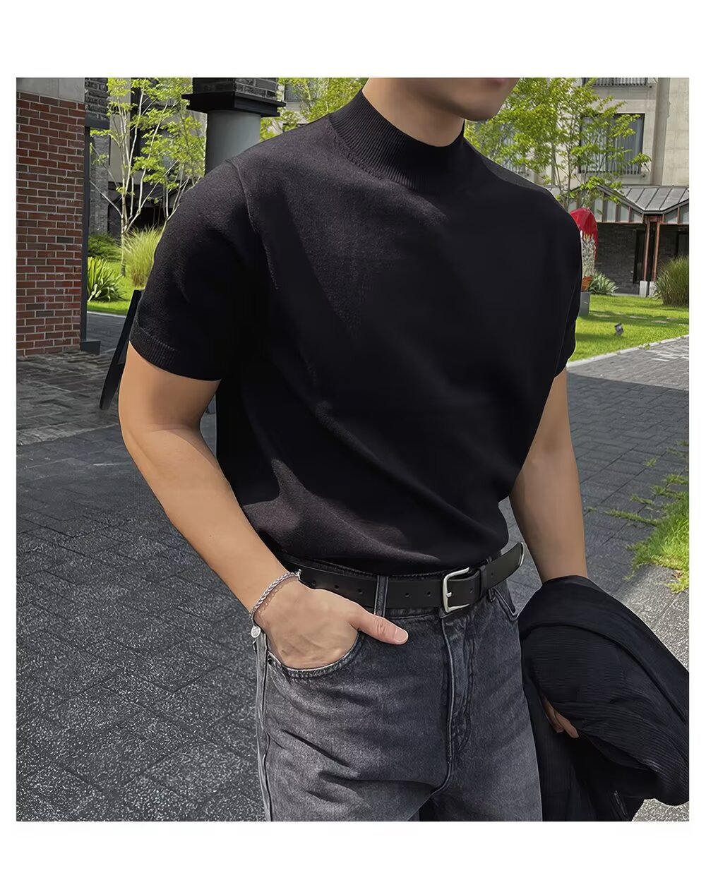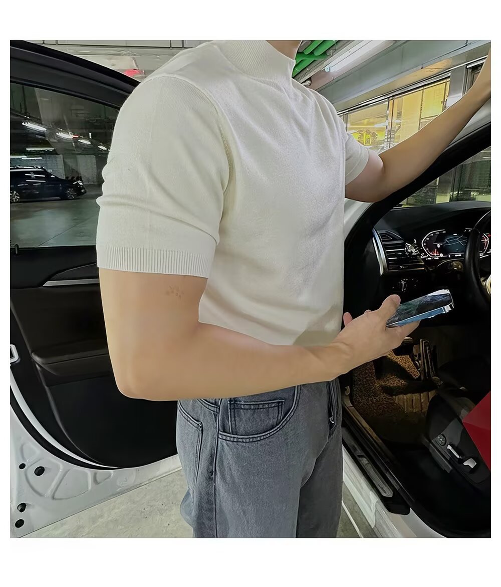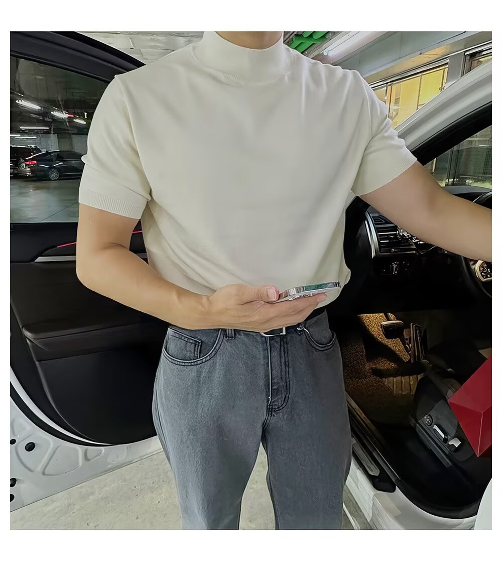 2025년 가을 겨울 남성용 하프 터틀넥 반팔 스웨터 남성용 새로운 고급 이너웨어 미드 칼라 니트 바닥 셔츠스토어 가기