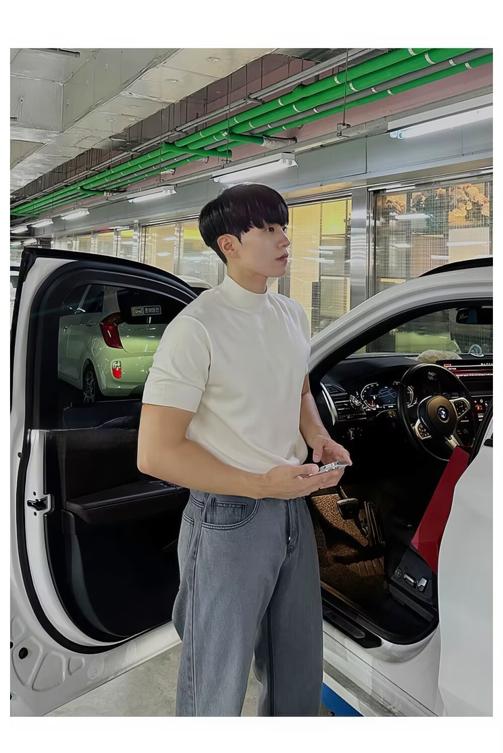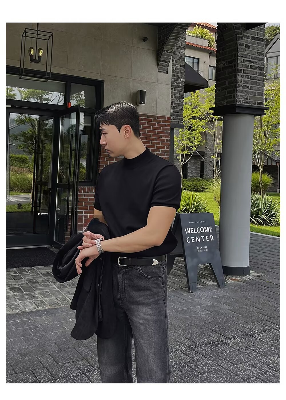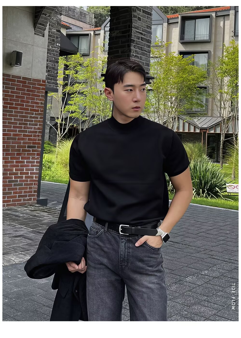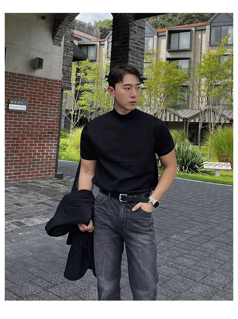 2025년 가을 겨울 남성용 하프 터틀넥 반팔 스웨터 남성용 새로운 고급 이너웨어 미드 칼라 니트 바닥 셔츠스토어 가기