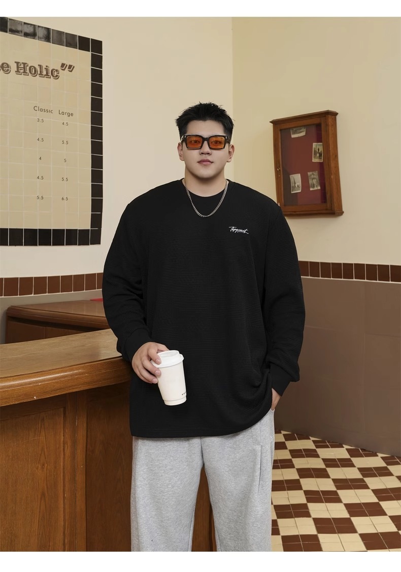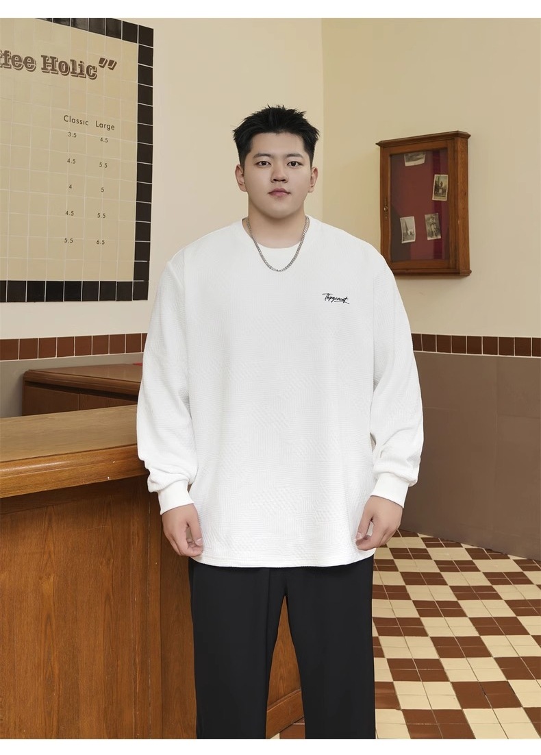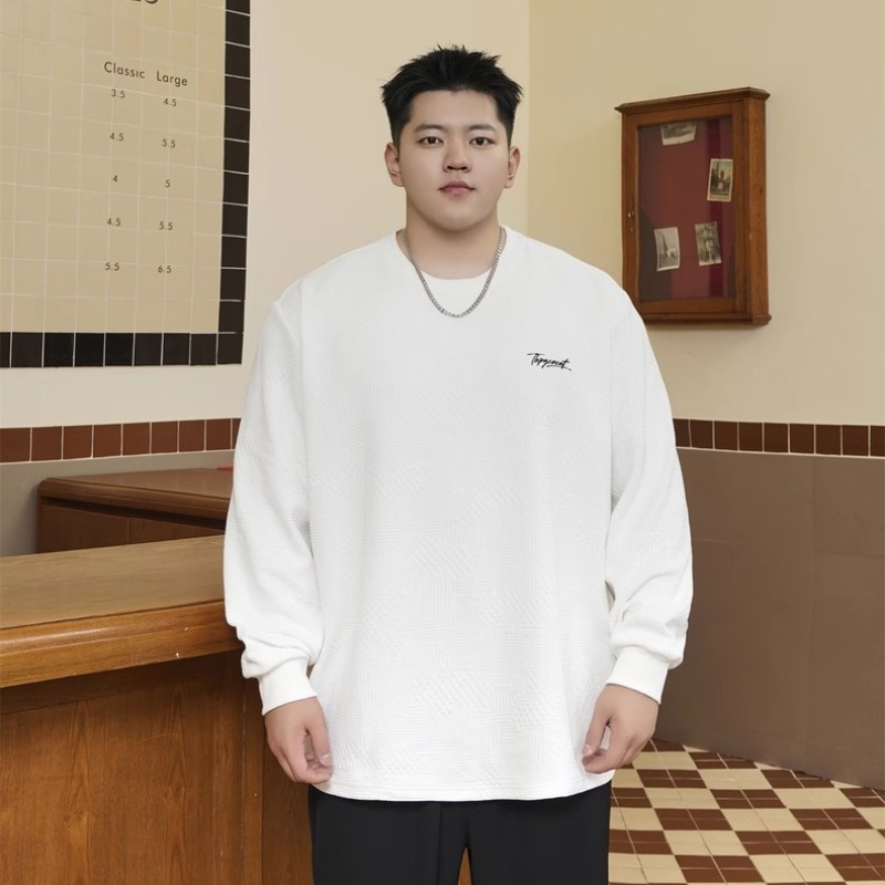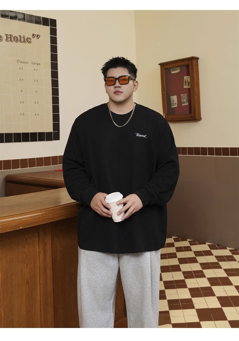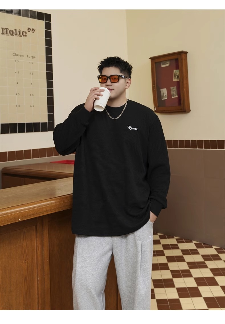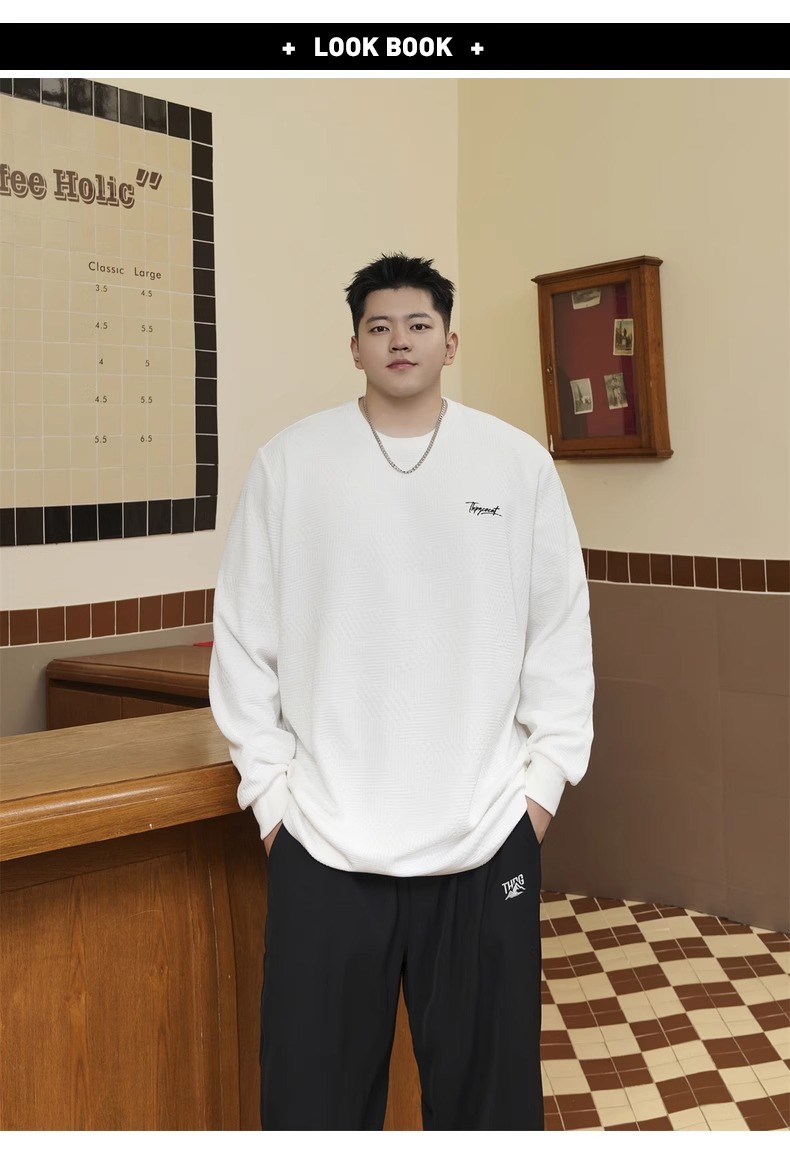 일본 패션 브랜드 긴팔 티셔츠 남성 봄과 가을 지방 느슨한 플러스 사이즈 캐주얼 크루 넥 풀오버 스웨트 셔츠스토어 가기