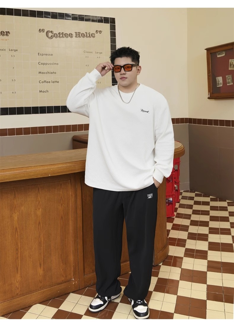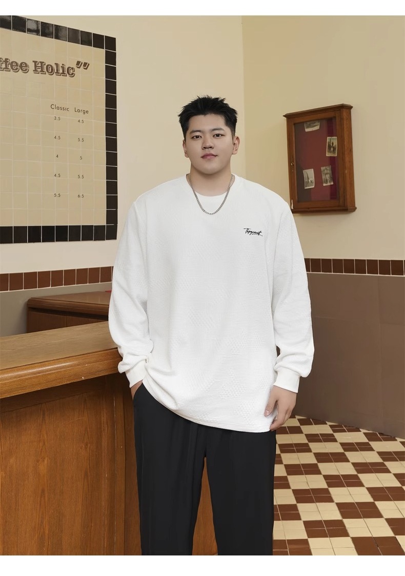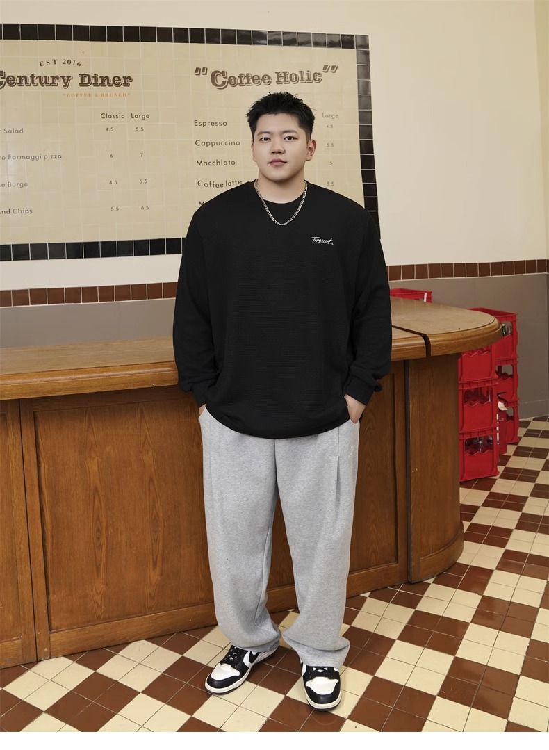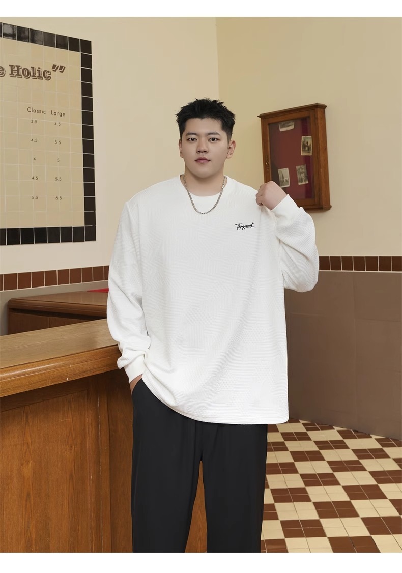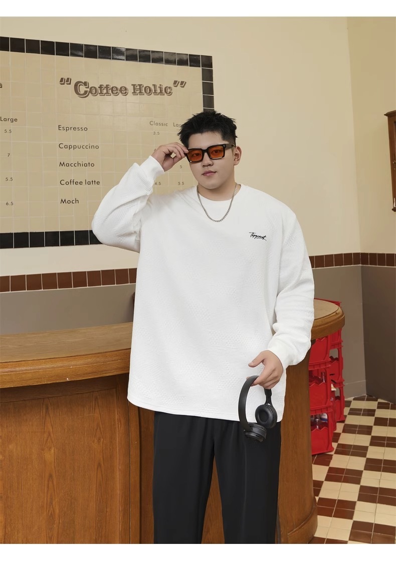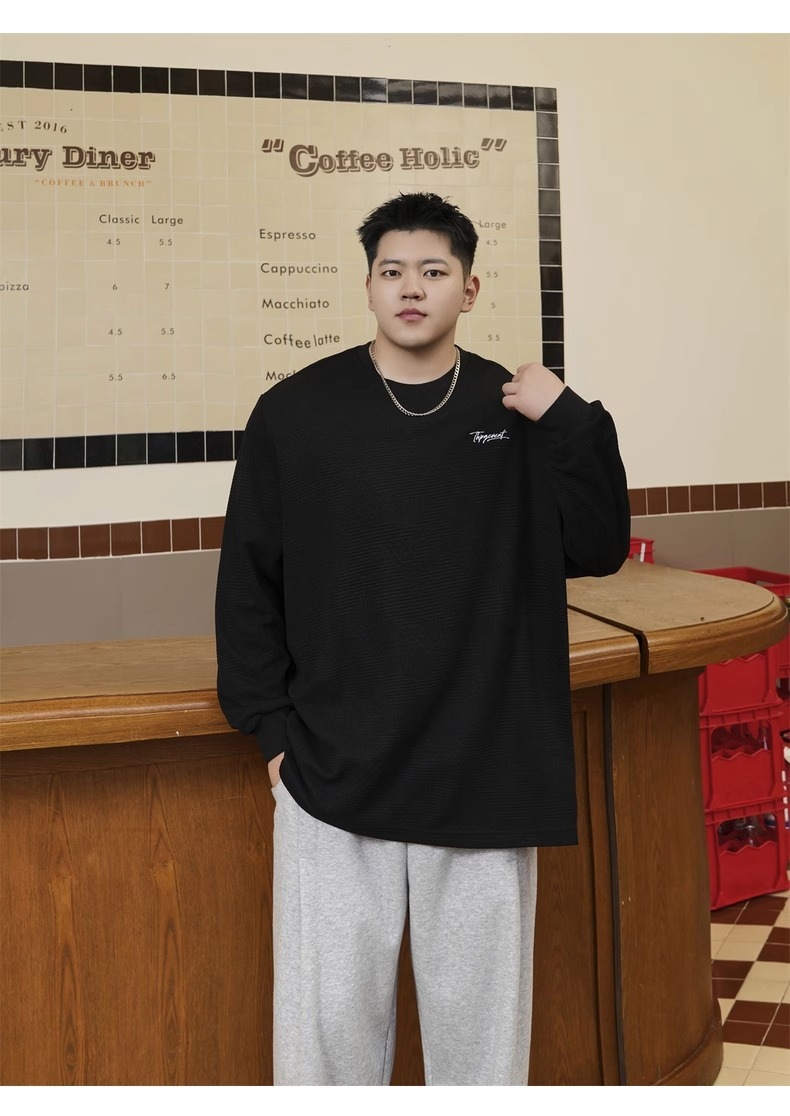 일본 패션 브랜드 긴팔 티셔츠 남성 봄과 가을 지방 느슨한 플러스 사이즈 캐주얼 크루 넥 풀오버 스웨트 셔츠스토어 가기
