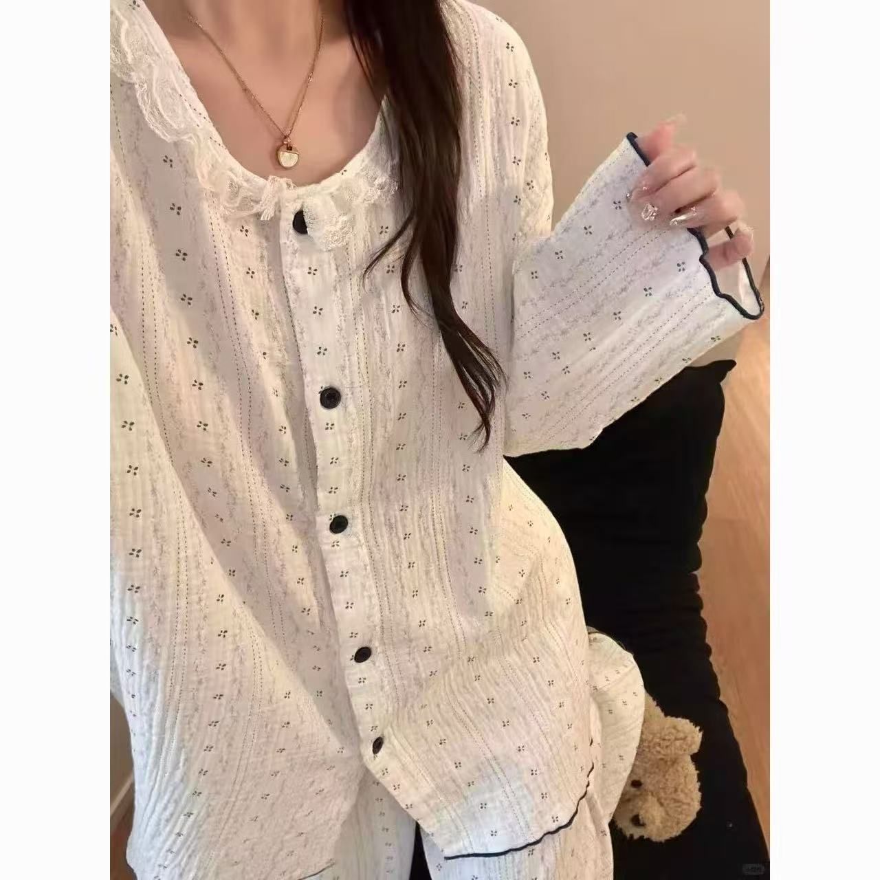 국경 도매 봄과 가을 새로운 인형 칼라 파자마 여성 구름 면화 만화 귀여운 달콤한 투피스 홈 의류