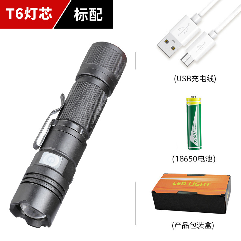 • [T6 심지] 단일 손전등 + 충전 케이블 + 흰색 상자