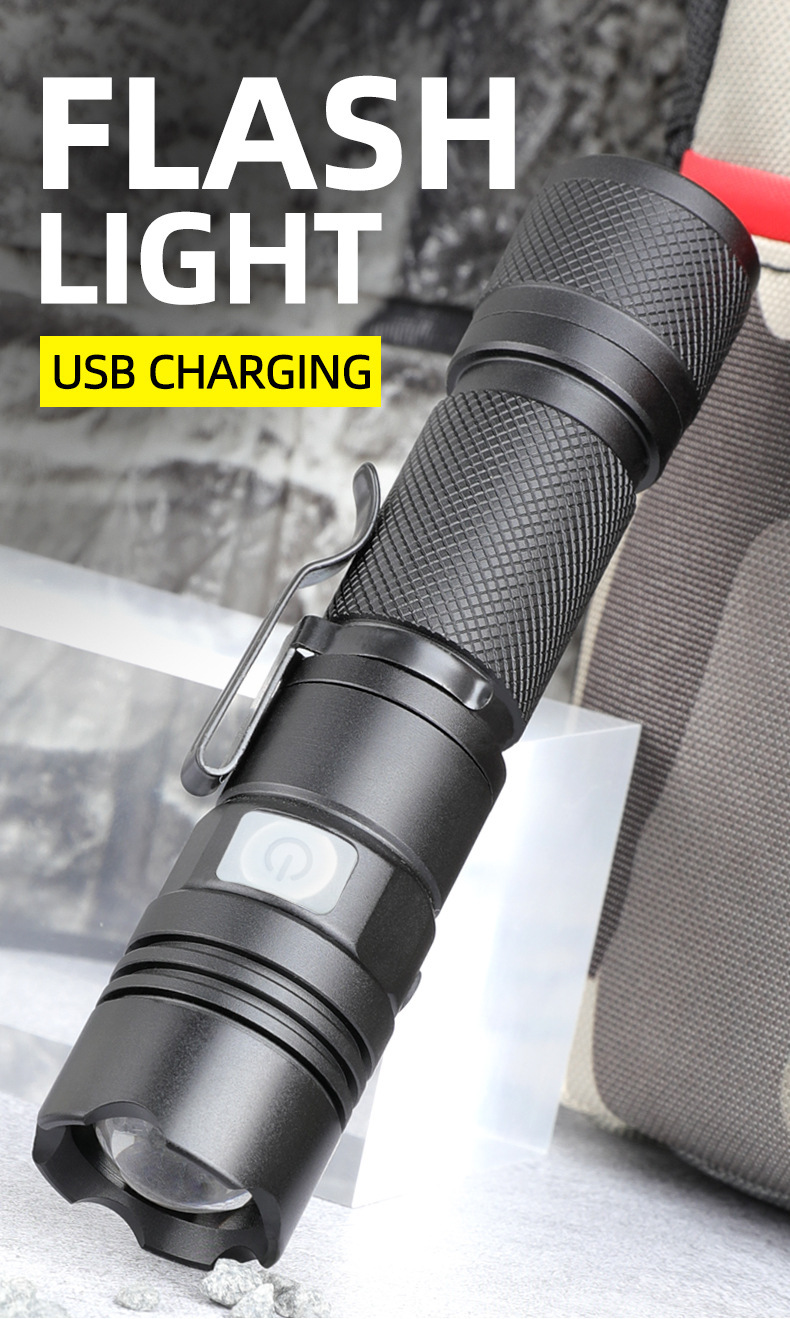 국경 폭발 P50 손전등 야외 USB 충전 다기능 LED 조명 알루미늄 합금 손전등