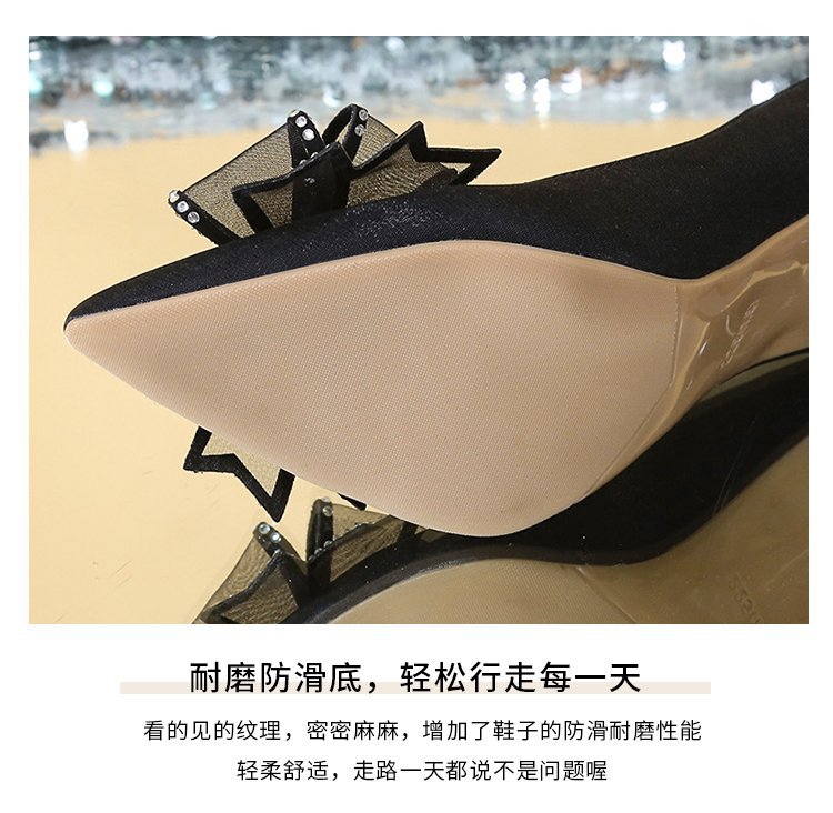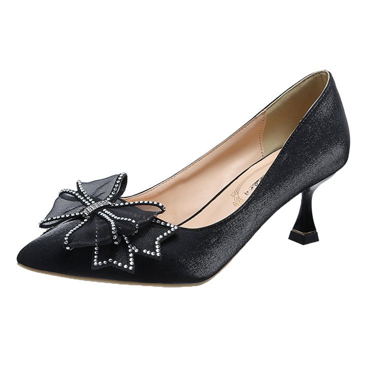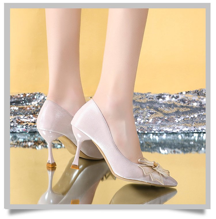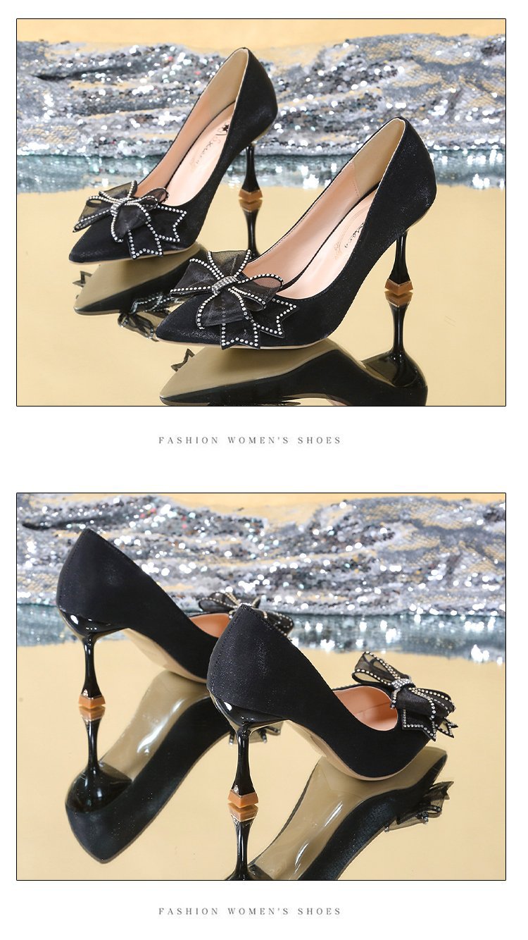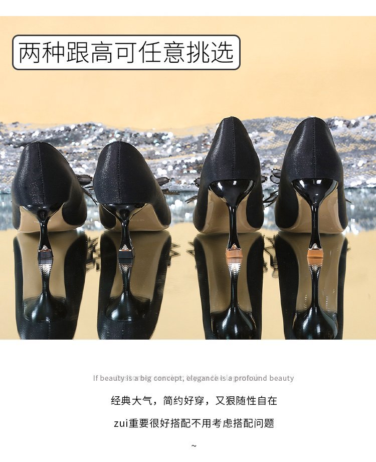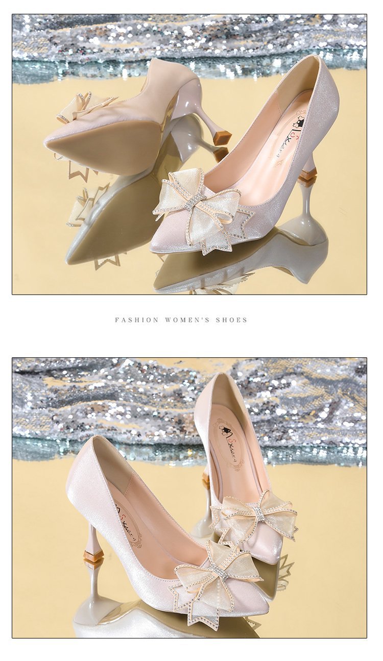2026 봄 신상 얇은 굽의 싱글 슈즈, 리본 장식의 뾰족한 앞코와 얕은 입구의 하이힐, 새틴 레드 신부 여성화 도매스토어 가기
