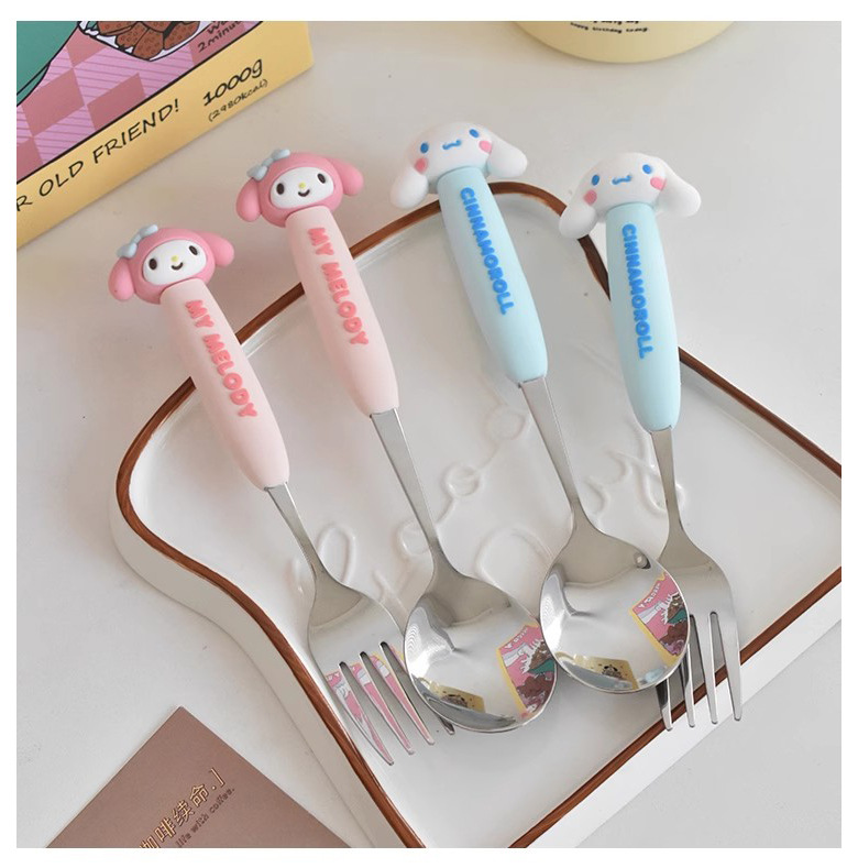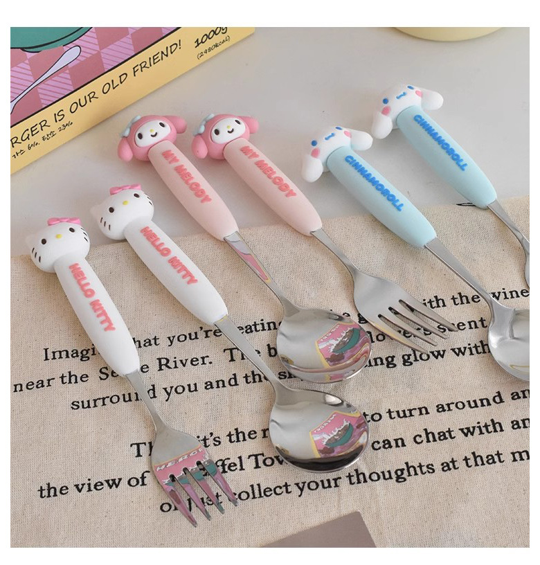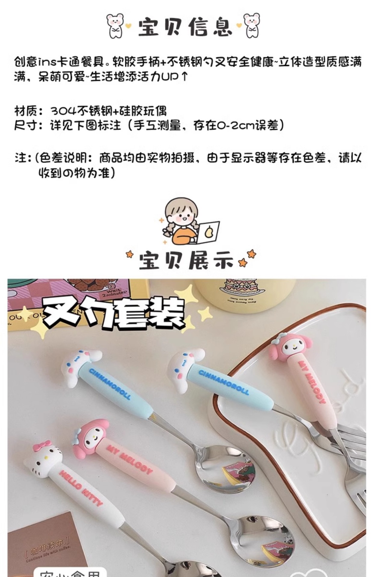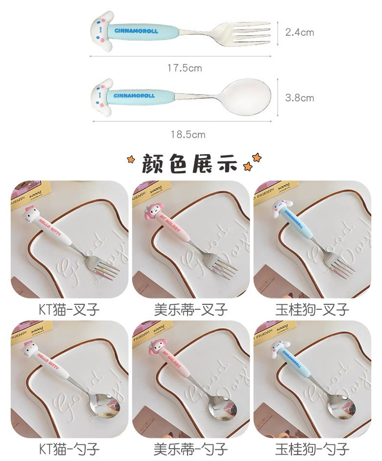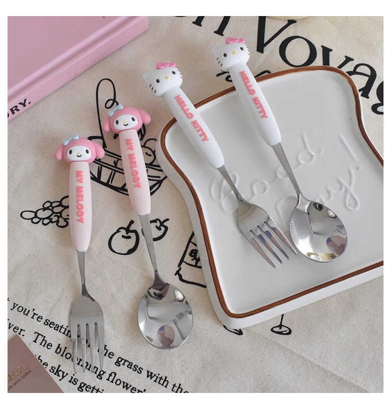 정품 산리오 창작 식기 헬로키티 스푼 쿠로미 304 스테인리스 스푼 포크 세트 어린이용스토어 가기