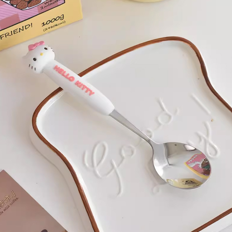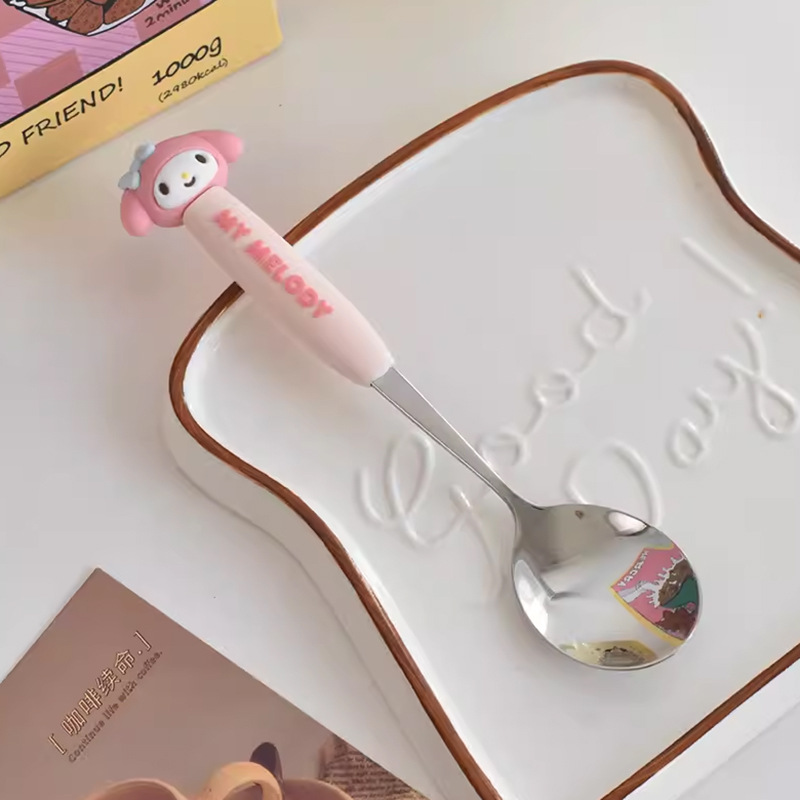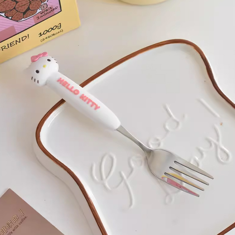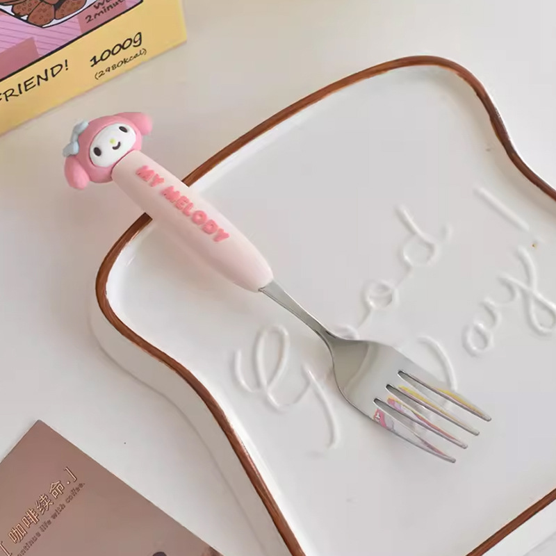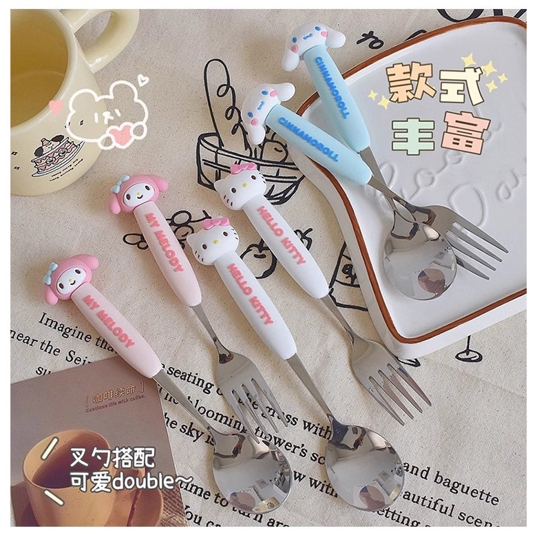 정품 산리오 창작 식기 헬로키티 스푼 쿠로미 304 스테인리스 스푼 포크 세트 어린이용스토어 가기