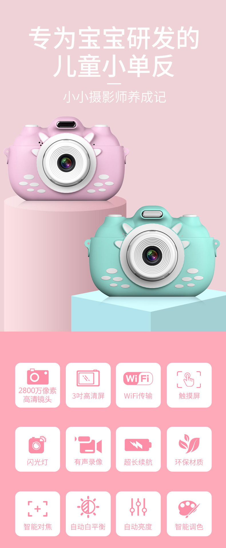 A5 터치 스크린 어린이 인쇄 카메라, 카메라, 카메라, 만화 스마트 열 인쇄 디지털 카메라, 국경스토어 가기
