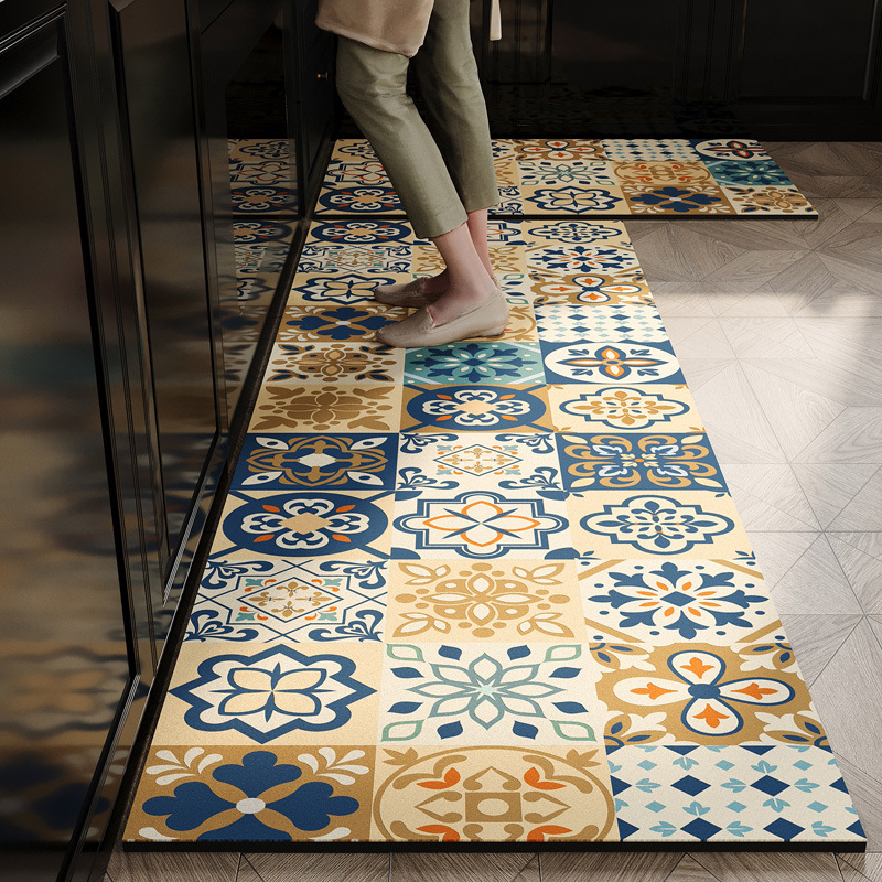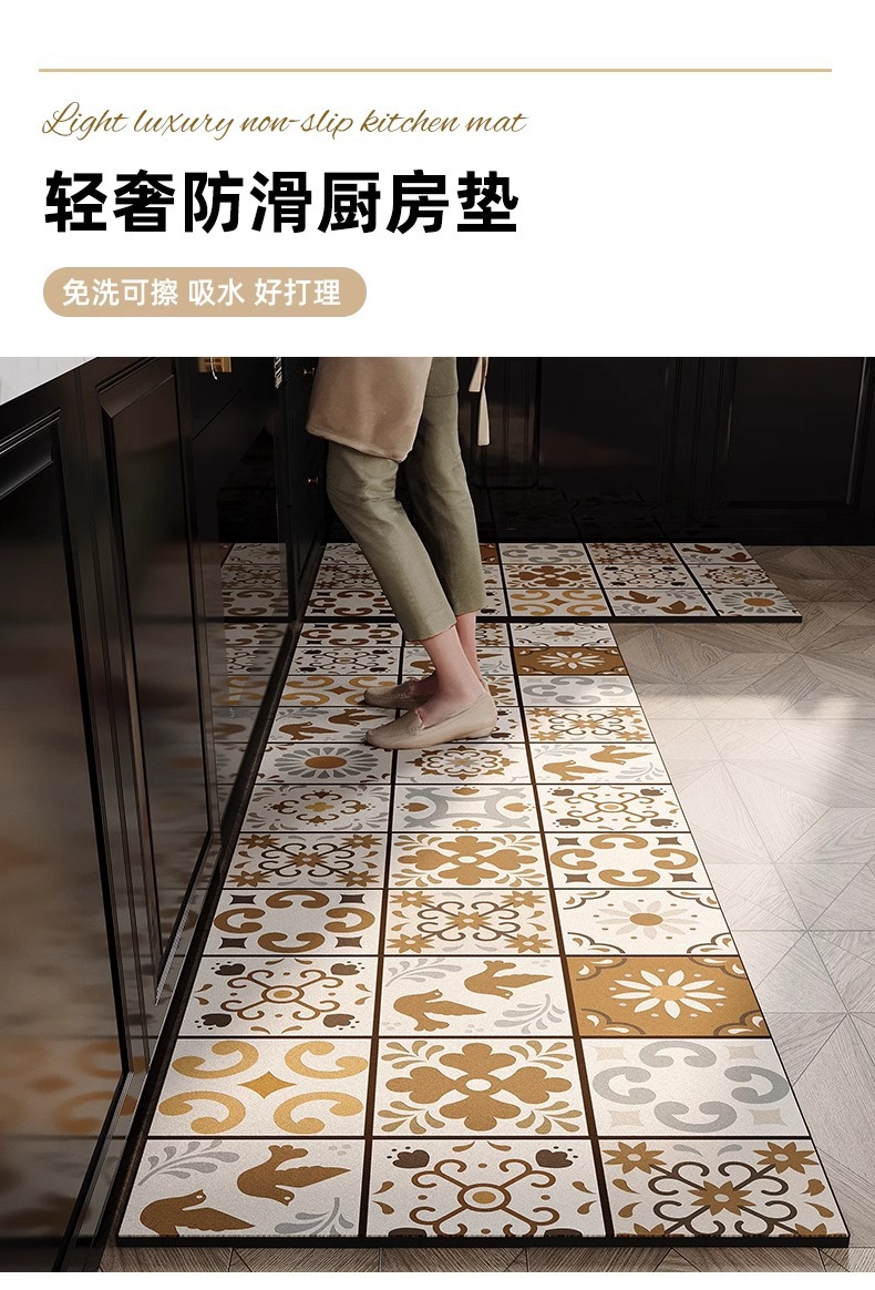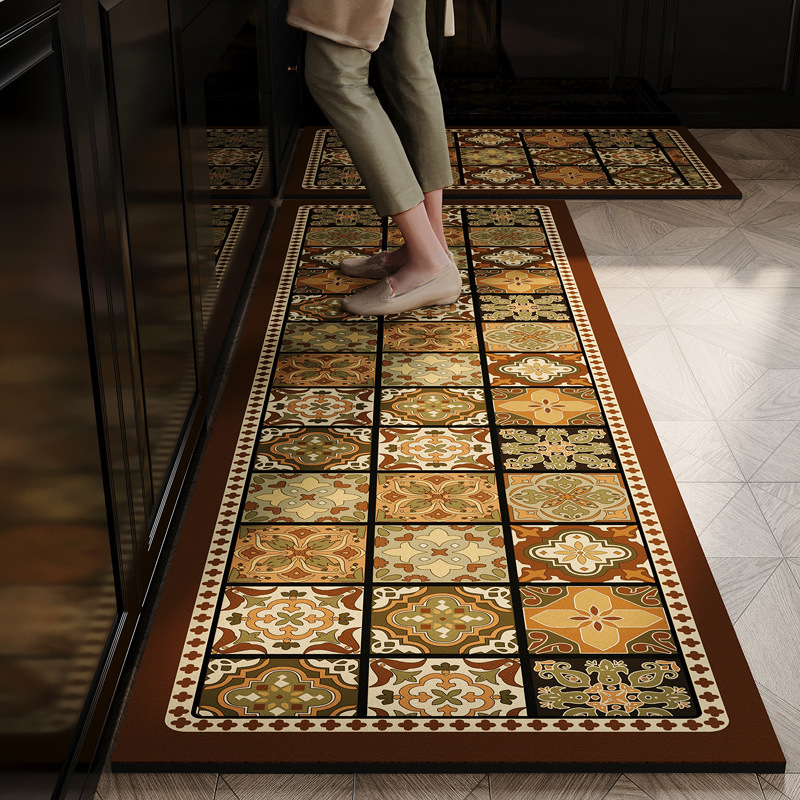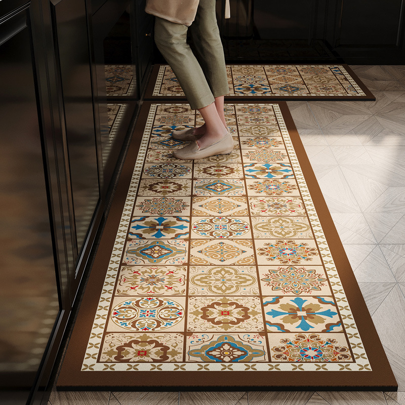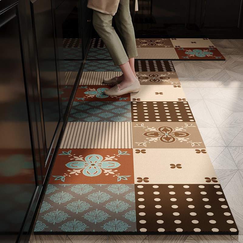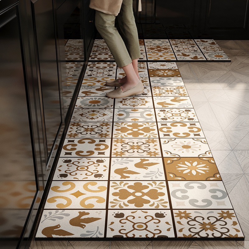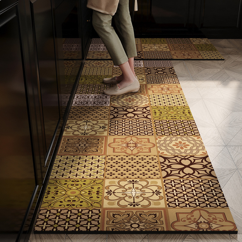크로스보더 레트로 주방 바닥 매트, 미끄럼 방지, 기름 방지, 닦아낼 수 있고 세탁이 필요 없는 흡수성 카펫 발매트, 특수 고급 PVC 매트