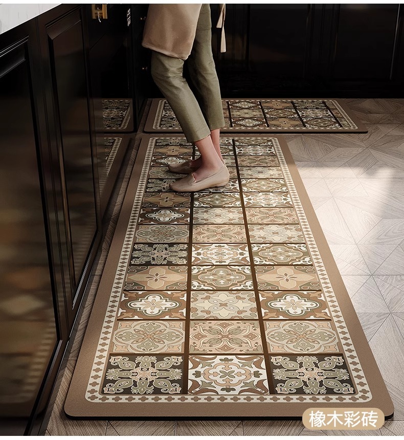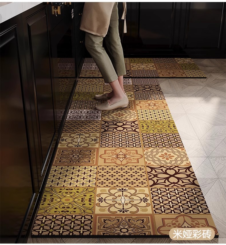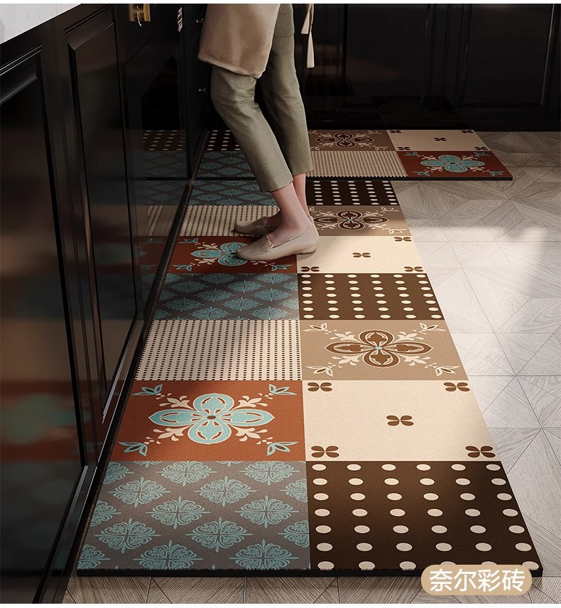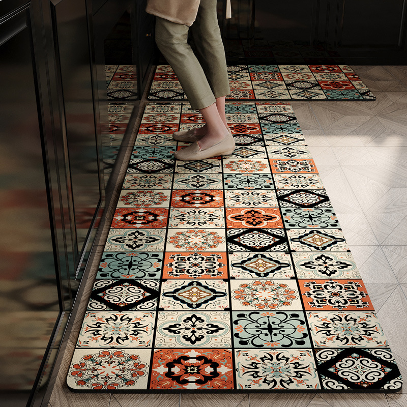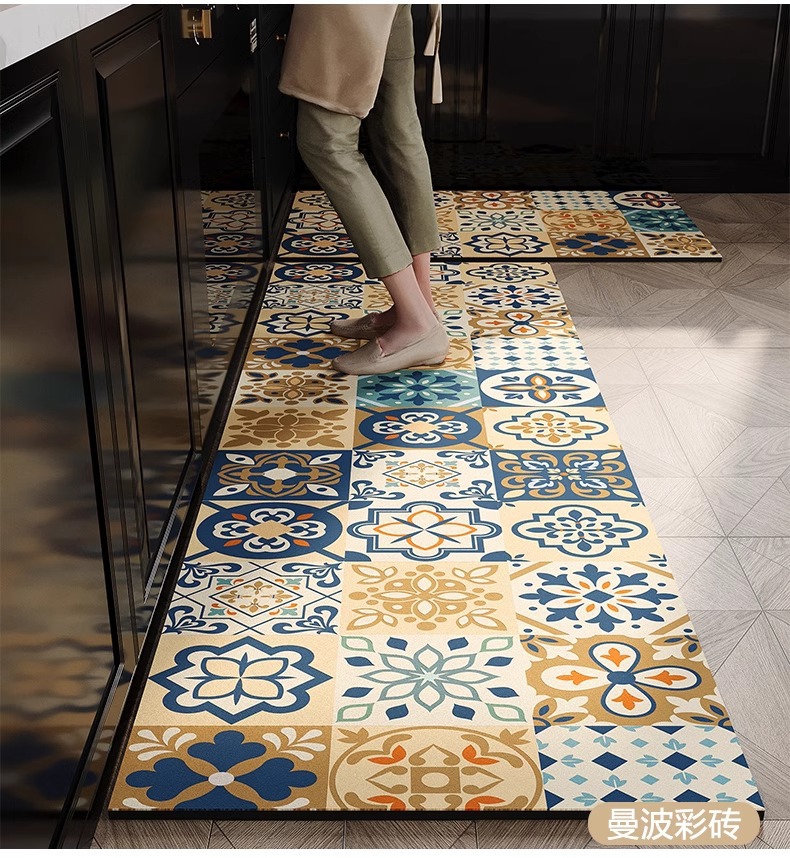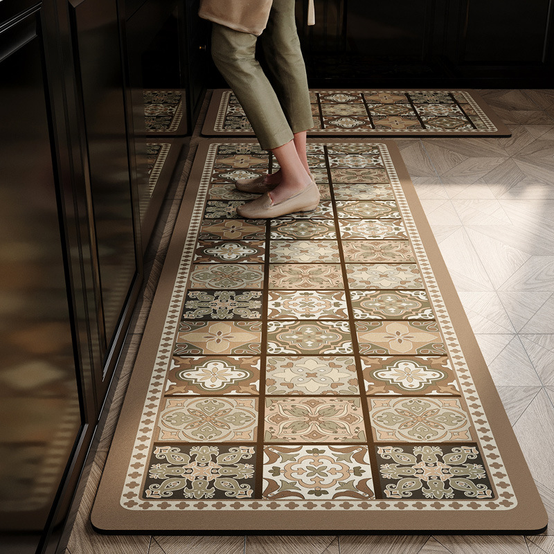 크로스보더 레트로 주방 바닥 매트, 미끄럼 방지, 기름 방지, 닦아낼 수 있고 세탁이 필요 없는 흡수성 카펫 발매트, 특수 고급 PVC 매트