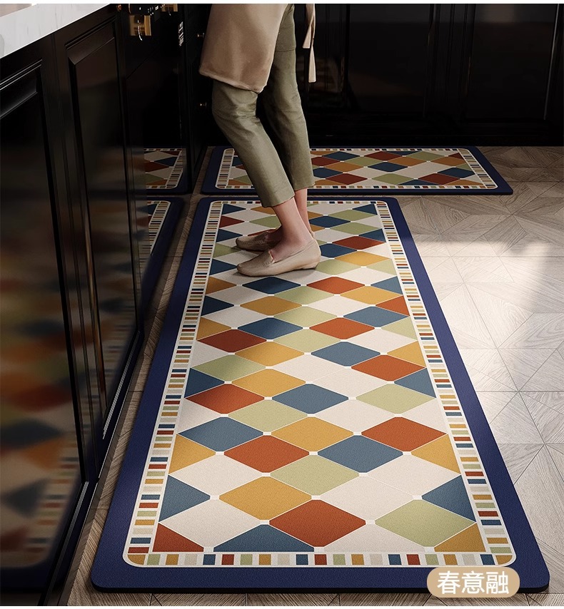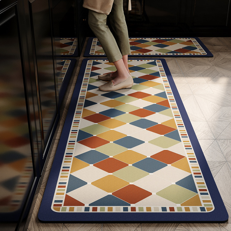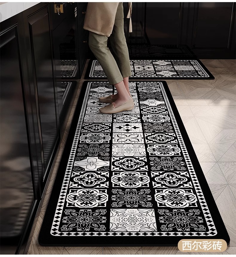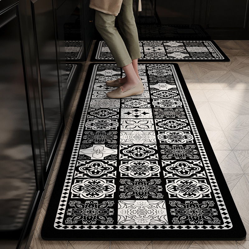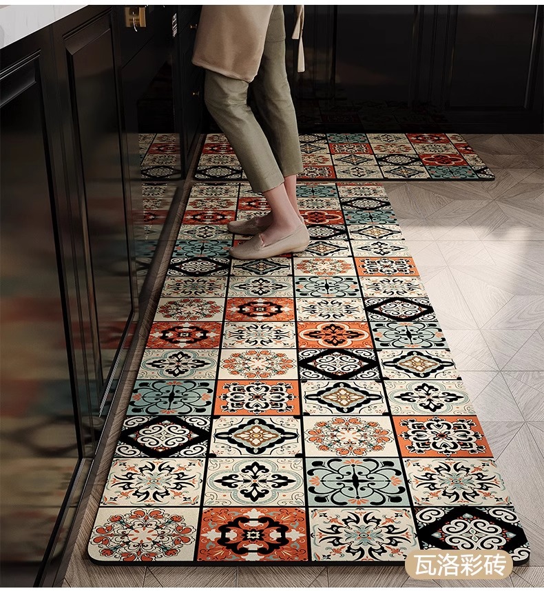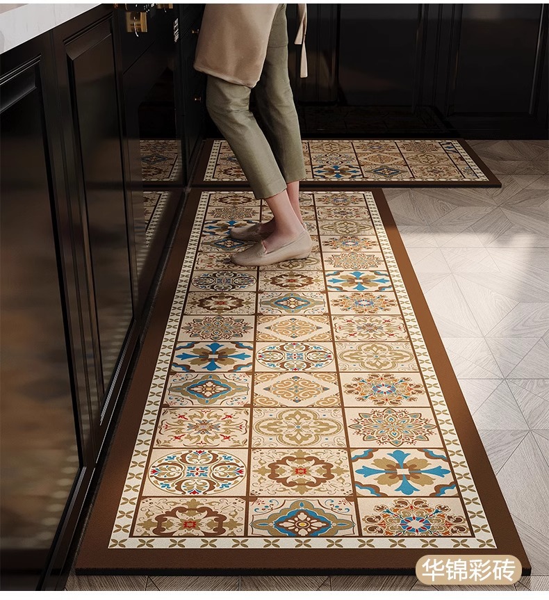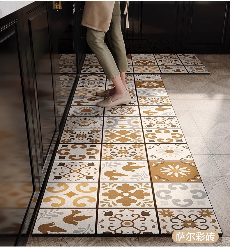 크로스보더 레트로 주방 바닥 매트, 미끄럼 방지, 기름 방지, 닦아낼 수 있고 세탁이 필요 없는 흡수성 카펫 발매트, 특수 고급 PVC 매트