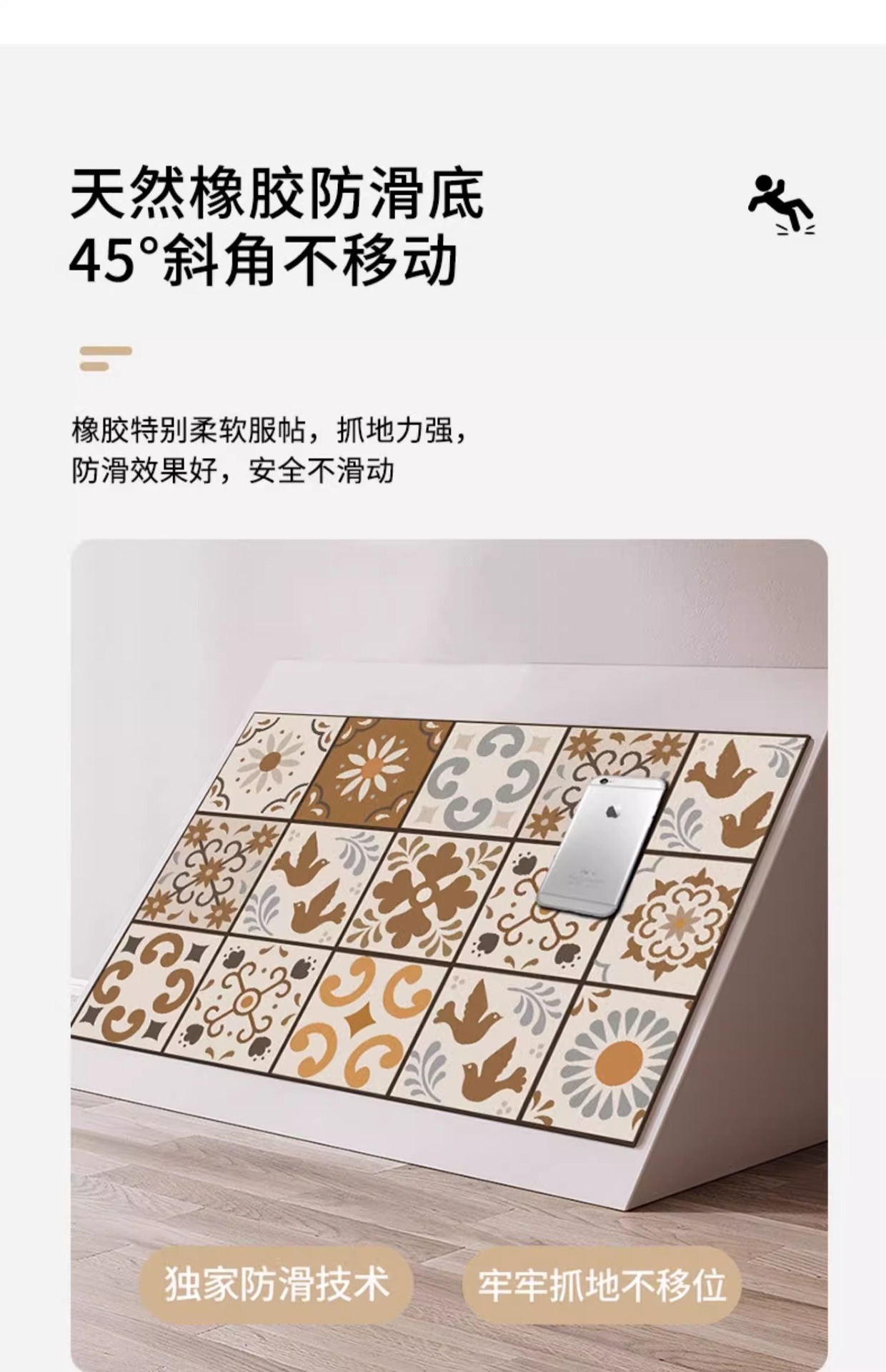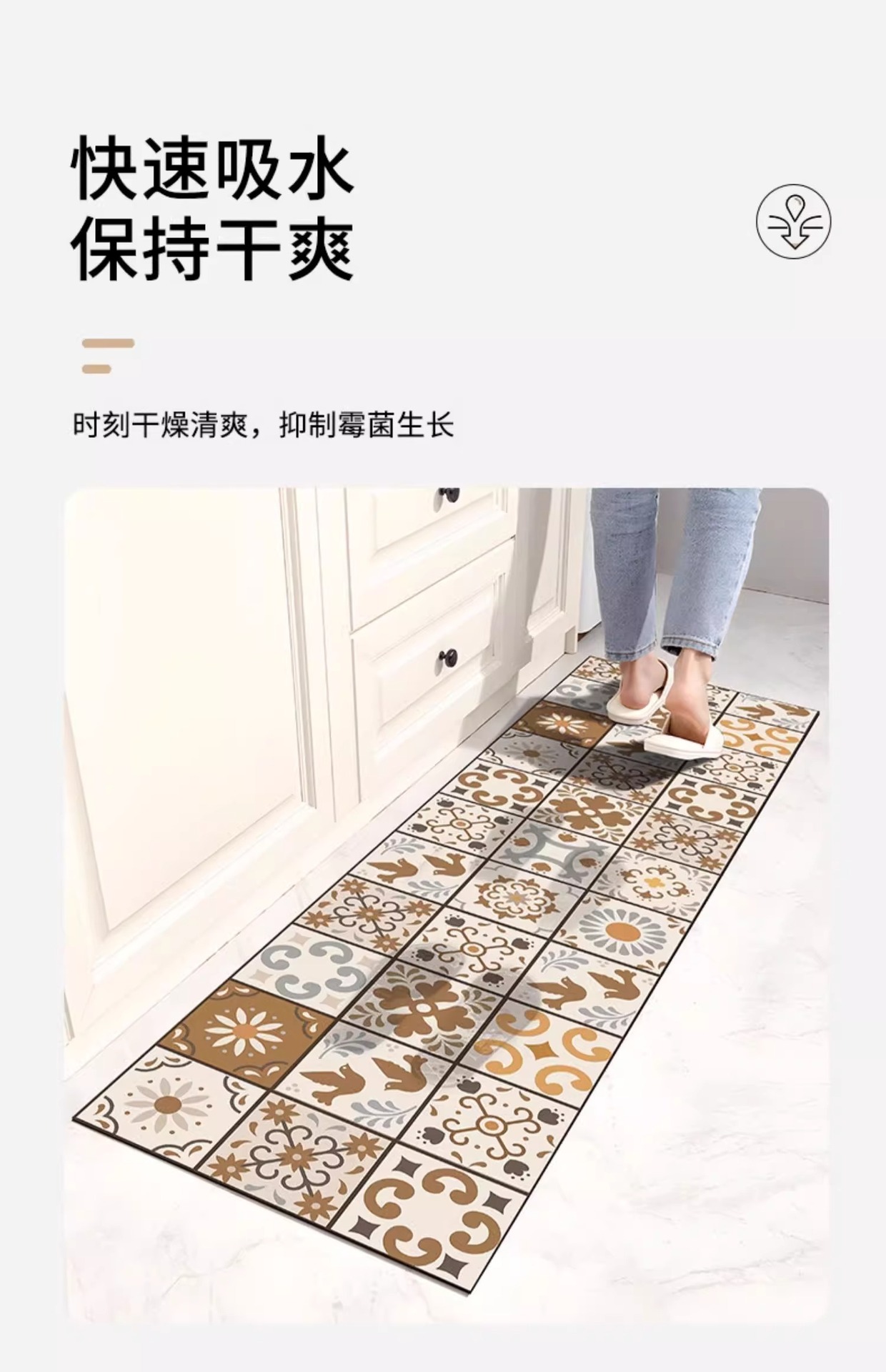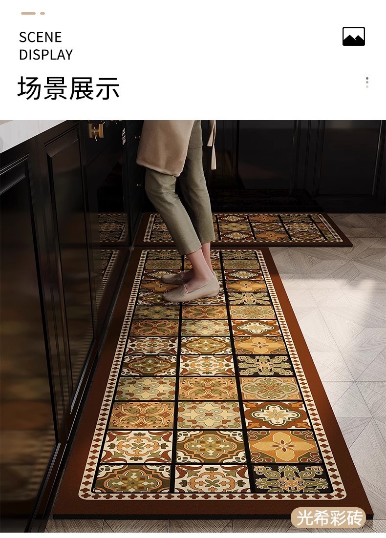 크로스보더 레트로 주방 바닥 매트, 미끄럼 방지, 기름 방지, 닦아낼 수 있고 세탁이 필요 없는 흡수성 카펫 발매트, 특수 고급 PVC 매트스토어 가기