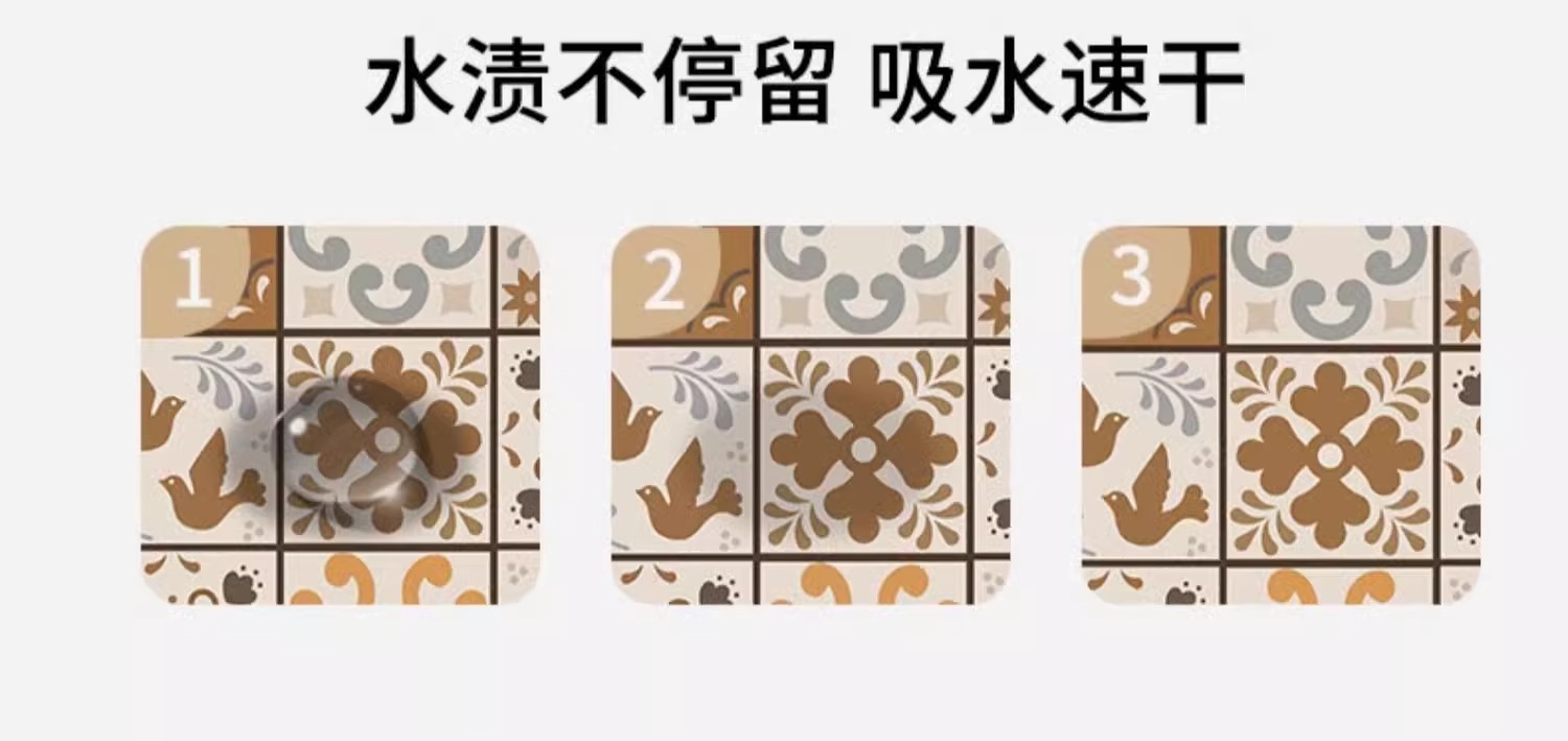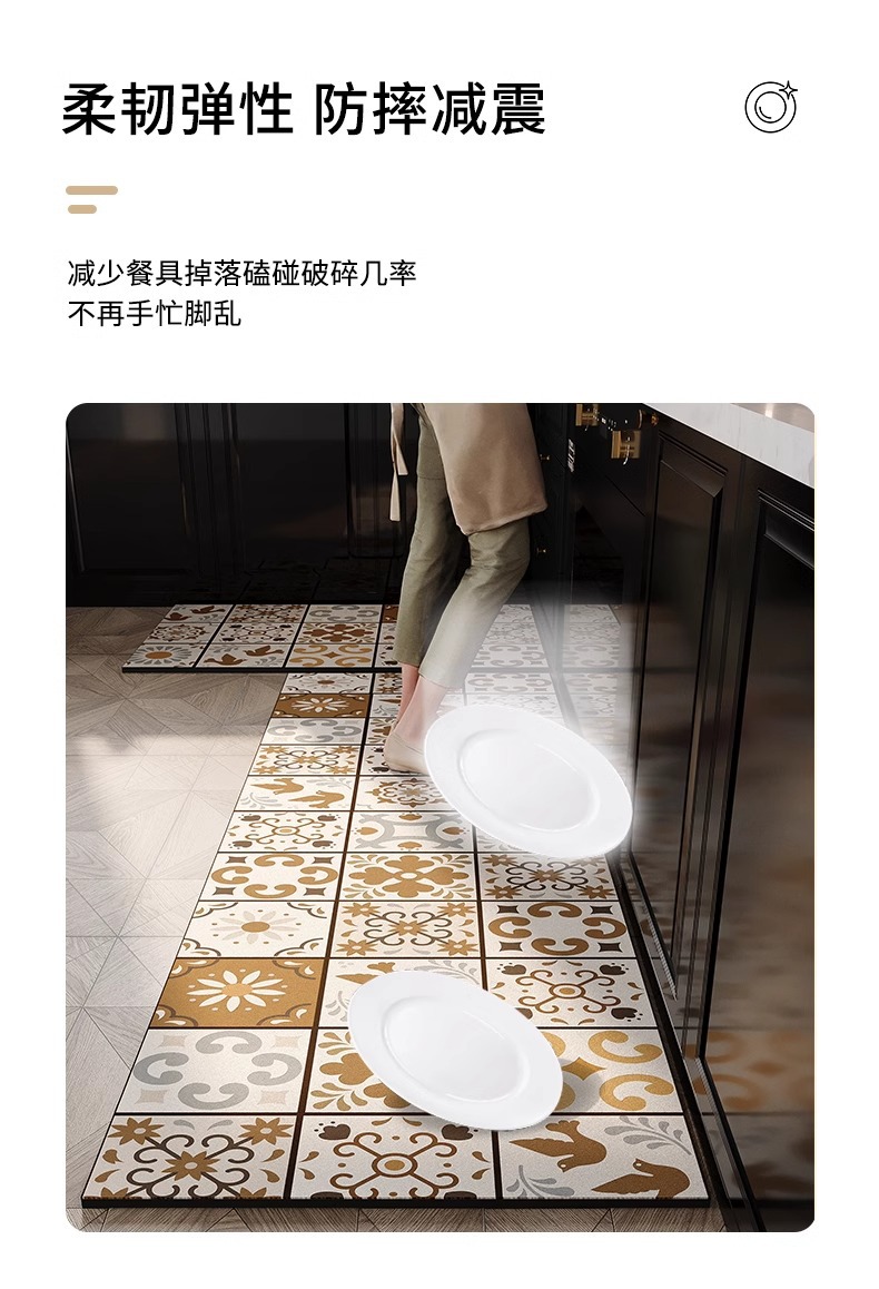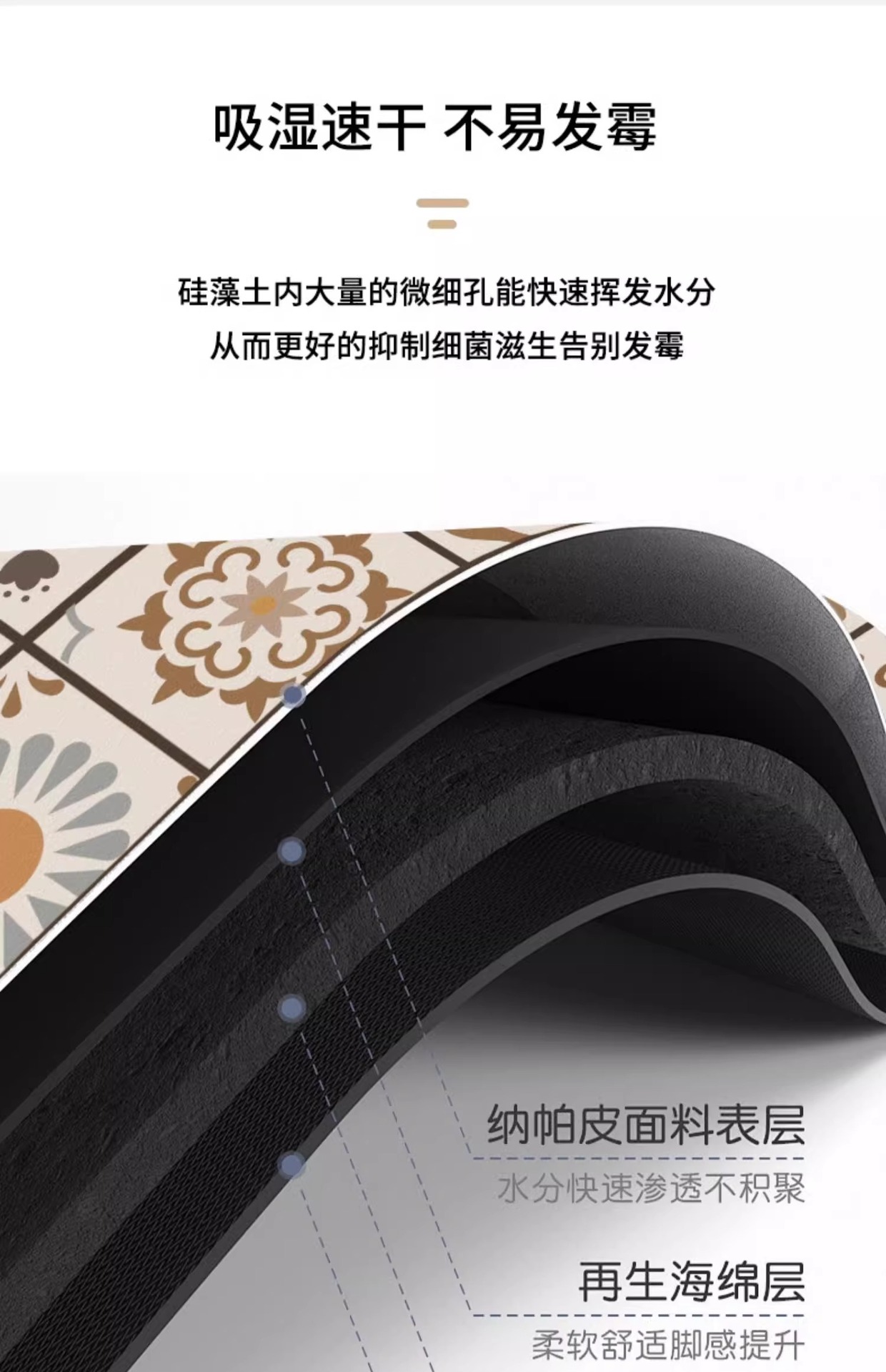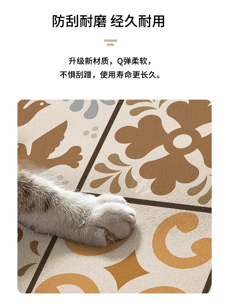 크로스보더 레트로 주방 바닥 매트, 미끄럼 방지, 기름 방지, 닦아낼 수 있고 세탁이 필요 없는 흡수성 카펫 발매트, 특수 고급 PVC 매트스토어 가기