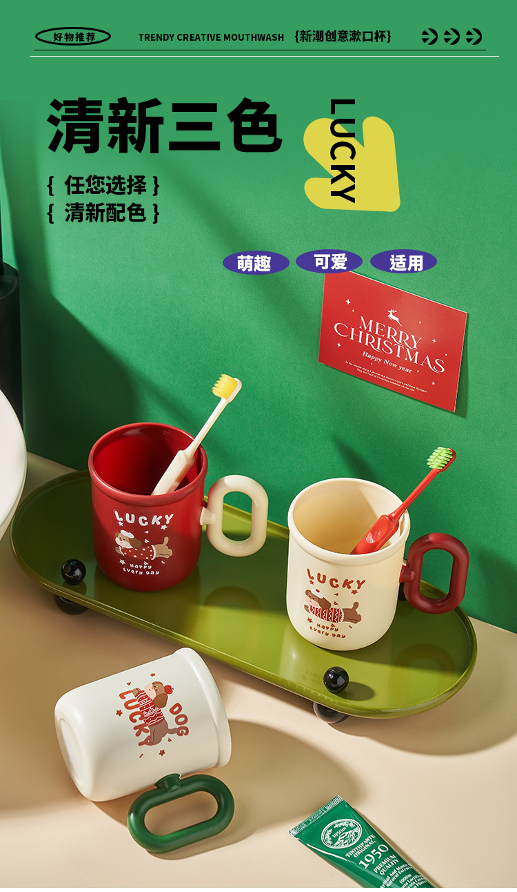 도매 축제용 빨간 강아지 모양 가정용 양치컵, 큰 손잡이가 있는 세면컵, 아기 양치컵, 귀여운 세면컵스토어 가기