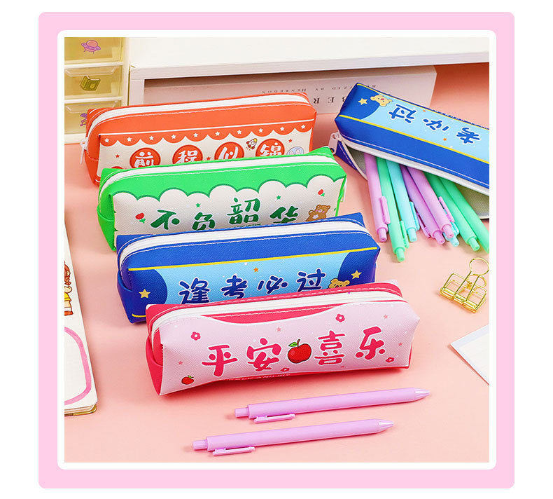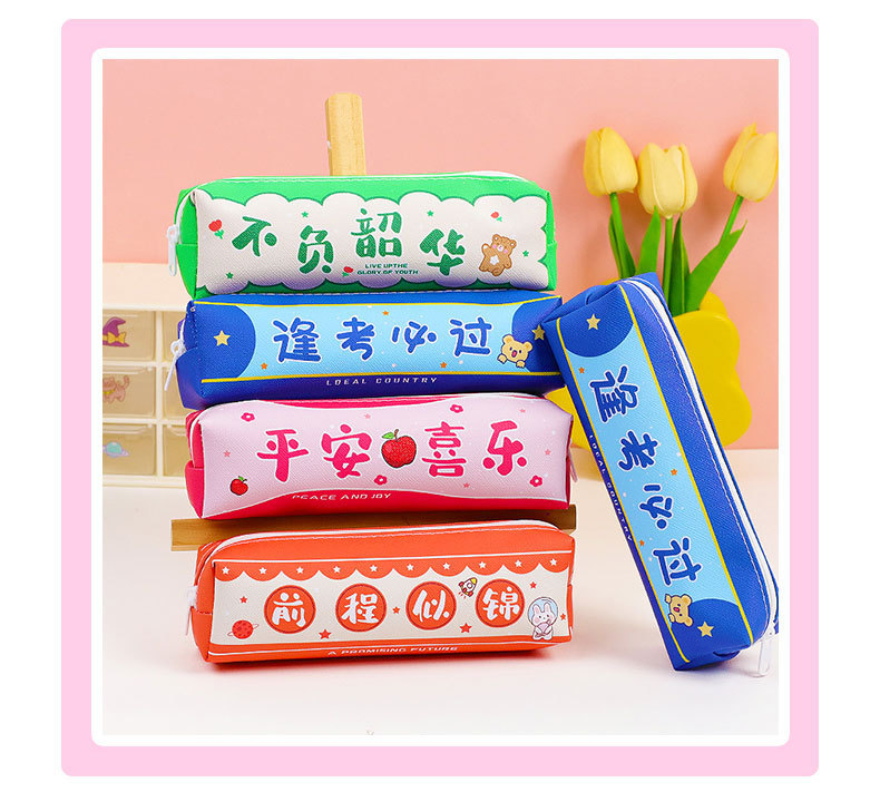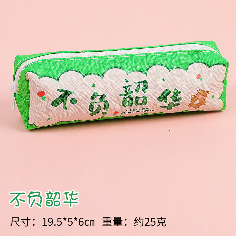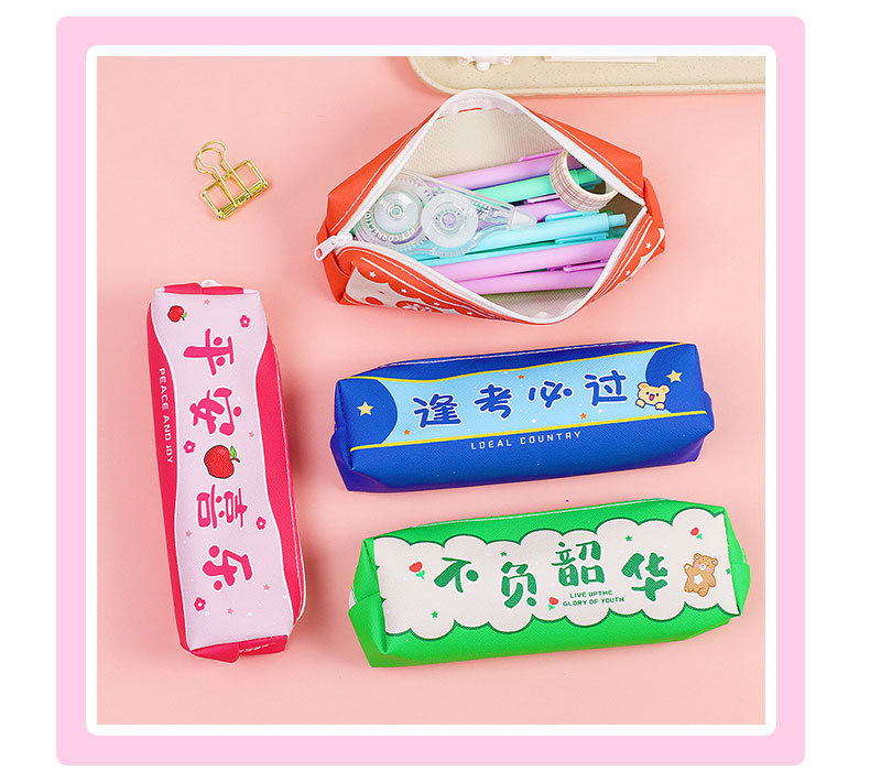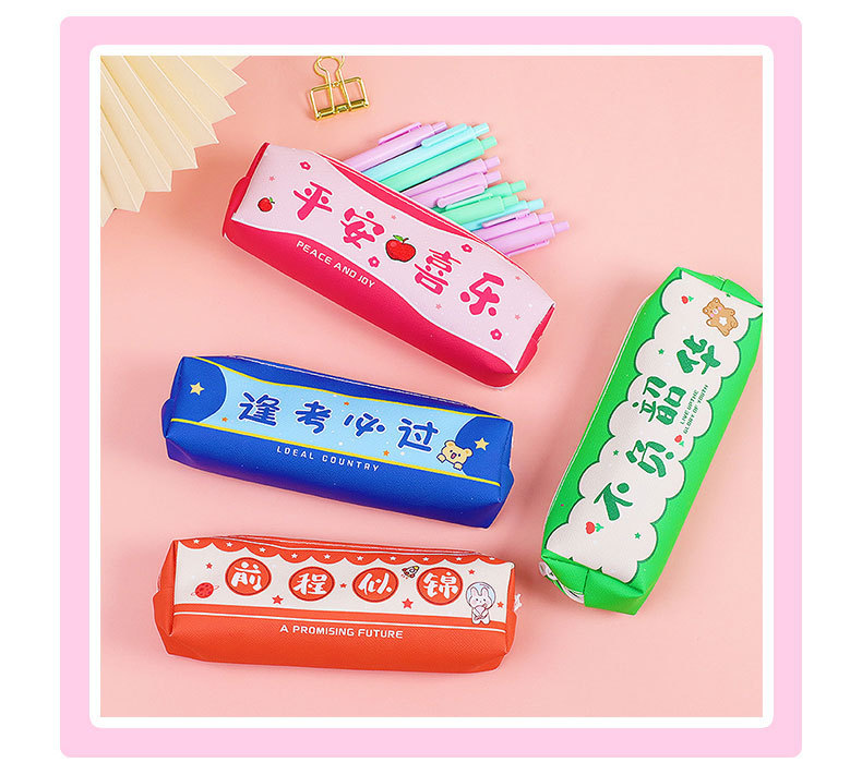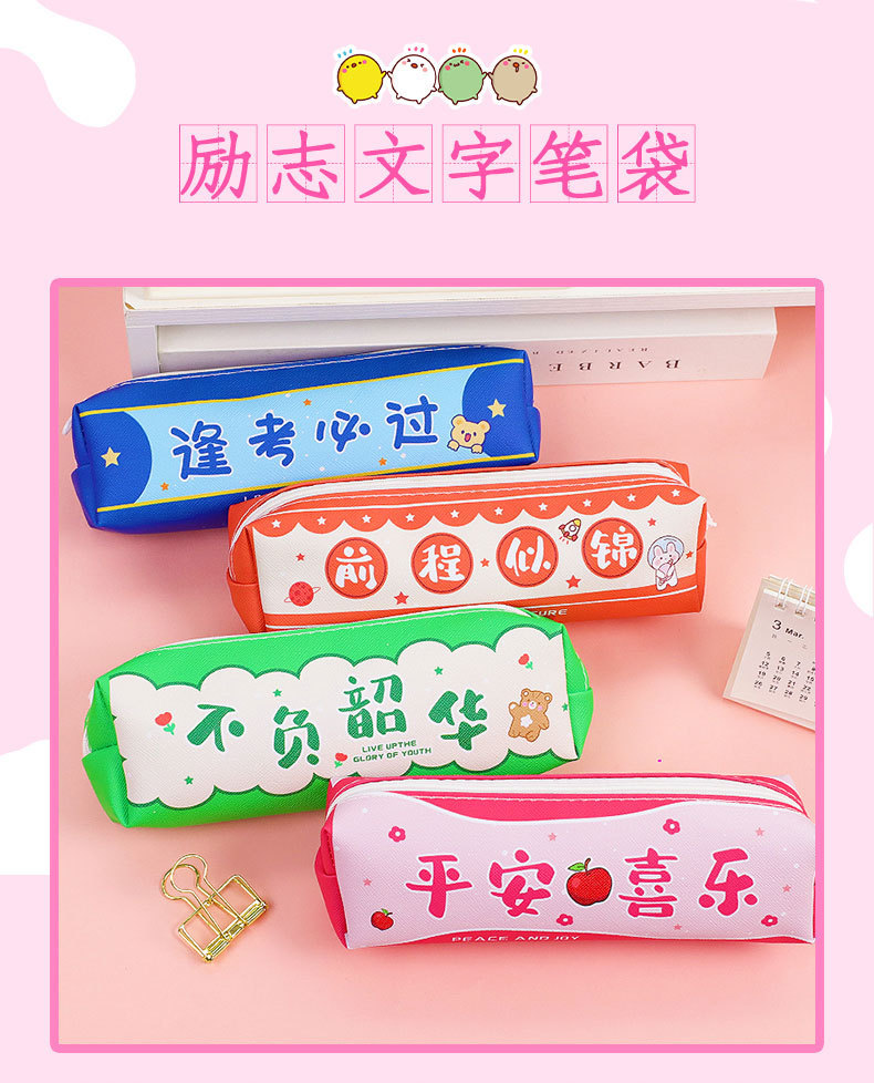 창조적 인 감동적인 텍스트 연필 가방 귀여운 PU 연필 가방 만화 높은 가치 학생 대용량 저장 문구 가방