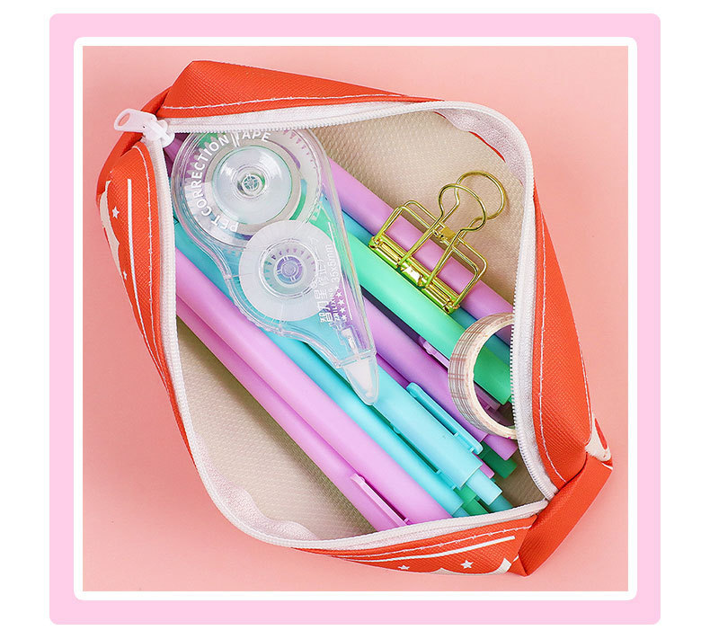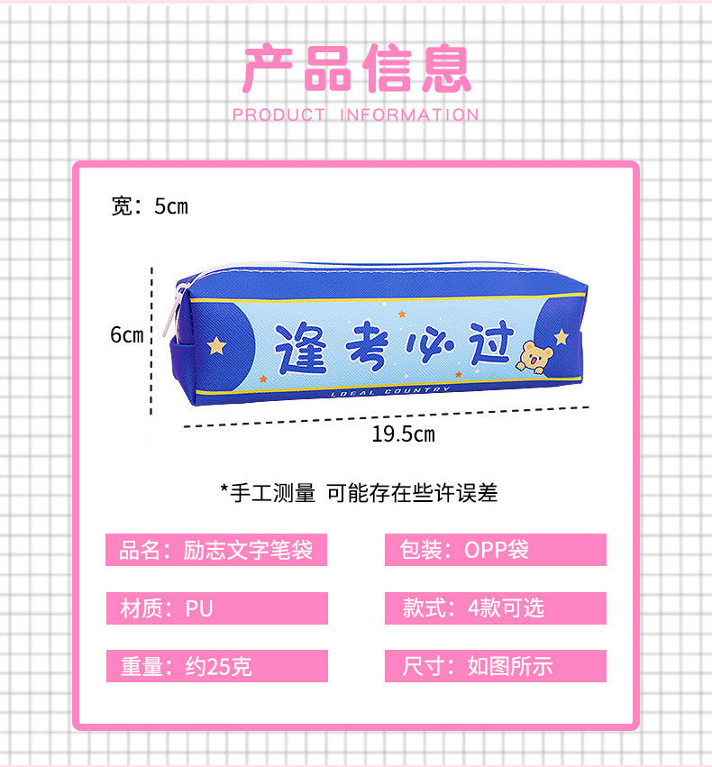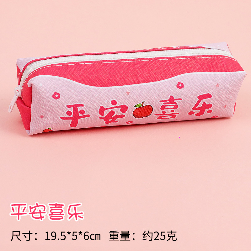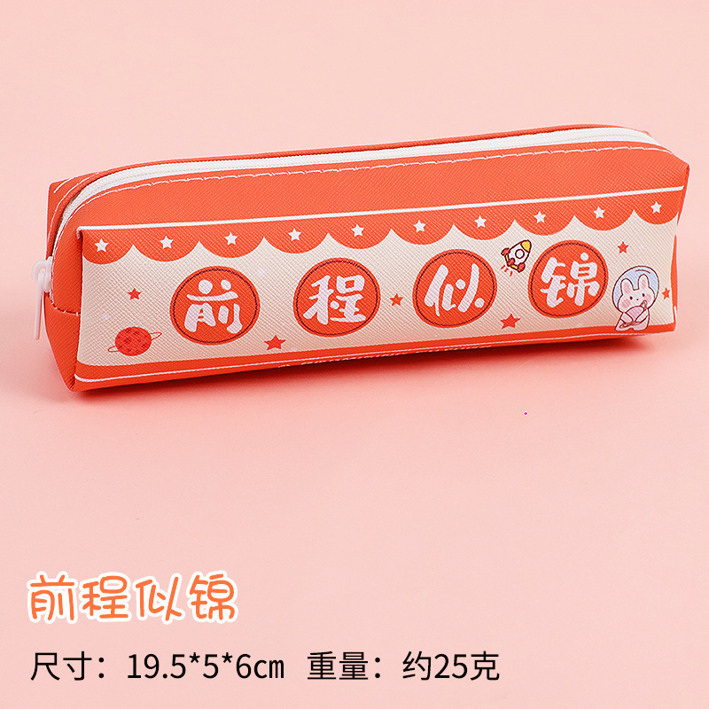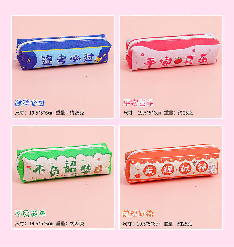 창조적 인 감동적인 텍스트 연필 가방 귀여운 PU 연필 가방 만화 높은 가치 학생 대용량 저장 문구 가방