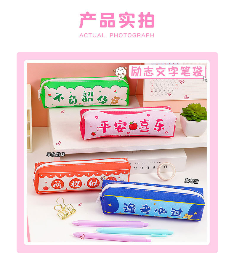 창조적 인 감동적인 텍스트 연필 가방 귀여운 PU 연필 가방 만화 높은 가치 학생 대용량 저장 문구 가방스토어 가기