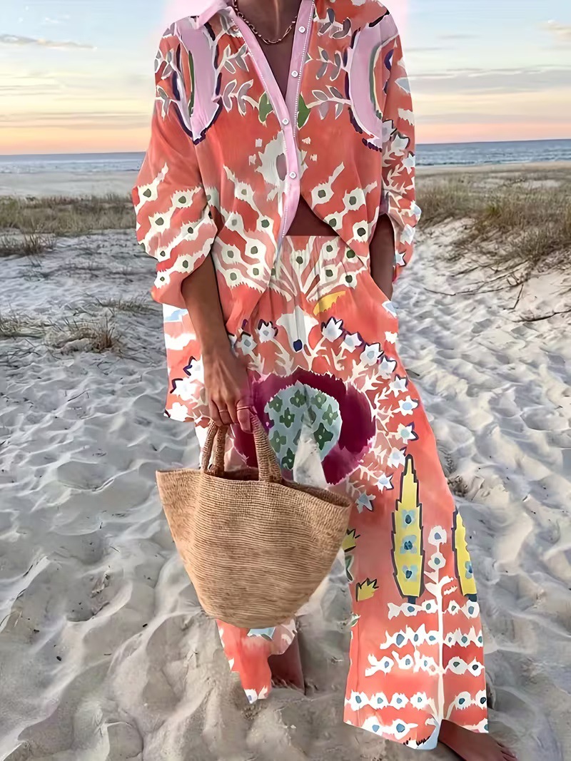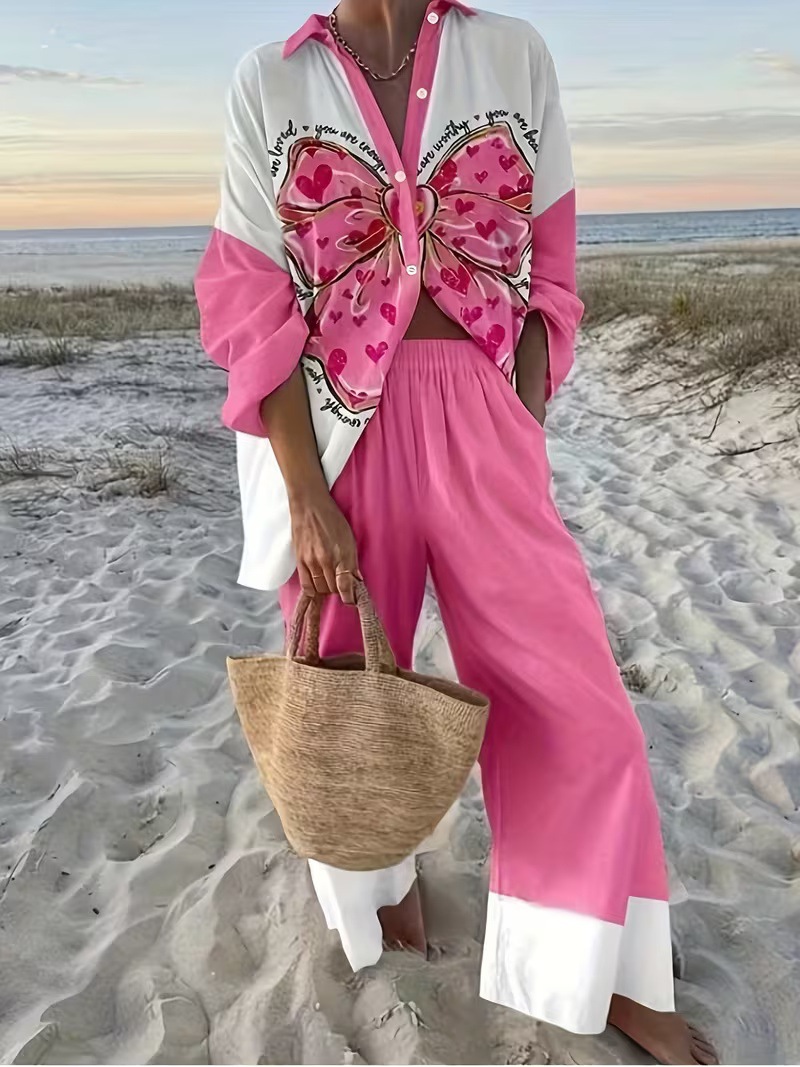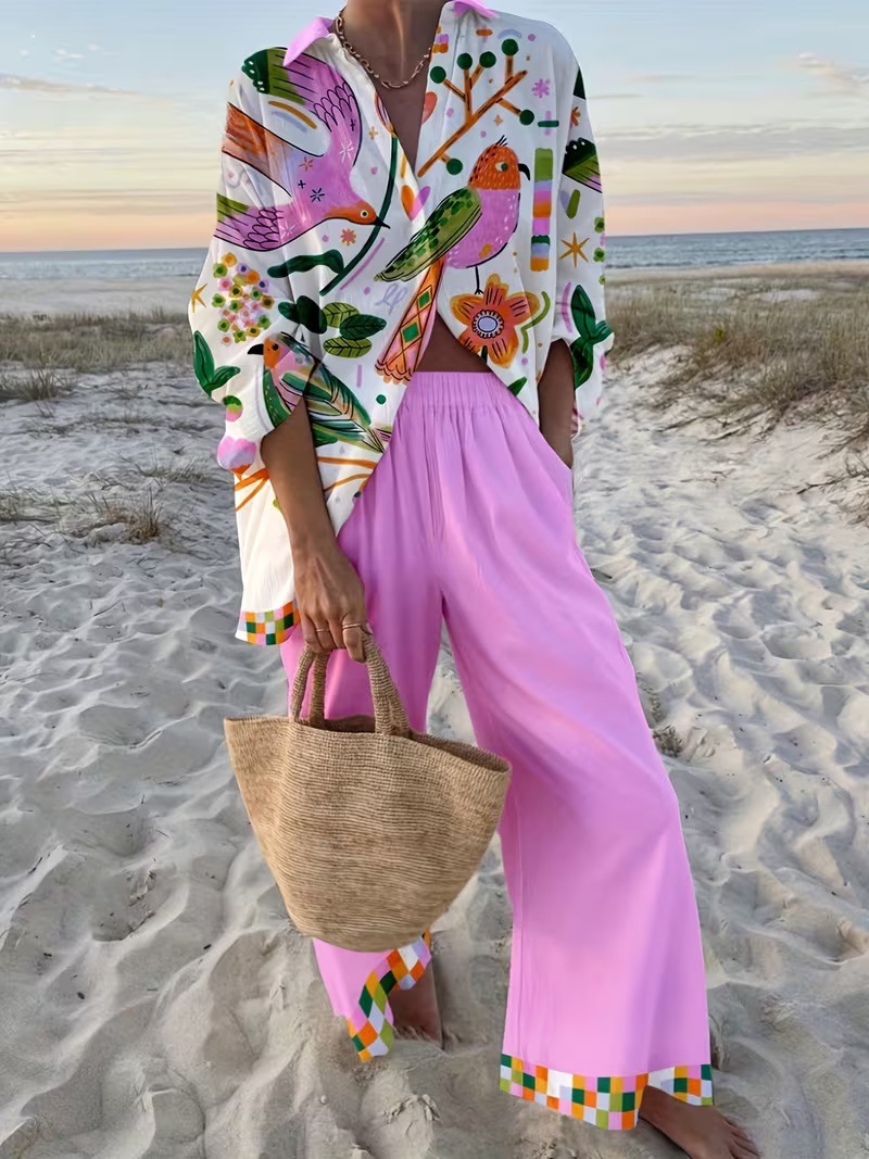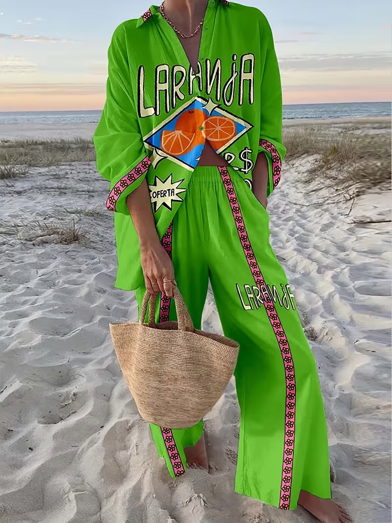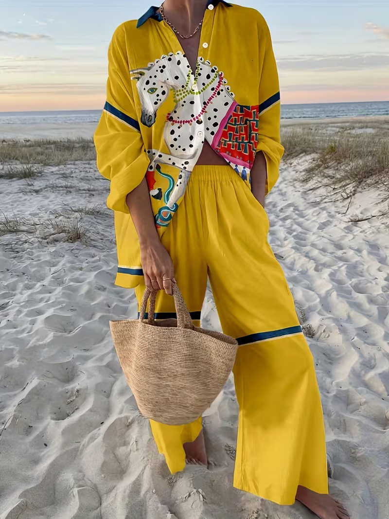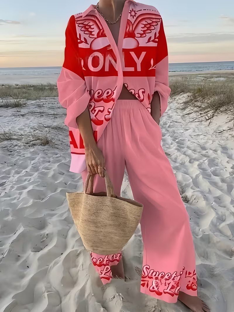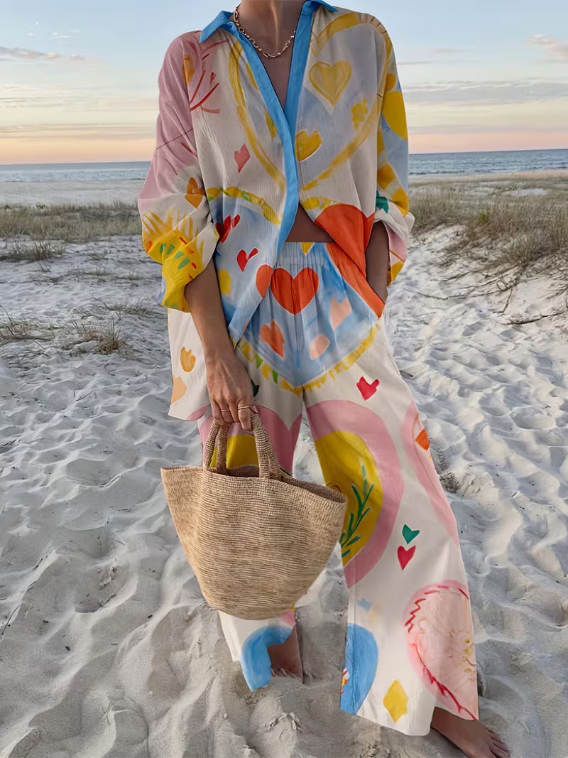 유럽과 미국의 새로운 창조적 인 물고기 패턴 레저 세트 느슨한 스포츠 넓은 다리 바지 해양 요소 레저 세트 POD