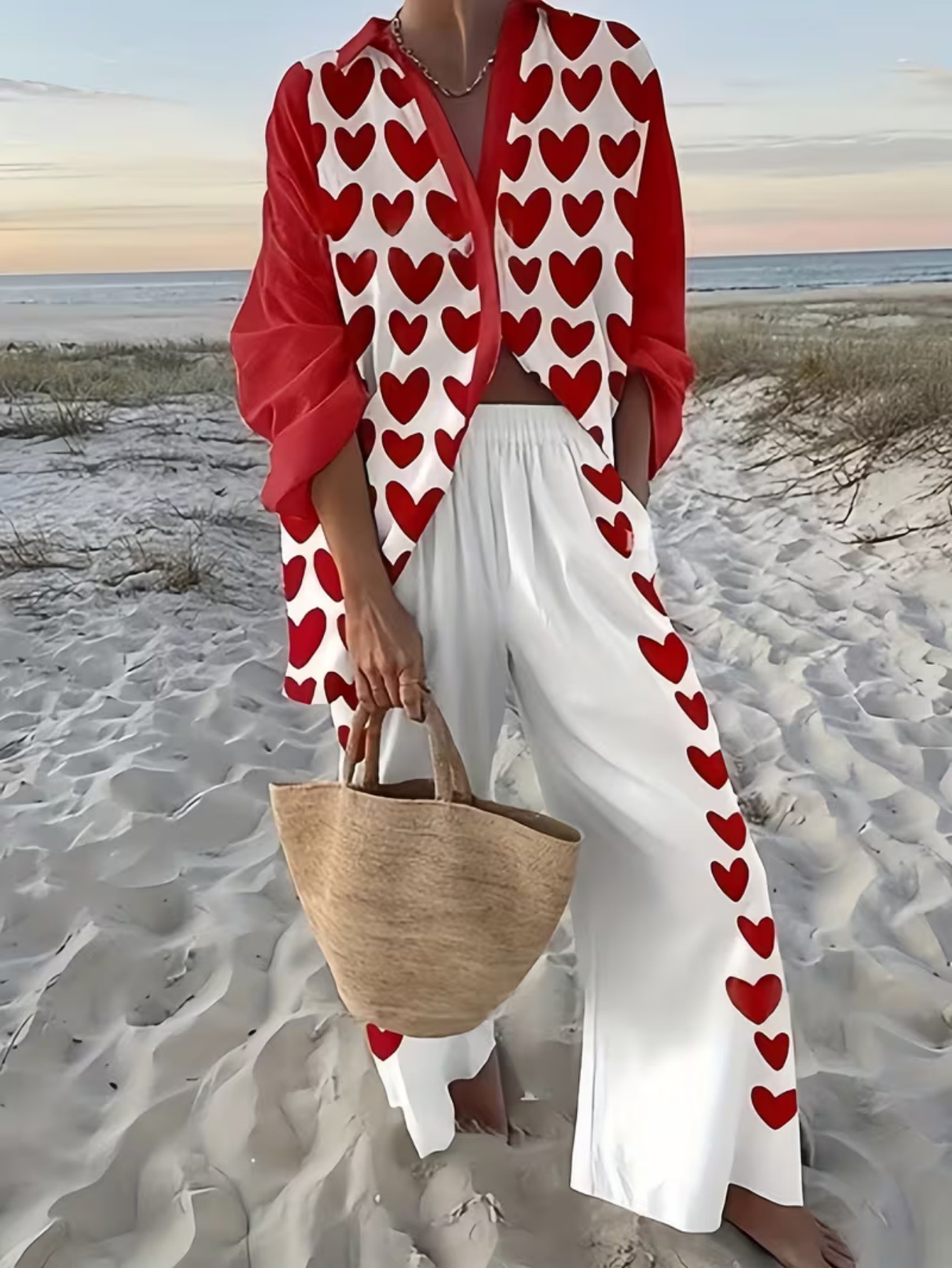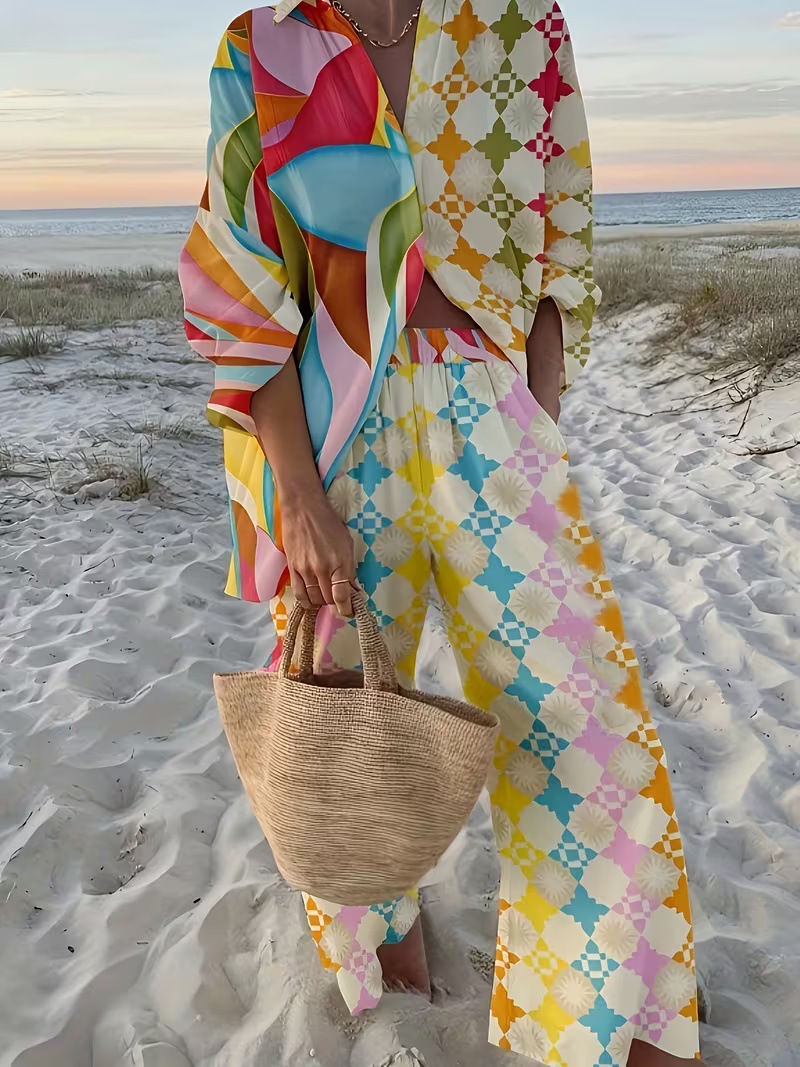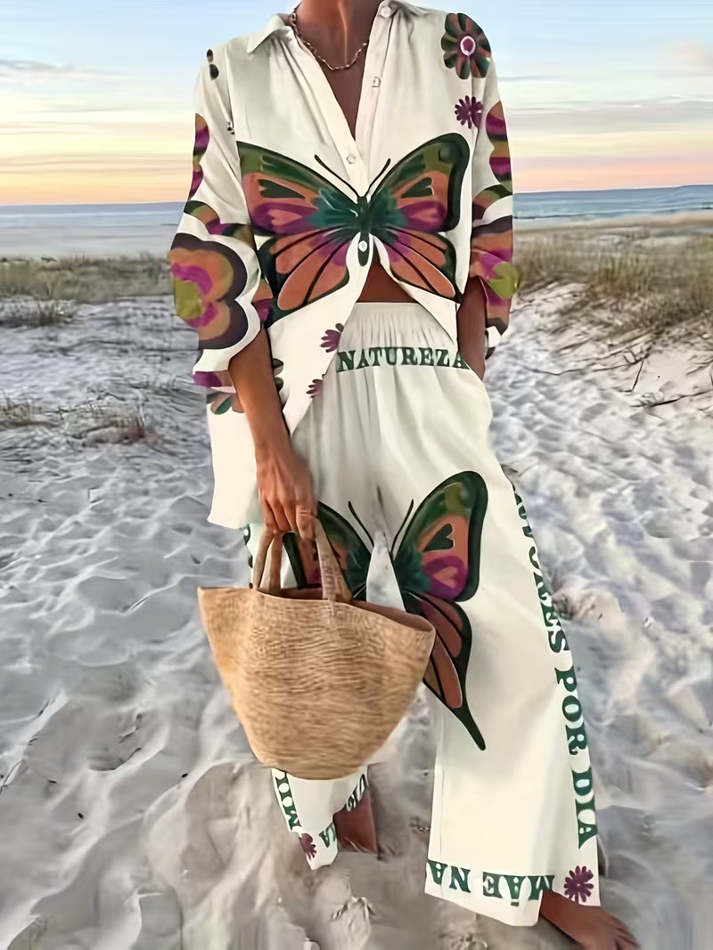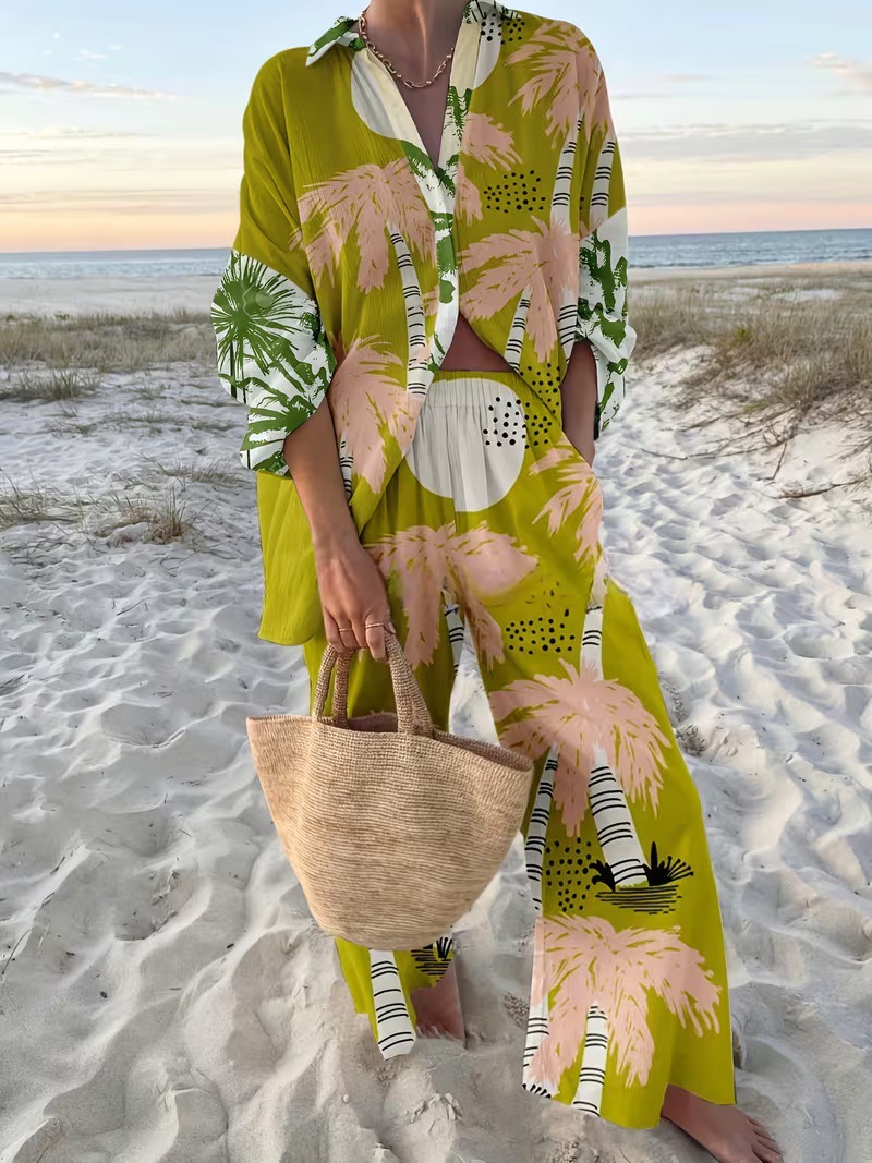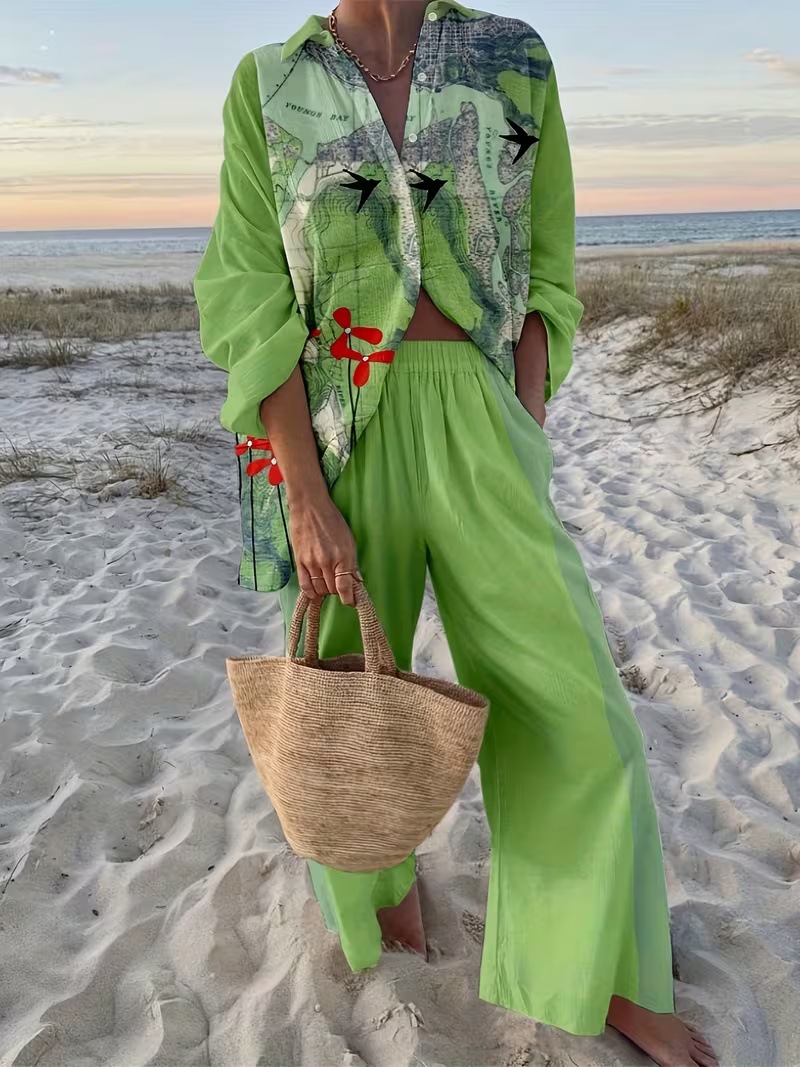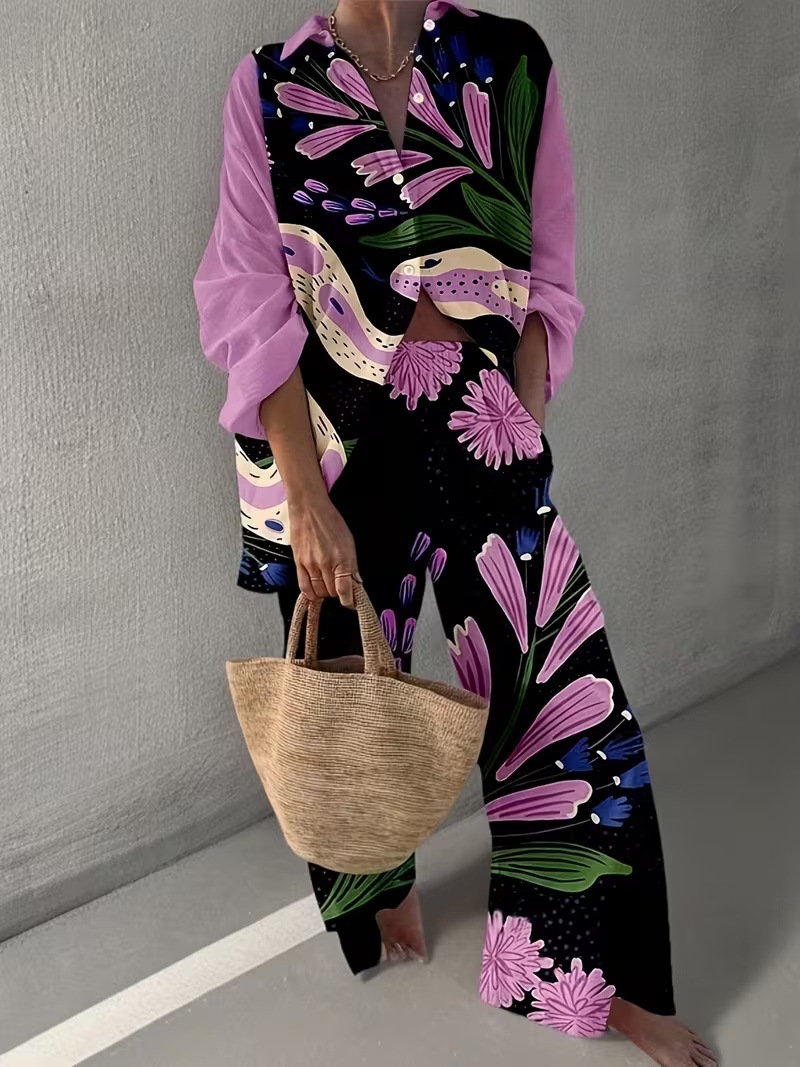 유럽과 미국의 새로운 창조적 인 물고기 패턴 레저 세트 느슨한 스포츠 넓은 다리 바지 해양 요소 레저 세트 POD