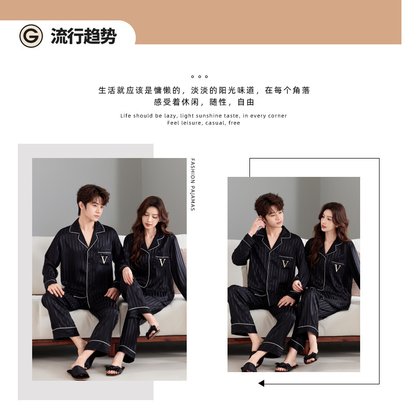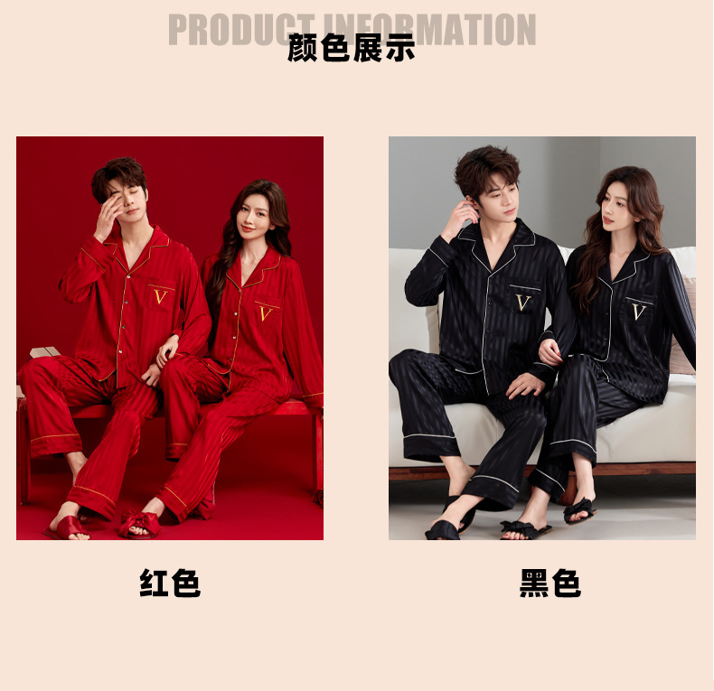 웨이지아 스트라이프 커플 잠옷 아이스 실크 레드 잠옷 남녀 신년 웨딩 홈 의류 세트 25 새로운스토어 가기