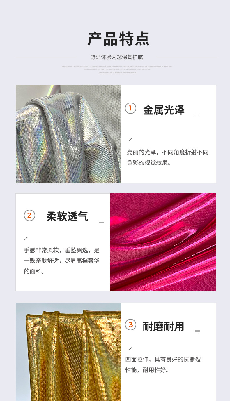 레이저 판타지 뜨거운 금박 천 스트레치 판타지 헝겊 공연 의상 댄스 의상 패션 장난감 핸드백 웨딩 장식 원단