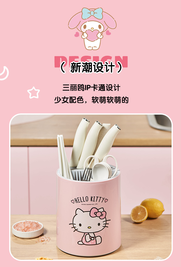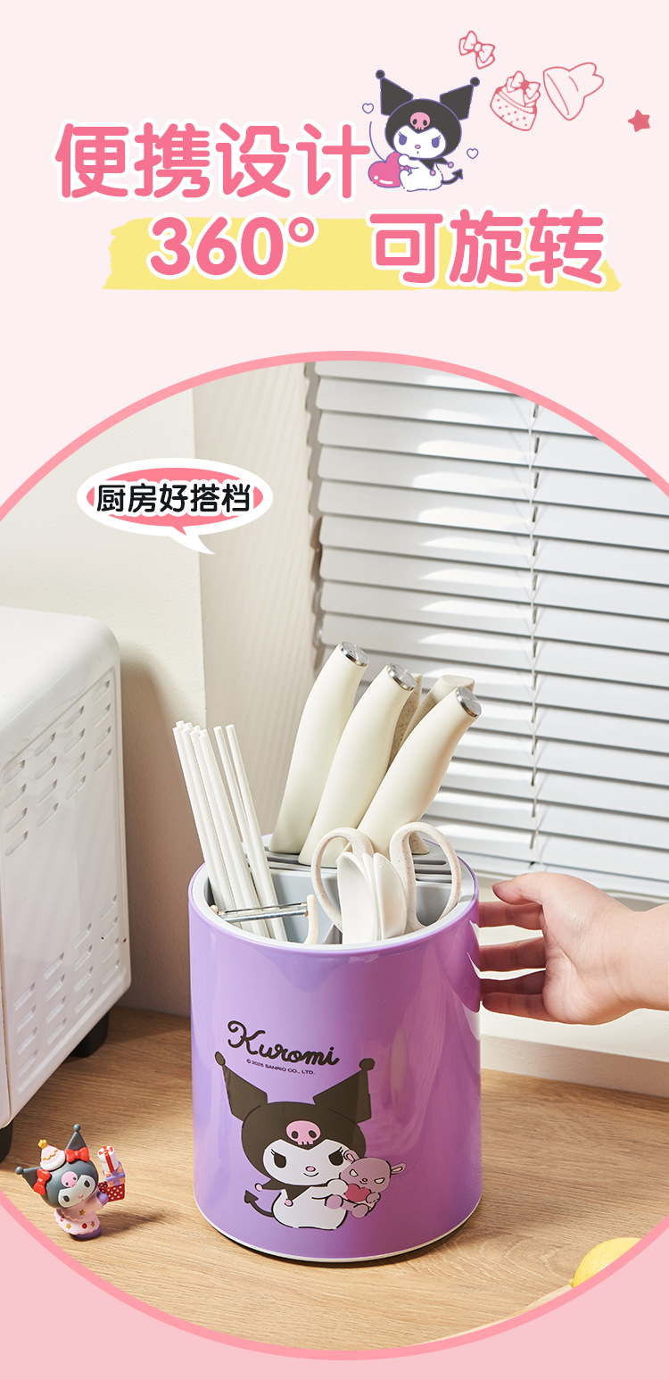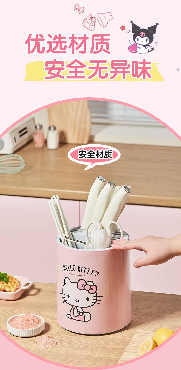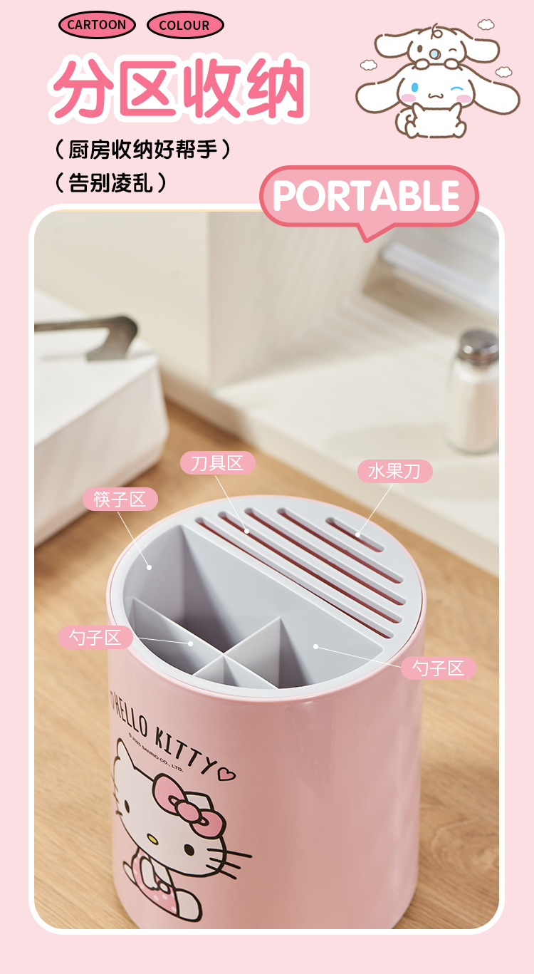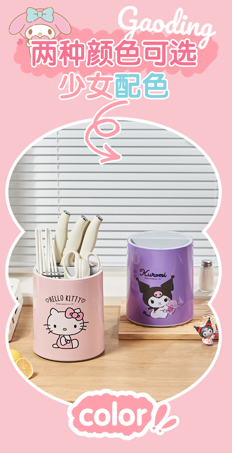산리오 가정용 칼 랙 스토리지 랙 만화 주방 데스크탑 스토리지 랙 다기능 통합 배수 나이프 랙