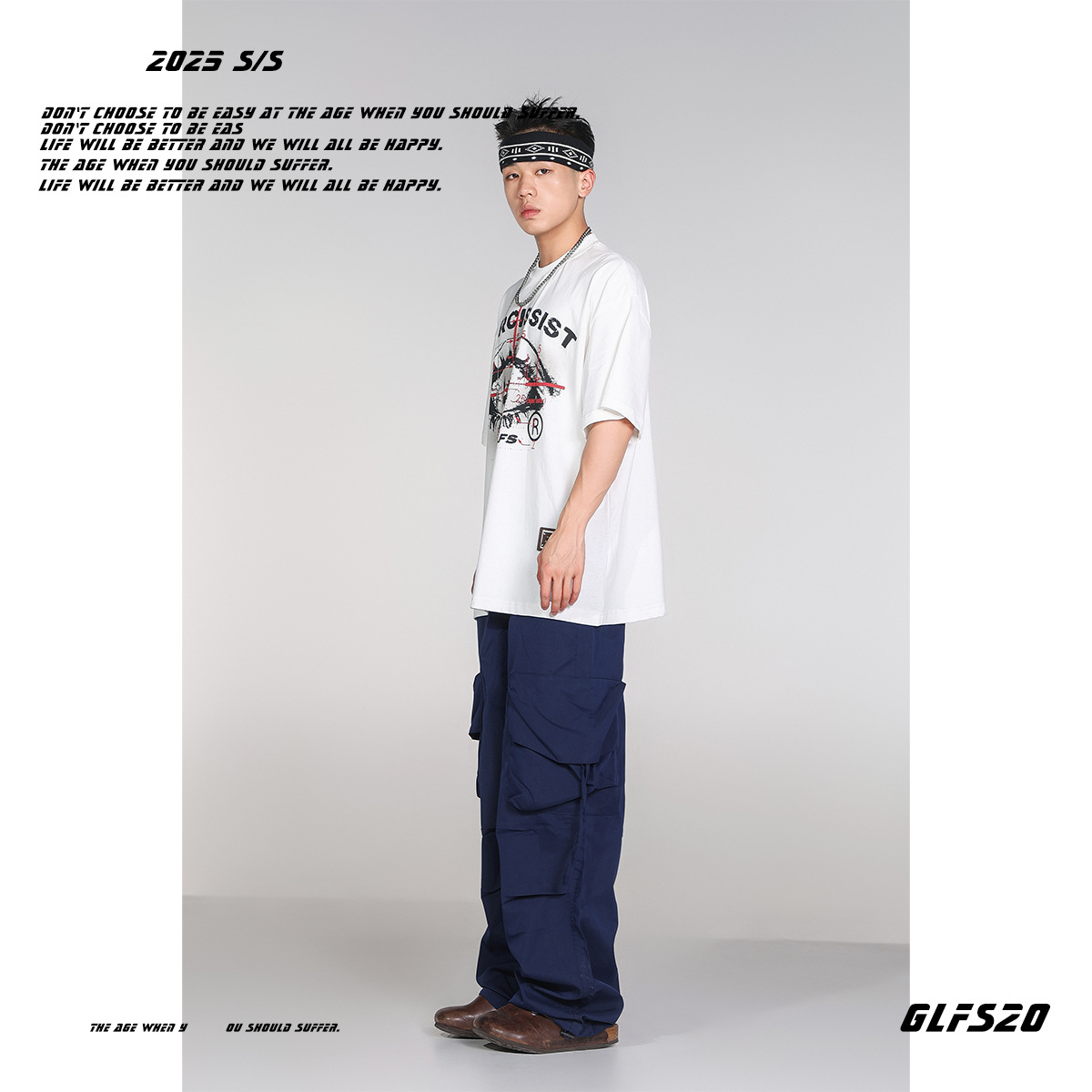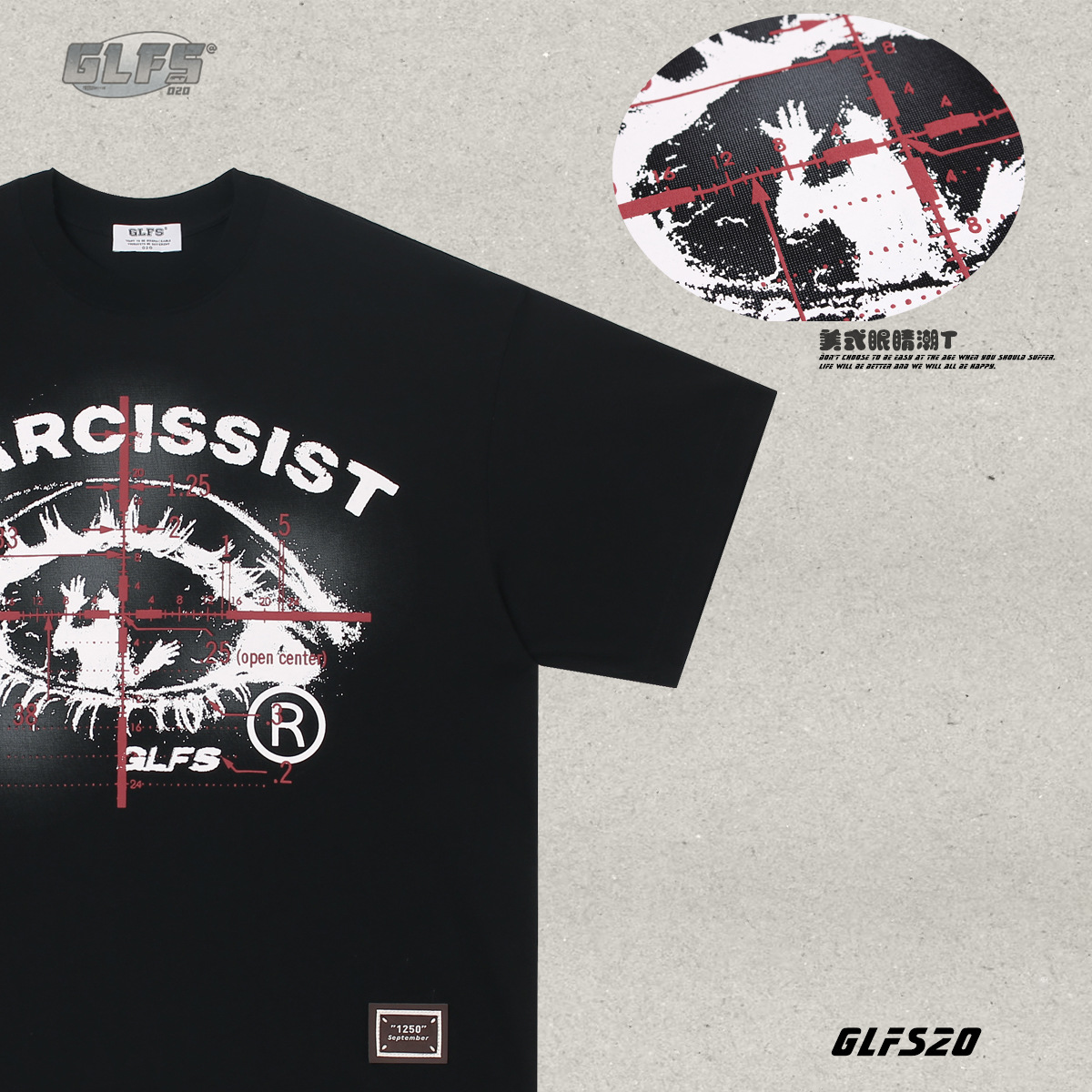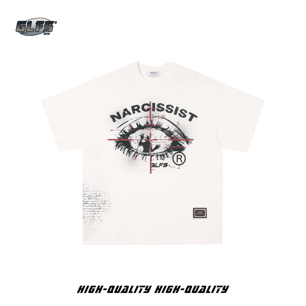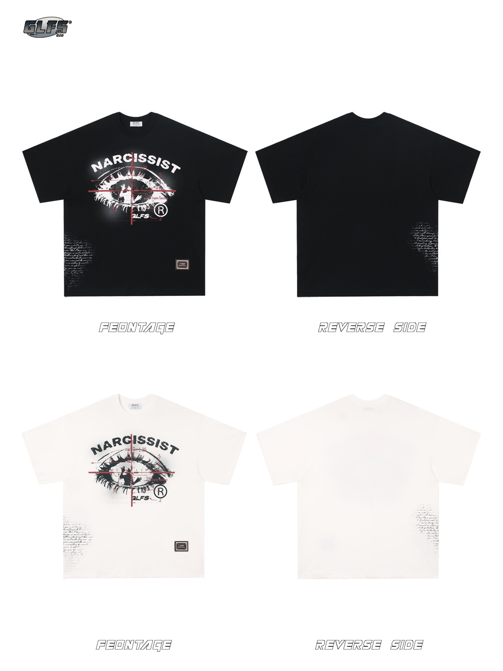 GLFS 미국식 Ins 트렌디 브랜드 레트로 남자 올 매치 아이즈 퓨어 코튼 반팔 여성용 슬리밍 커플의 티셔츠 Chic Top