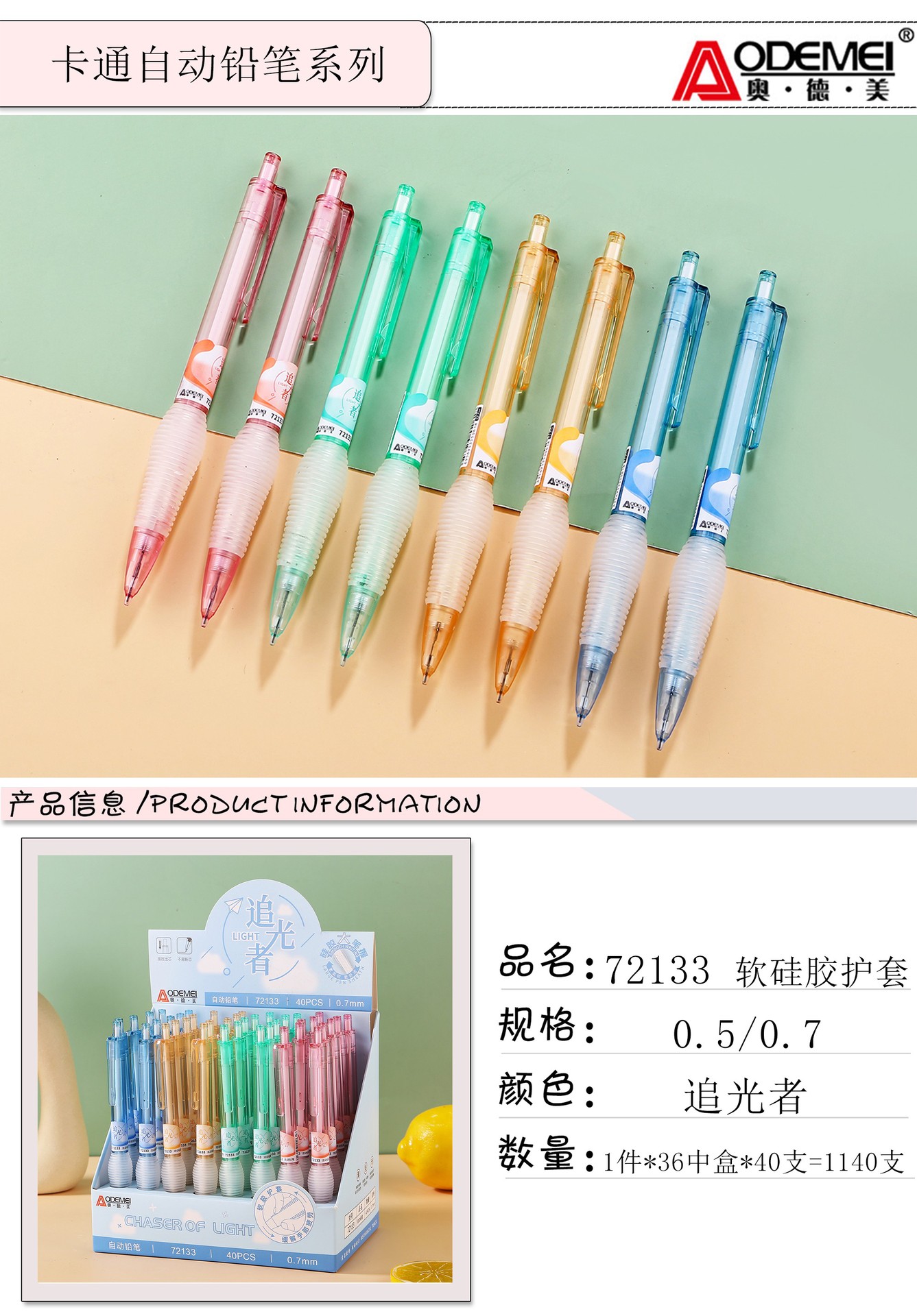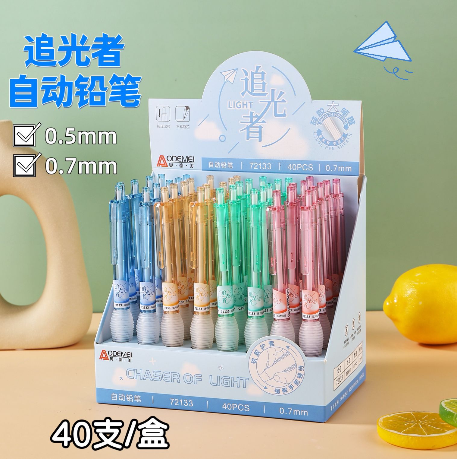 Odemei 72133 가벼운 체이서 자동 연필 학생 활동 연필 부드러운 실리콘 시트 0.5 0.7 필기 펜