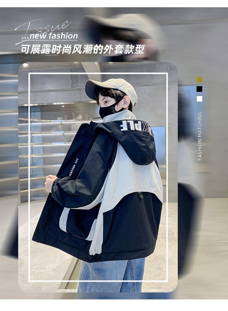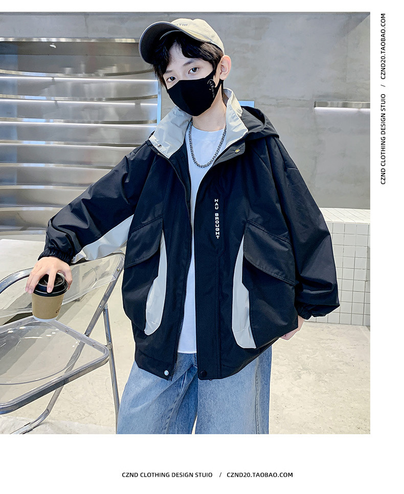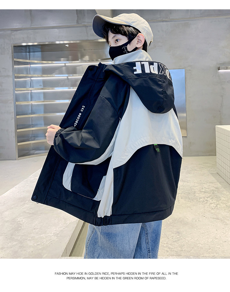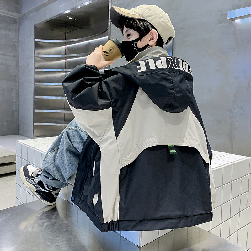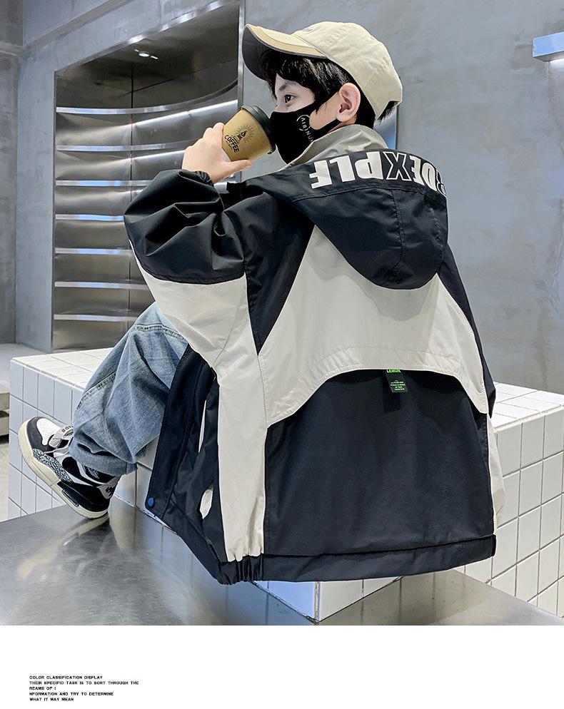 소년 컬러 매칭 후드 코트 2025 봄과 가을 새로운 트렌디 브랜드 플럼 피안 잘 생긴 봄 재킷 어린이 봄 옷스토어 가기