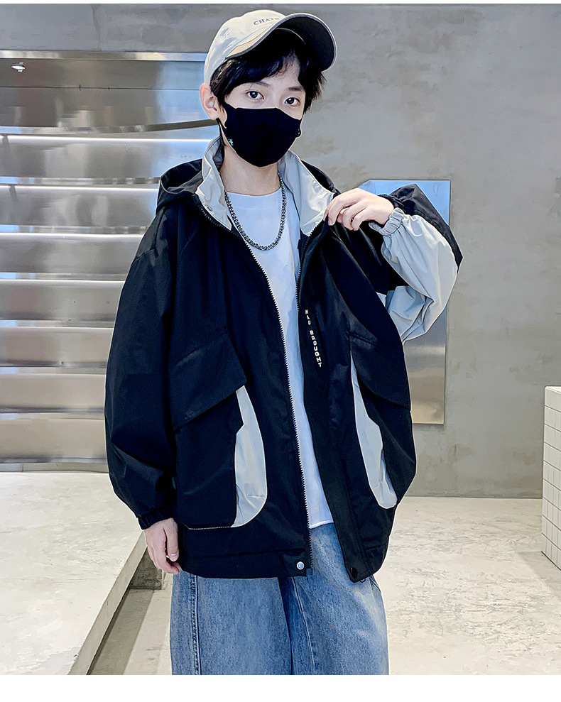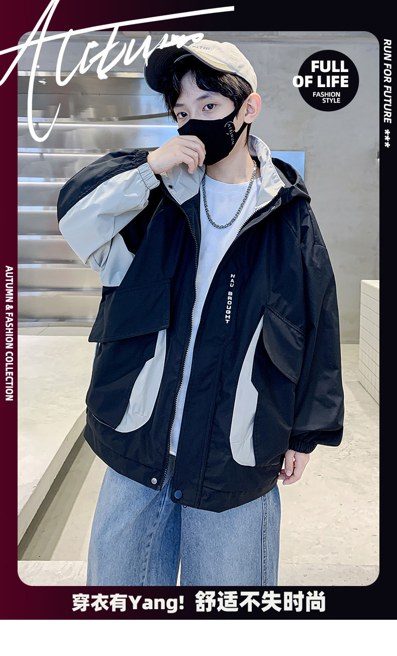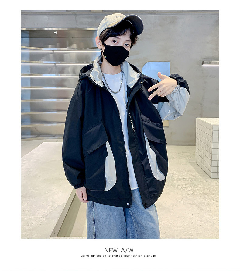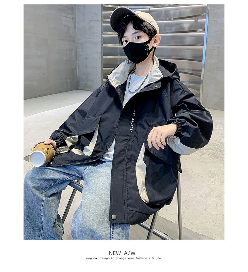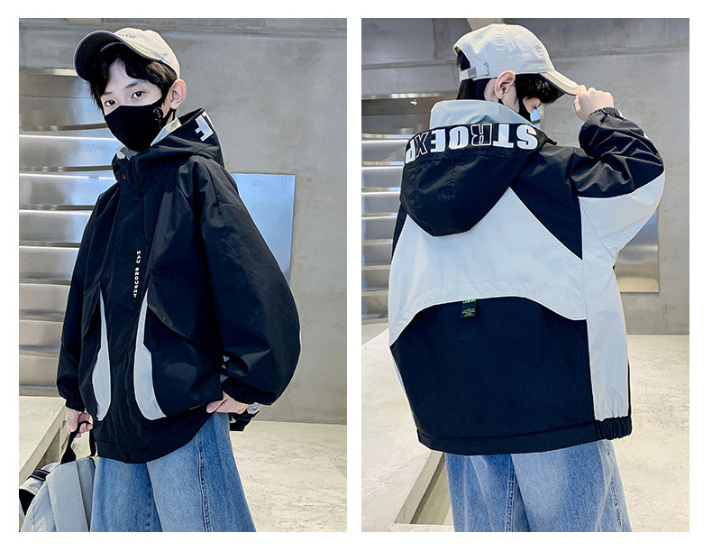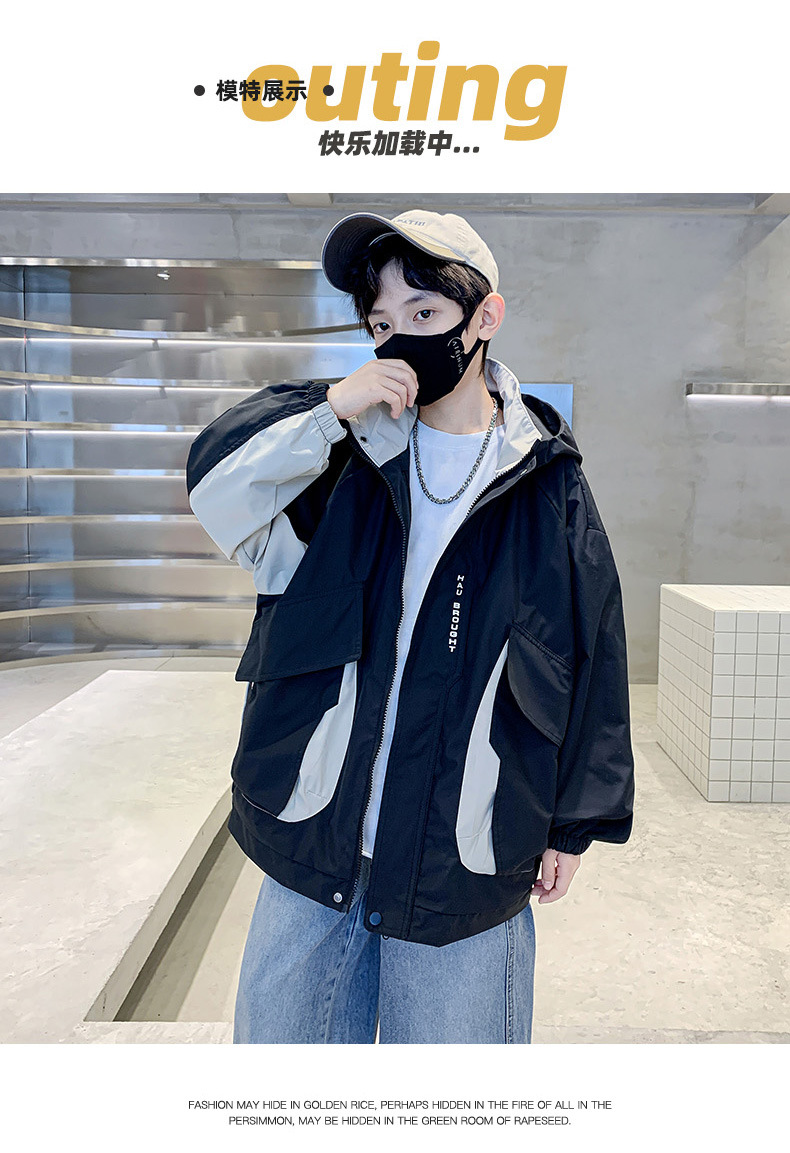 소년 컬러 매칭 후드 코트 2025 봄과 가을 새로운 트렌디 브랜드 플럼 피안 잘 생긴 봄 재킷 어린이 봄 옷스토어 가기