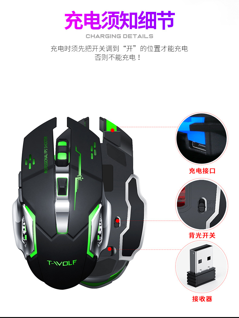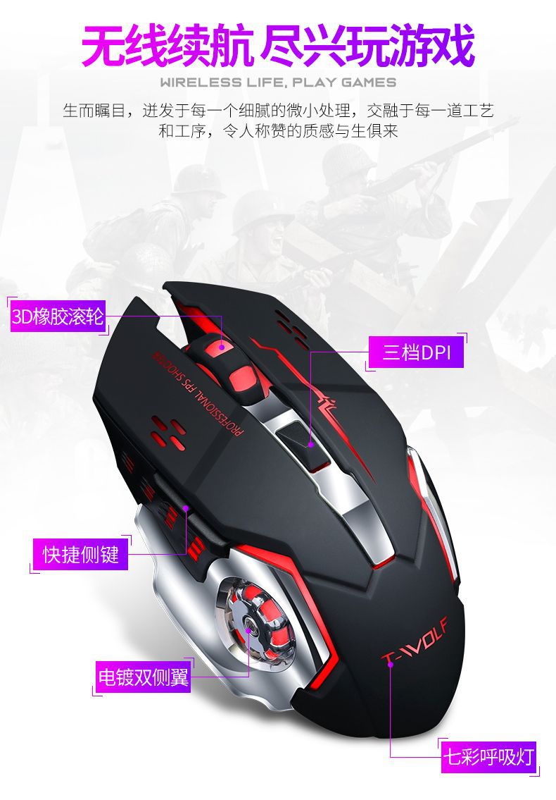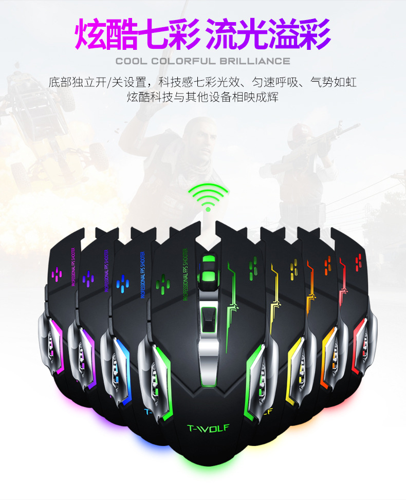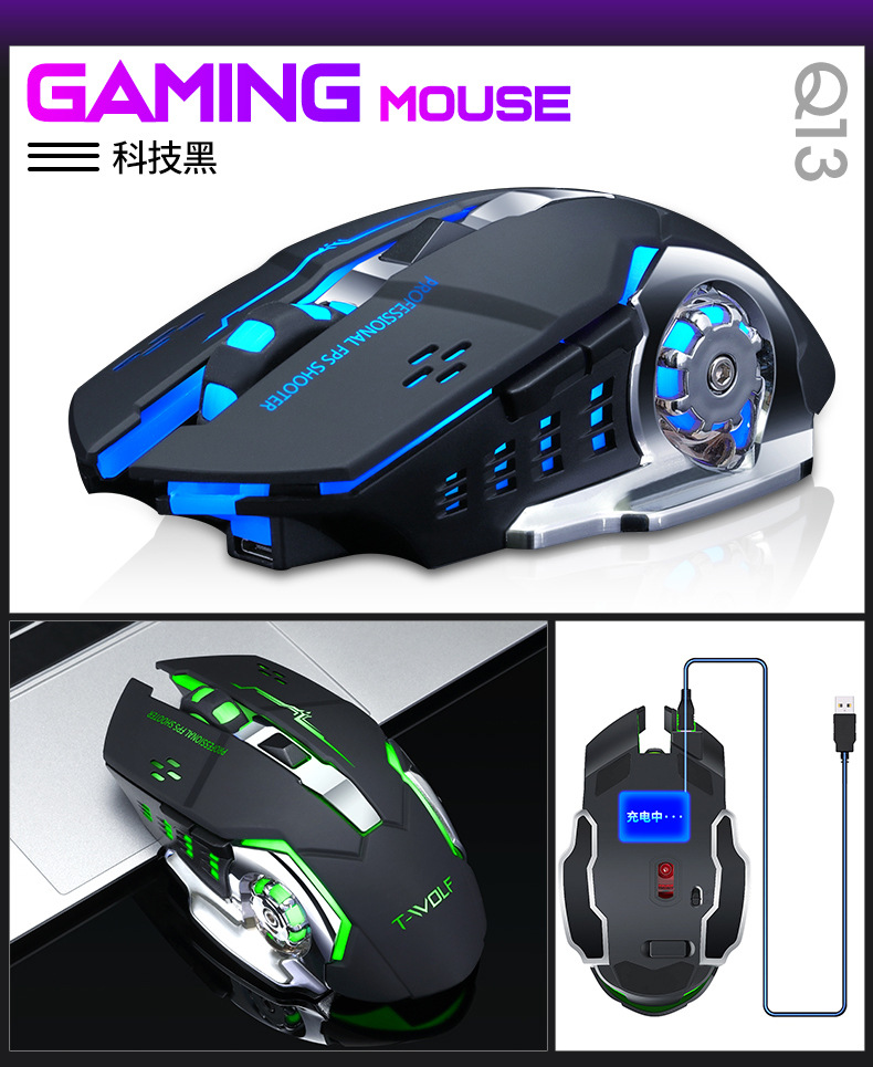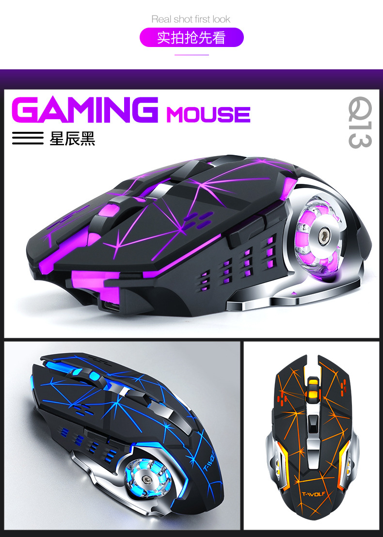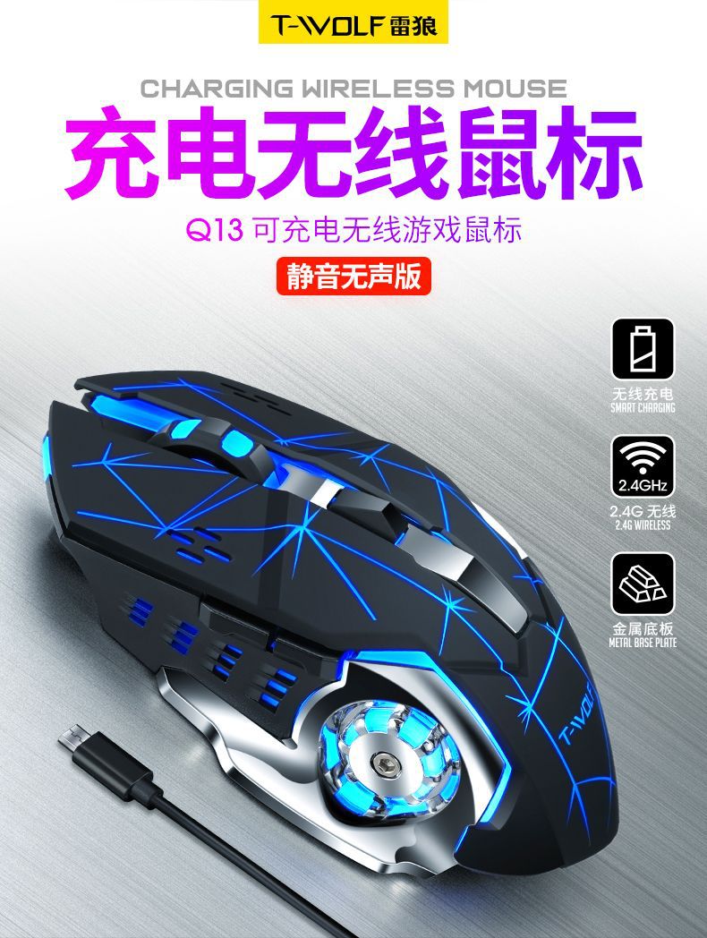 Thunderwolf Q13 무선 마우스 충전 Bluetooth 듀얼 모드 게임 발광 기계식 마우스 공장 국경 간 TEMU스토어 가기