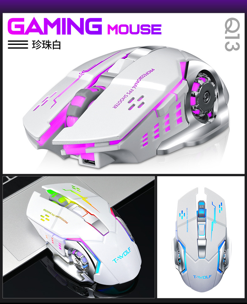 Thunderwolf Q13 무선 마우스 충전 Bluetooth 듀얼 모드 게임 발광 기계식 마우스 공장 국경 간 TEMU