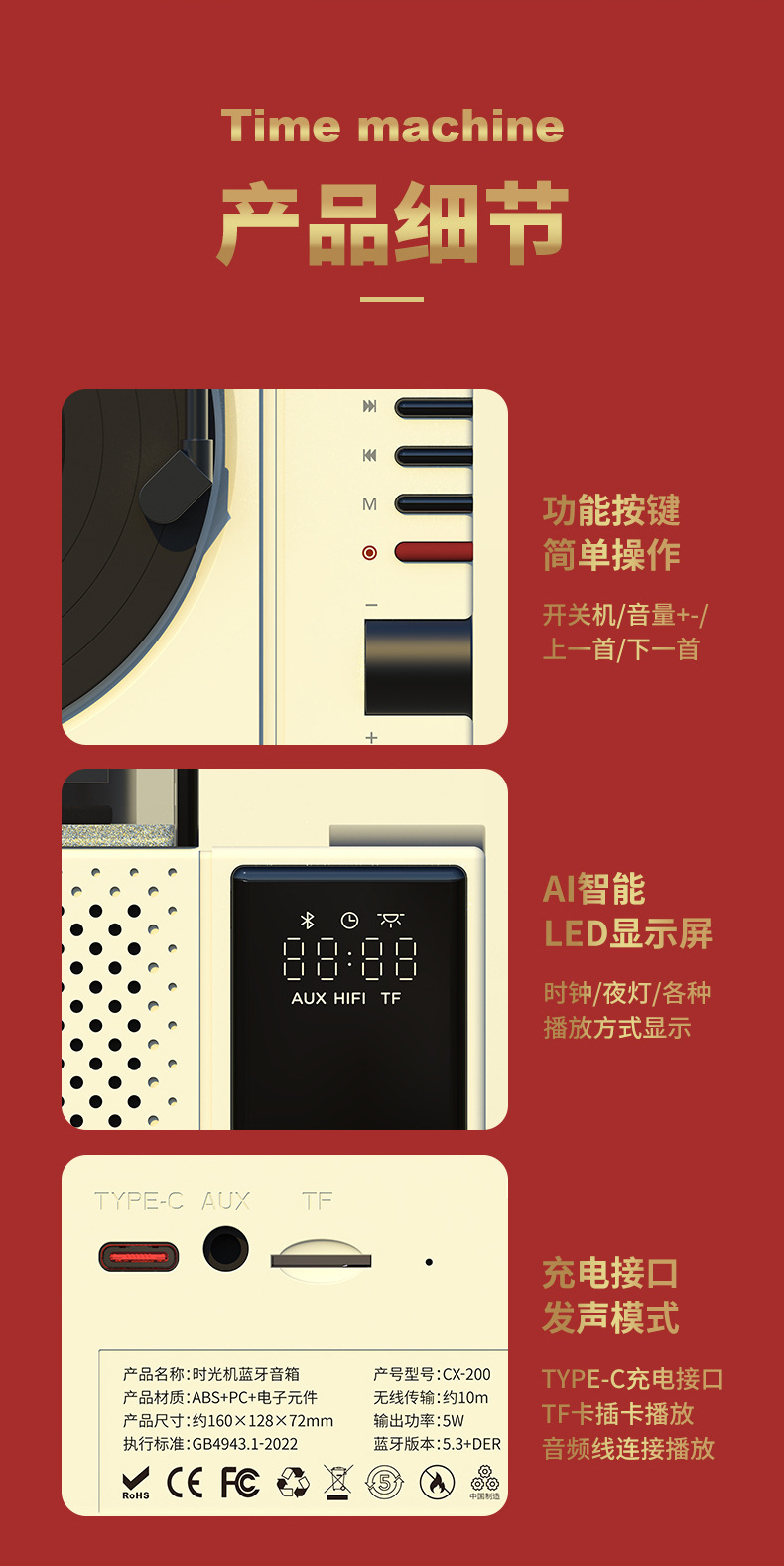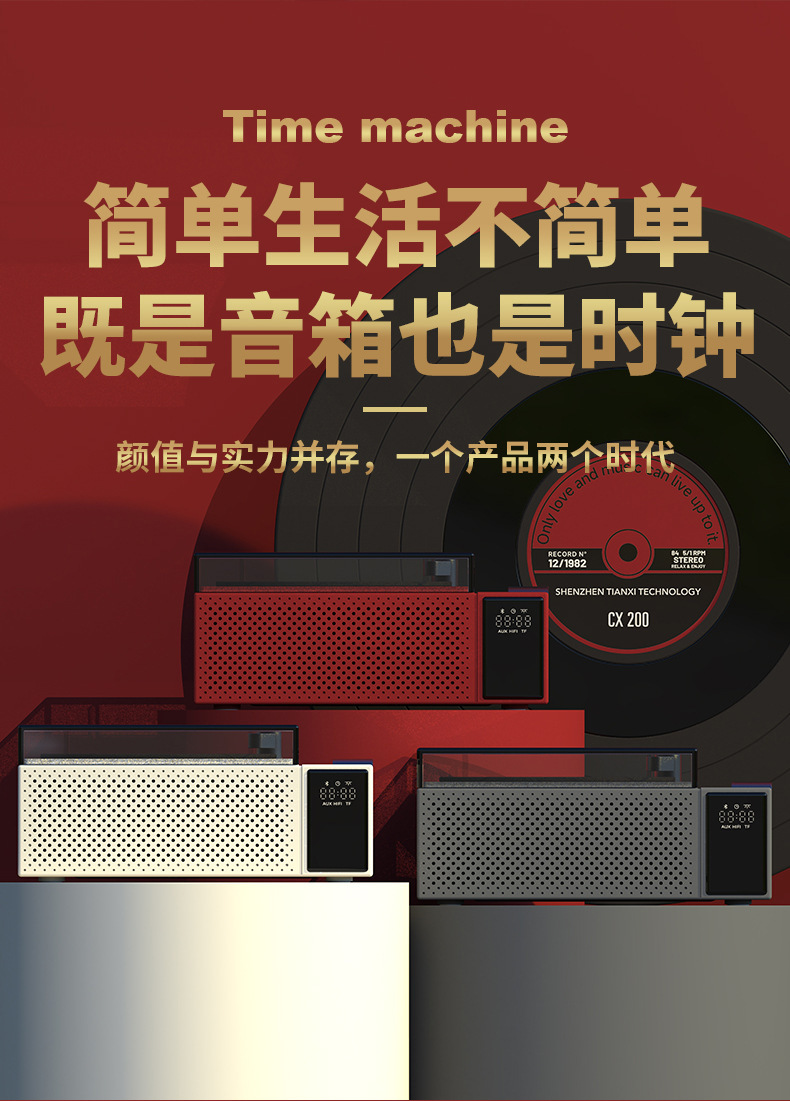 레트로 타임 블루투스 스피커 무선 기록 오디오 여자 친구 시계 서브 우퍼 새해 선물 분위기 창의력