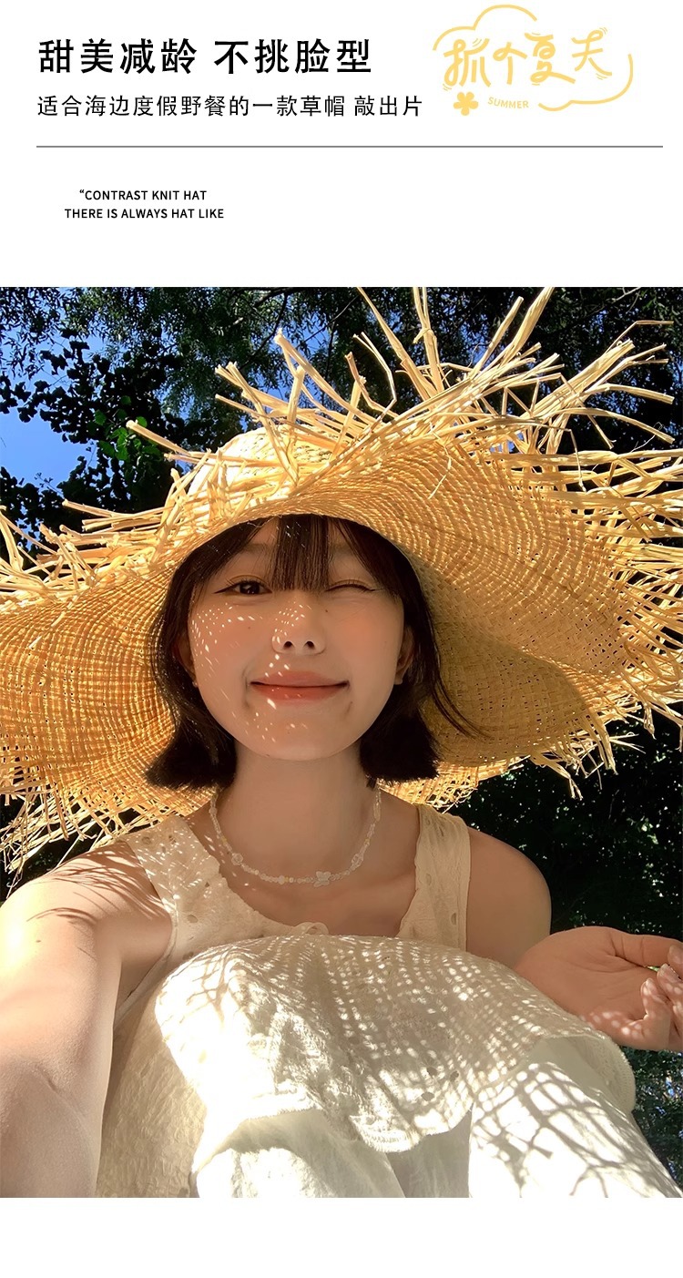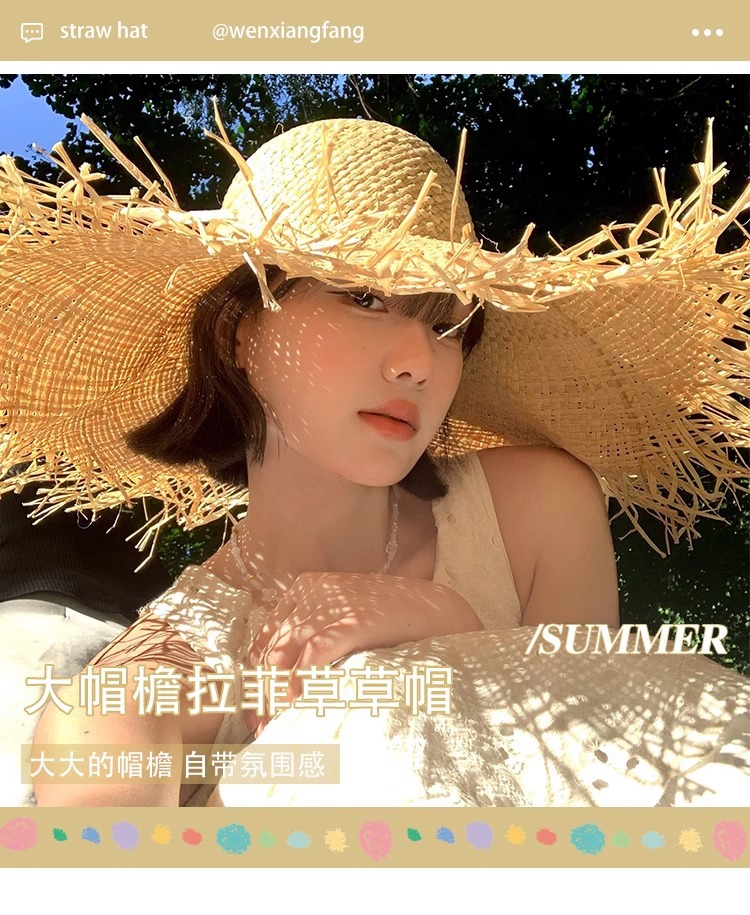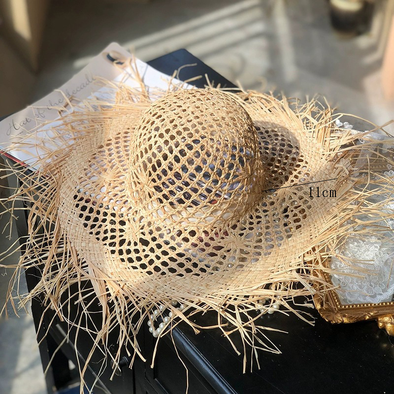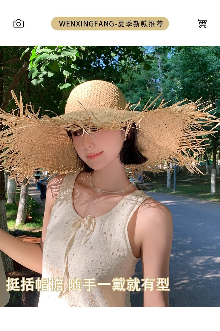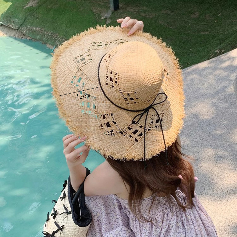 큰 모자를 따라 여성의 여름 여행 휴가 스타일 라피 잔디 밀짚 모자 큰 모자 음영 선 스크린 우아한 해변 모자스토어 가기