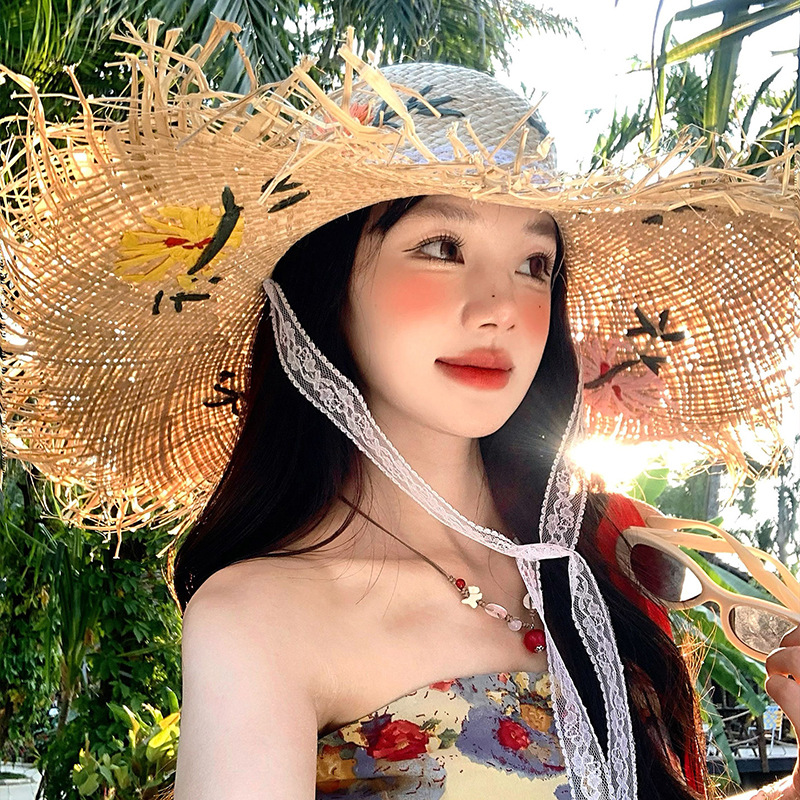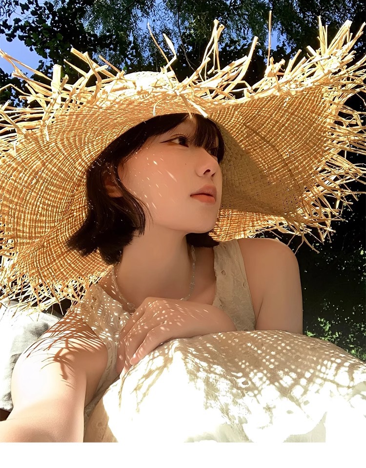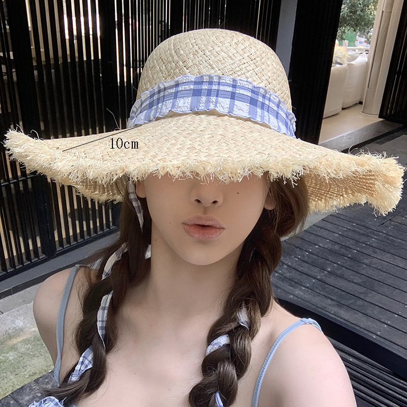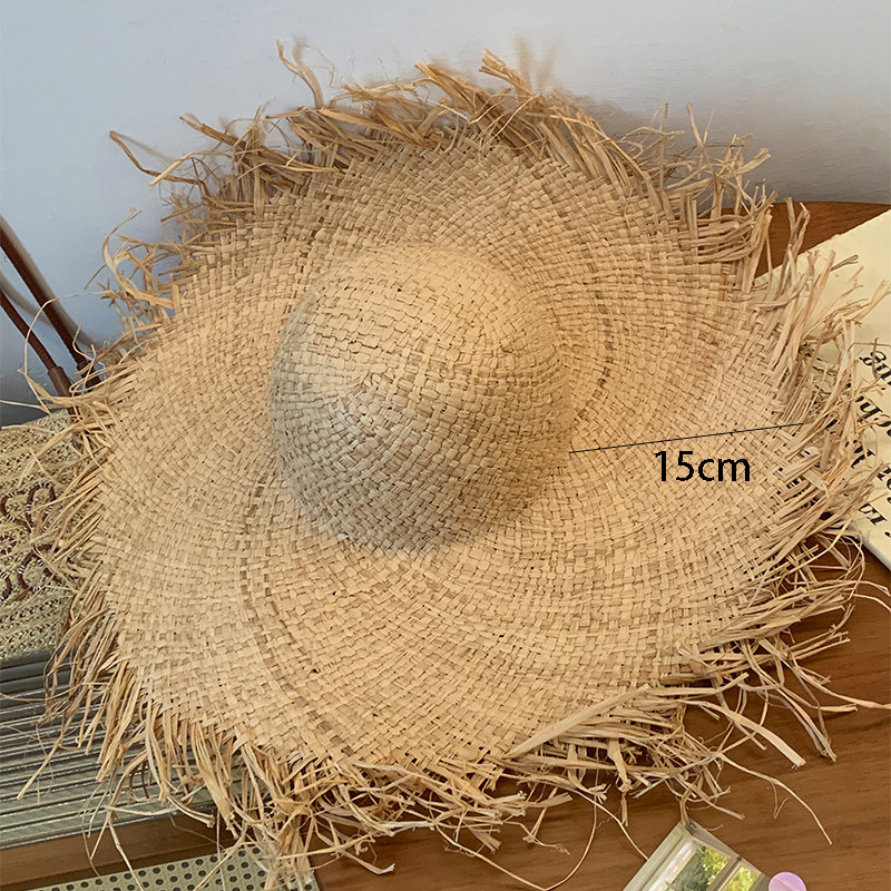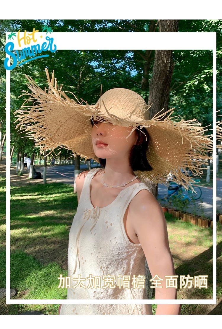 큰 모자를 따라 여성의 여름 여행 휴가 스타일 라피 잔디 밀짚 모자 큰 모자 음영 선 스크린 우아한 해변 모자스토어 가기