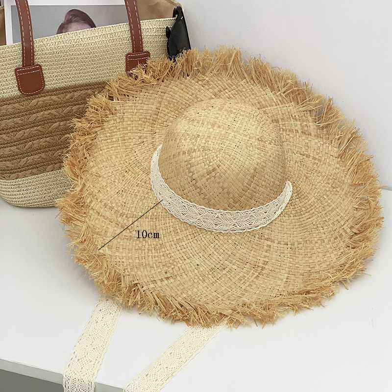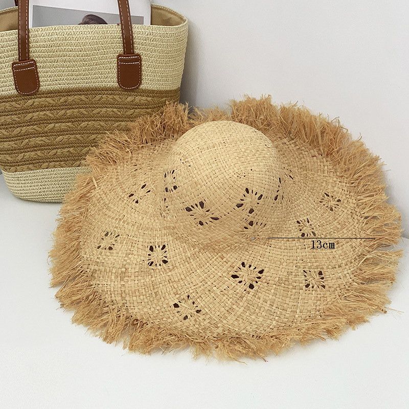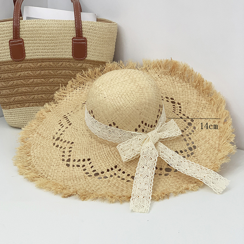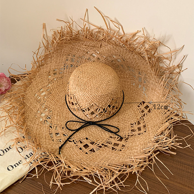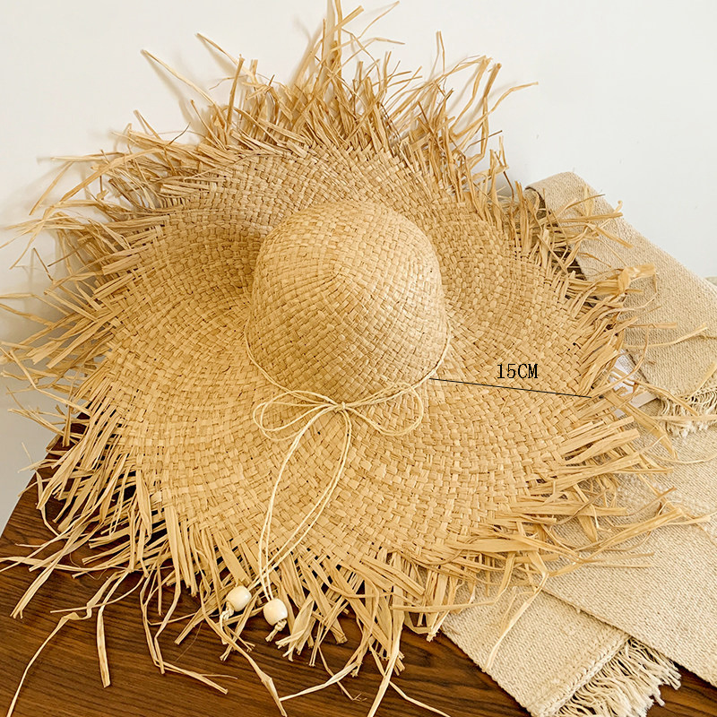 큰 모자를 따라 여성의 여름 여행 휴가 스타일 라피 잔디 밀짚 모자 큰 모자 음영 선 스크린 우아한 해변 모자
